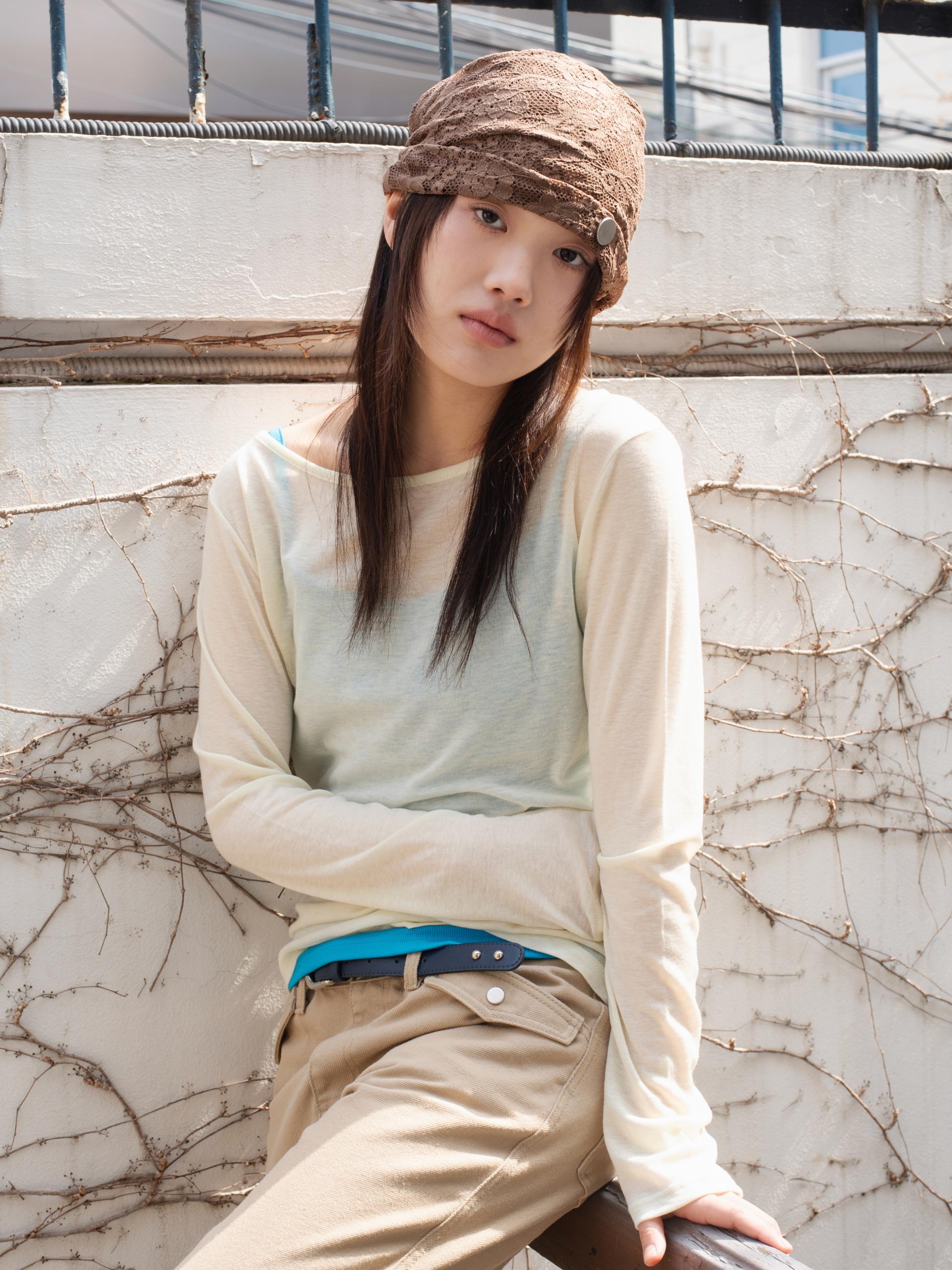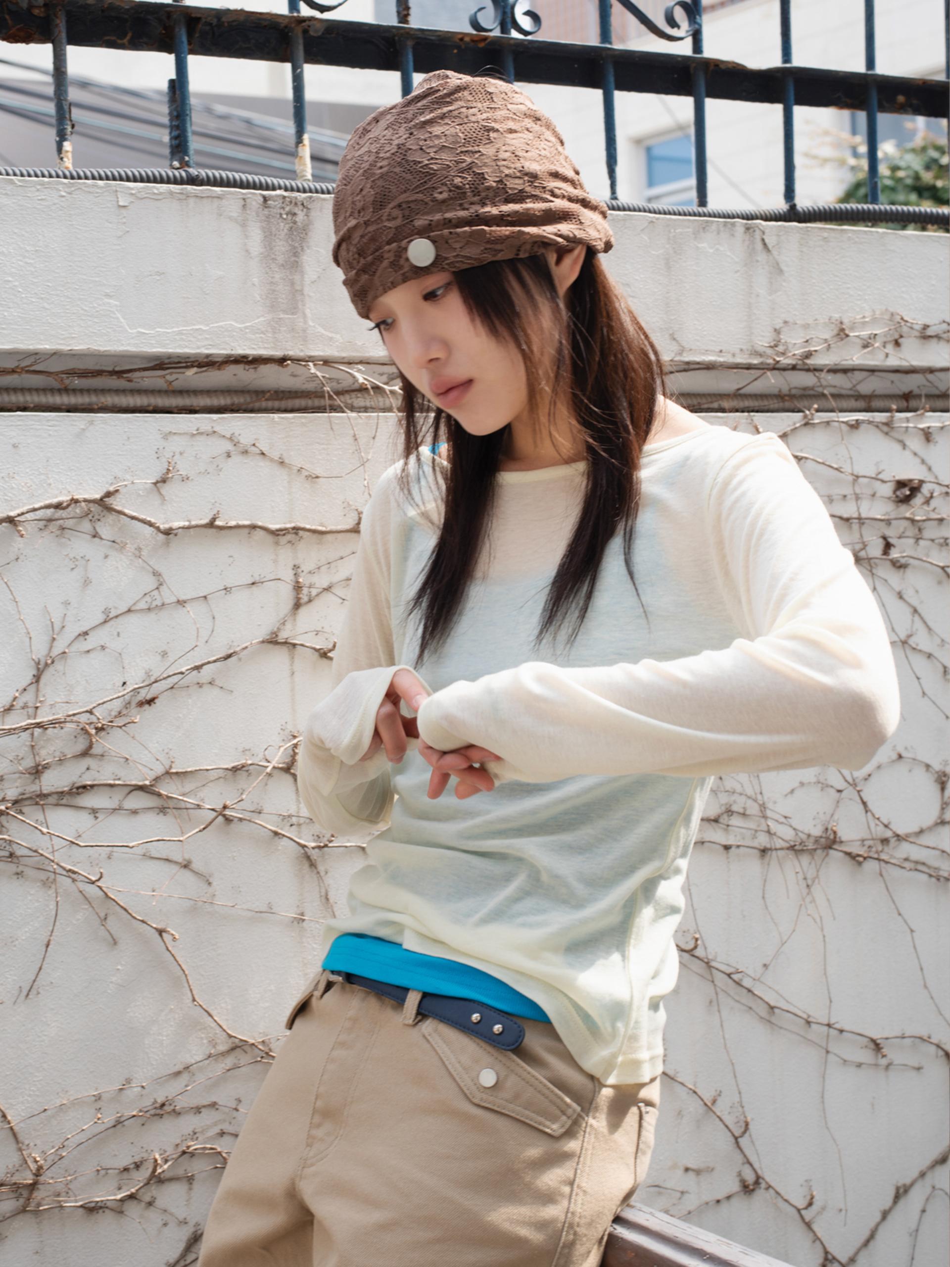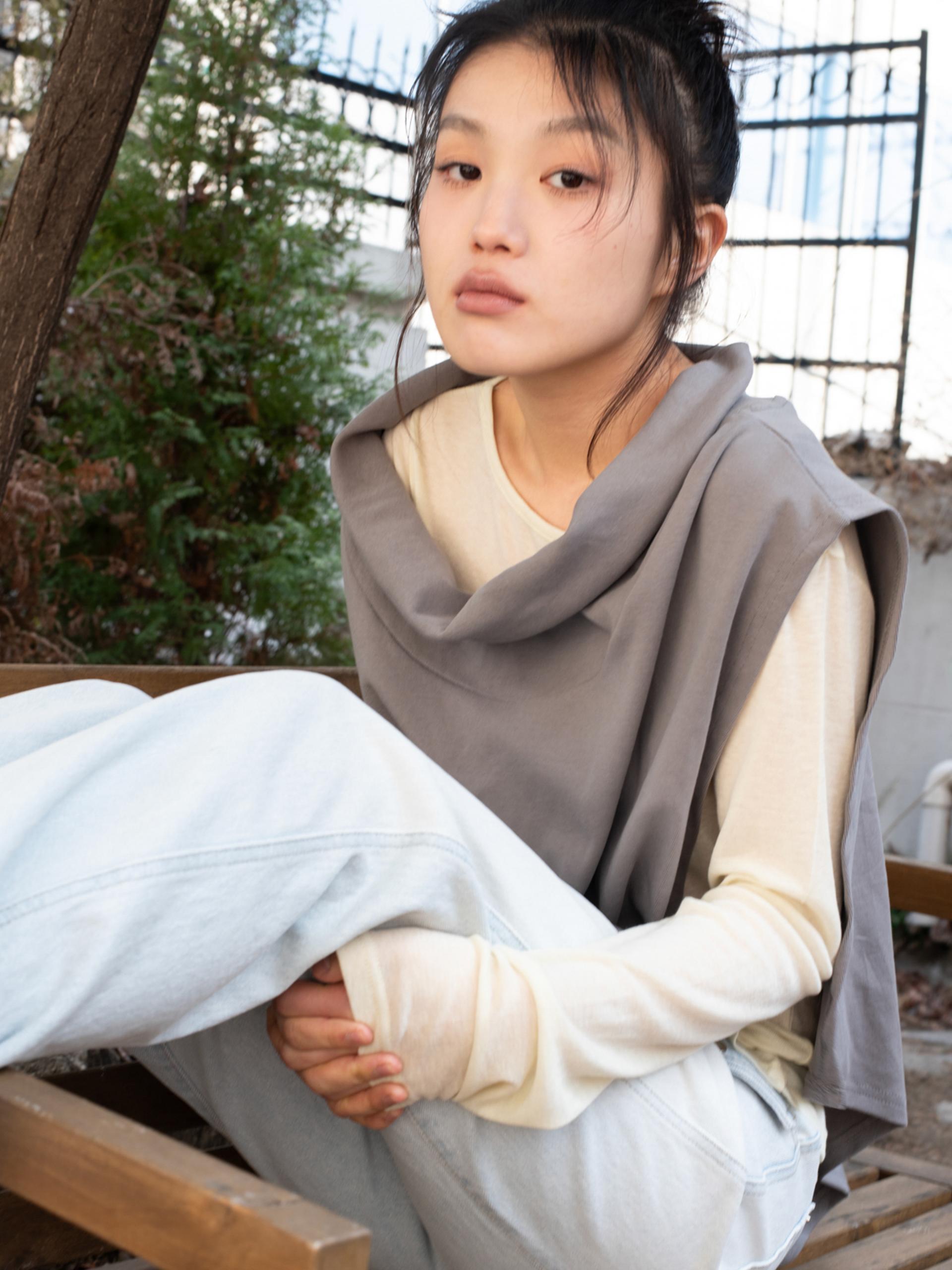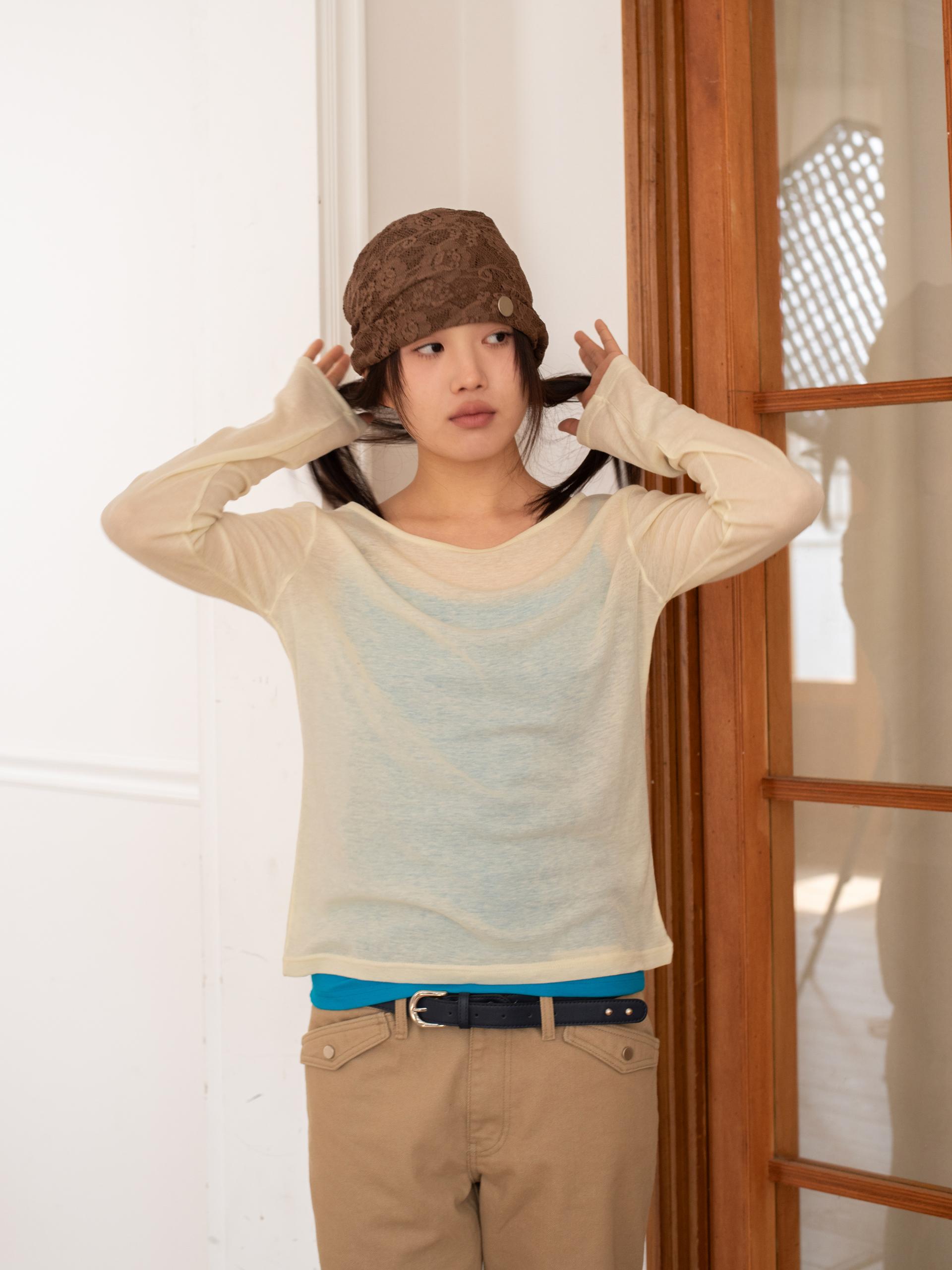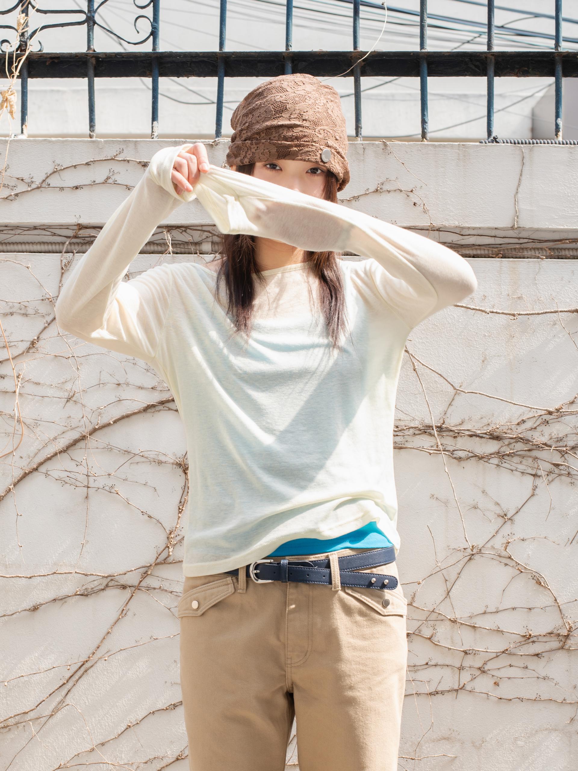 Available in a total of 7 colors: Ivory, Sage Green, Red, Mocha Grey, Dusty Pink, Brown, and Black. The calm muted tones are ideal for color layering. Featuring the natural sheerness of the soft fabric and a light fit that gently follows the body. Recommended as an item that matches any style when layered with two colors.