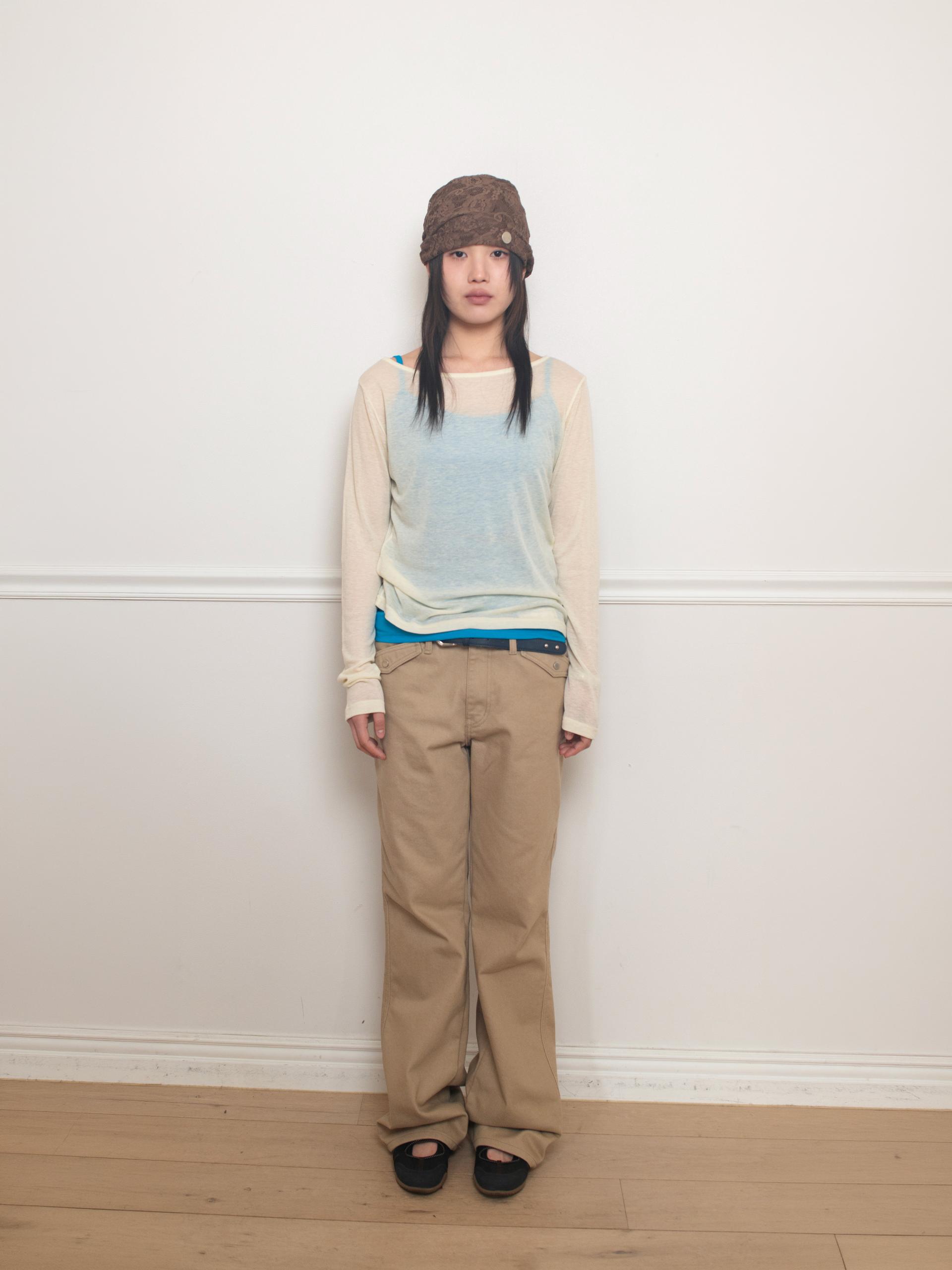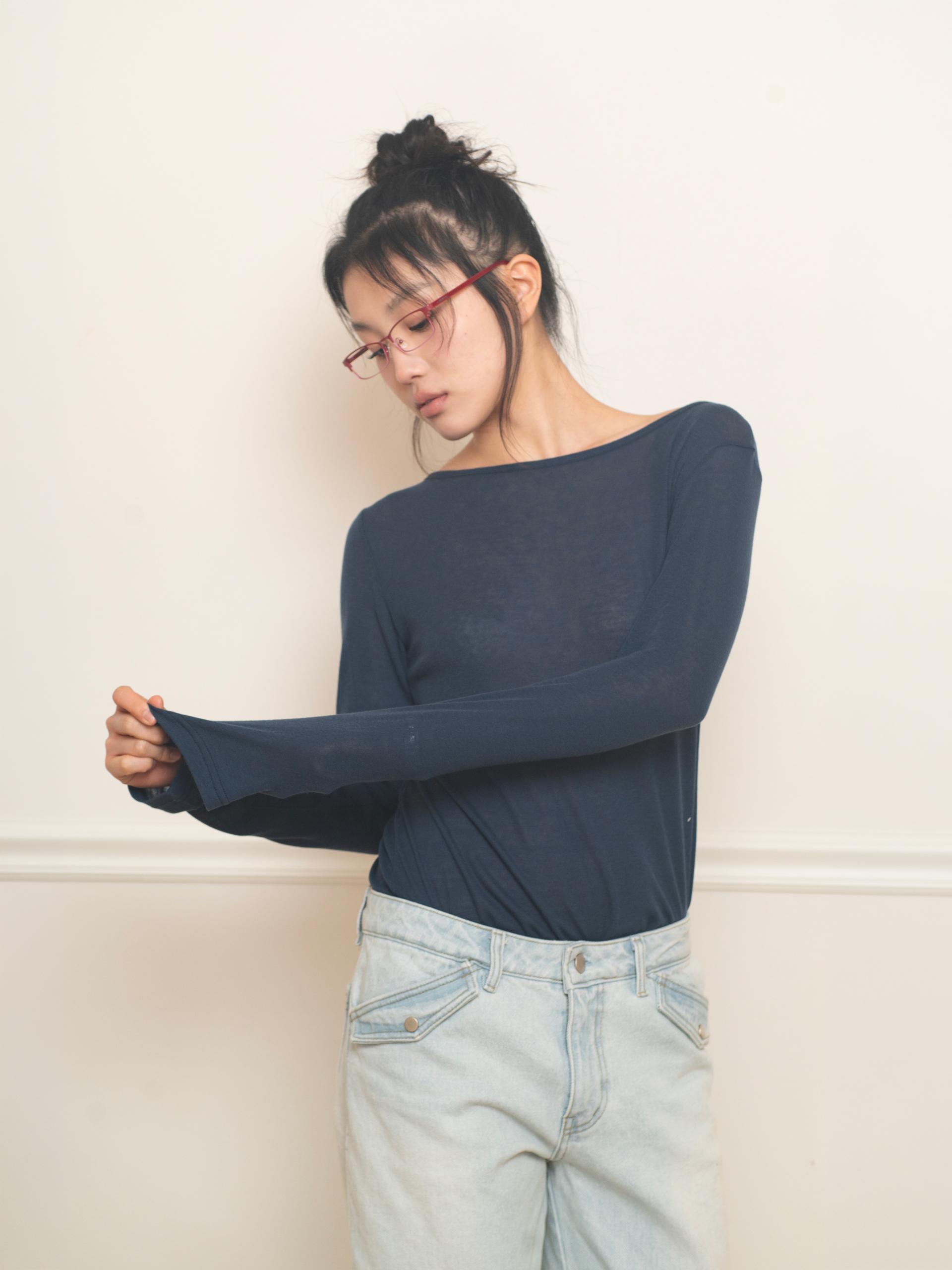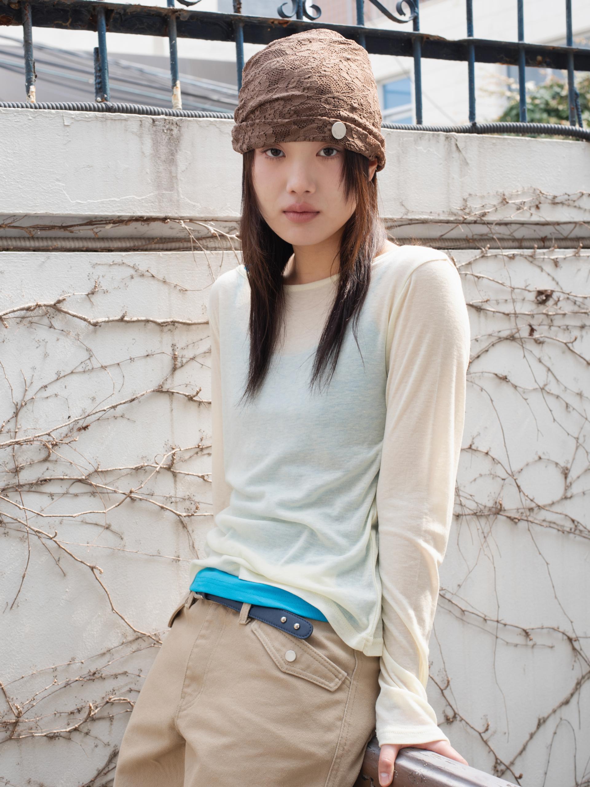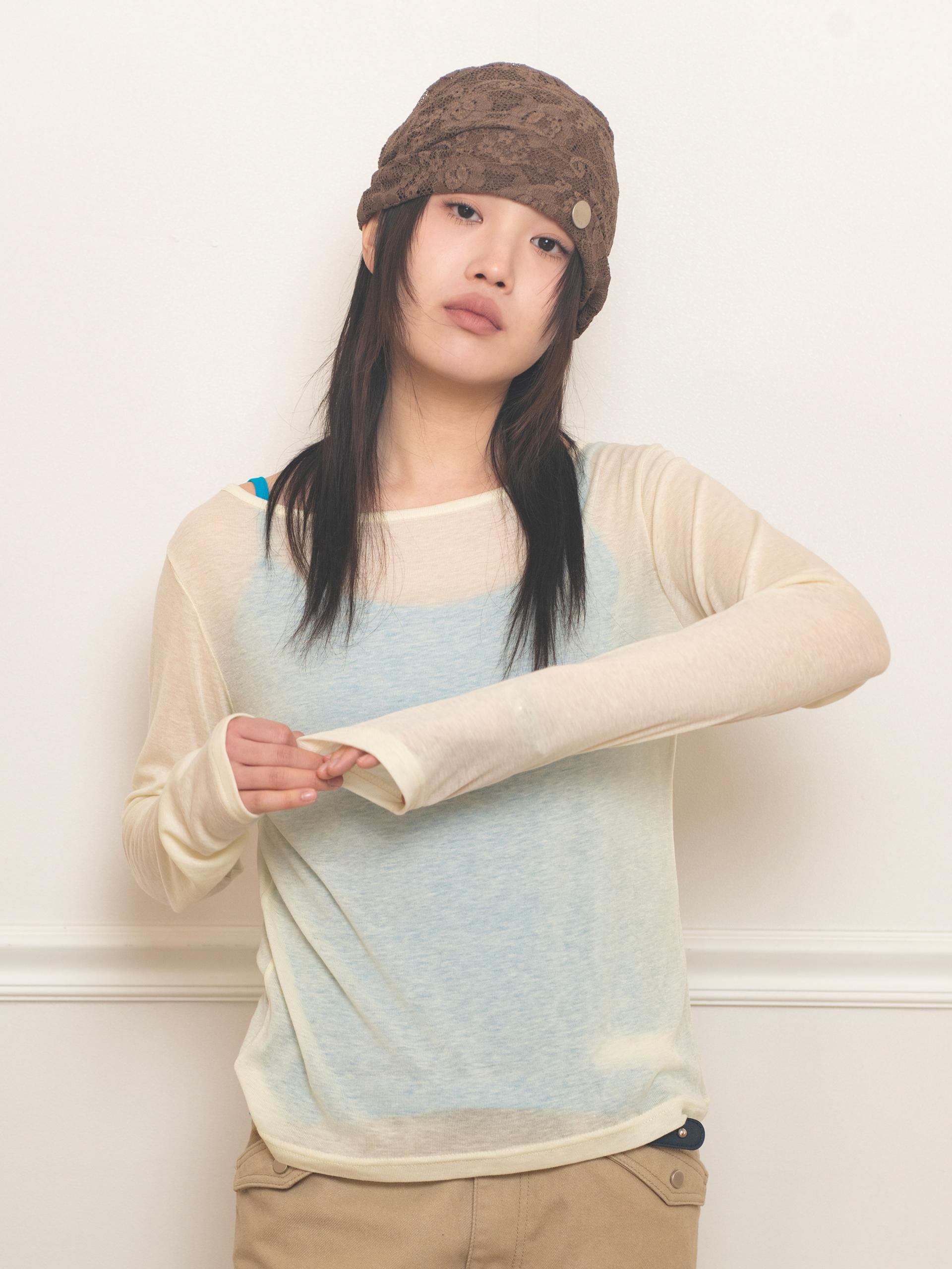 Available in a total of 7 colors: Ivory, Sage Green, Red, Mocha Grey, Dusty Pink, Brown, and Black. The calm muted tones are ideal for color layering. Featuring the natural sheerness of the soft fabric and a light fit that gently follows the body. Recommended as an item that matches any style when layered with two colors.