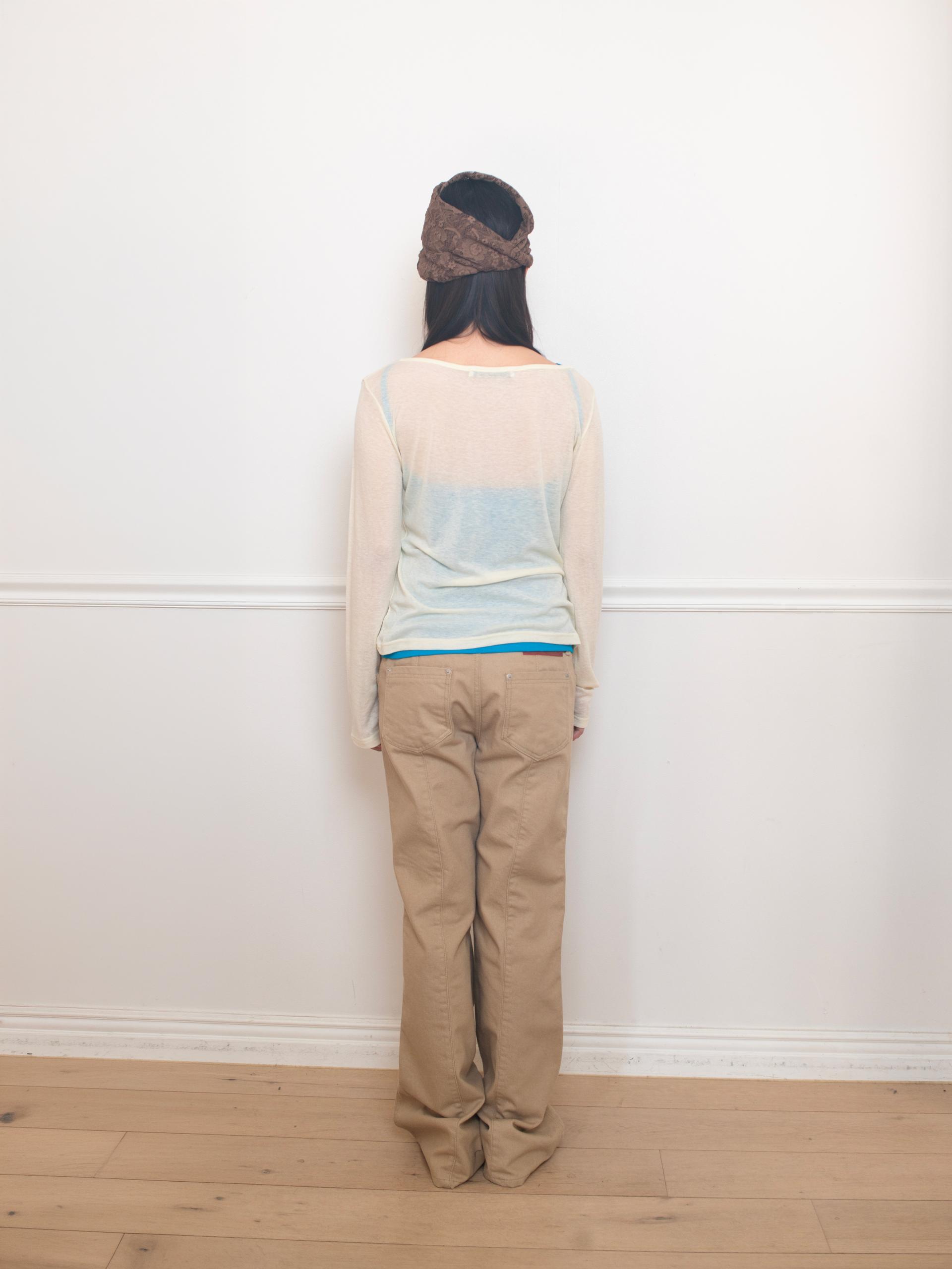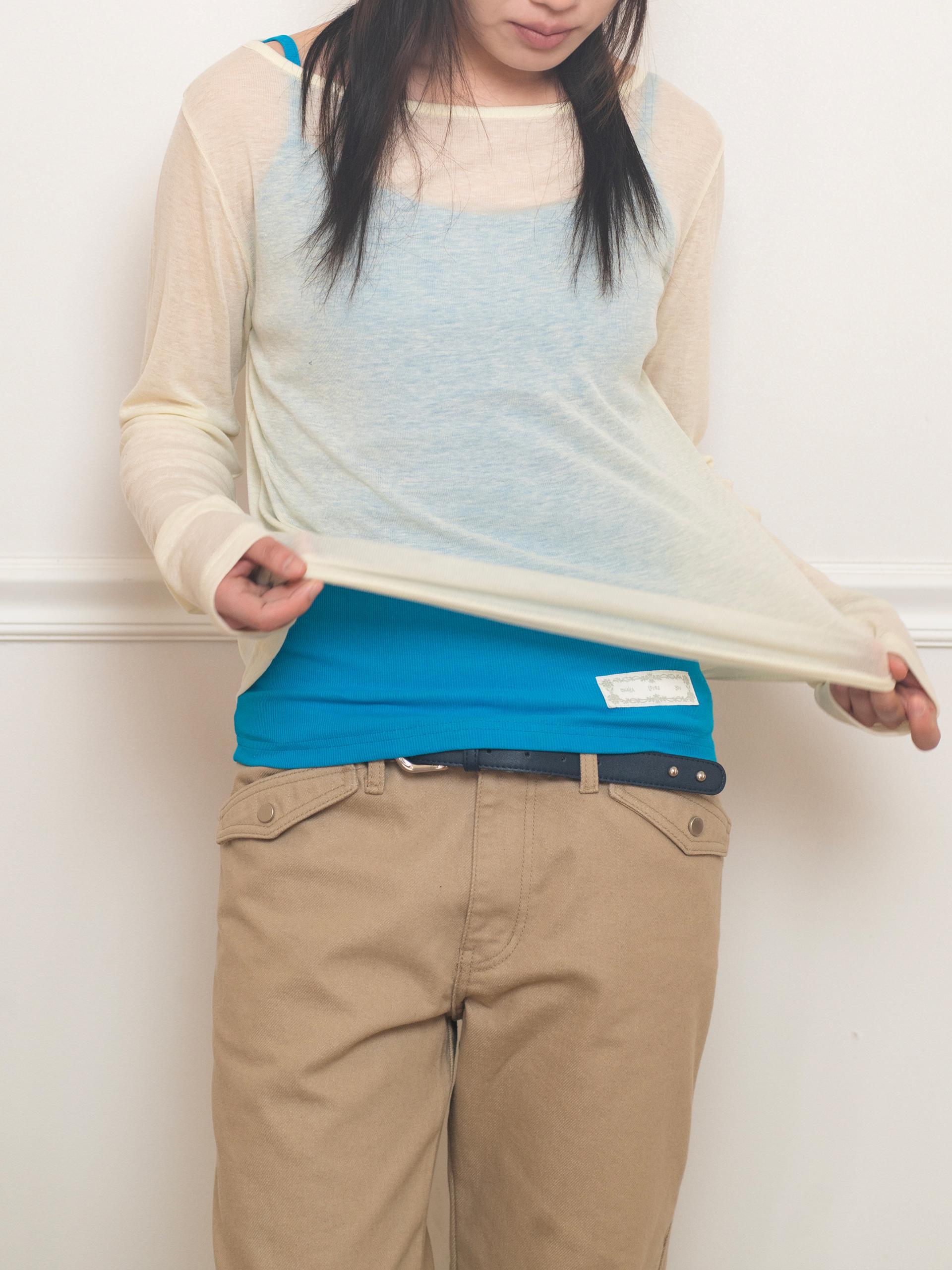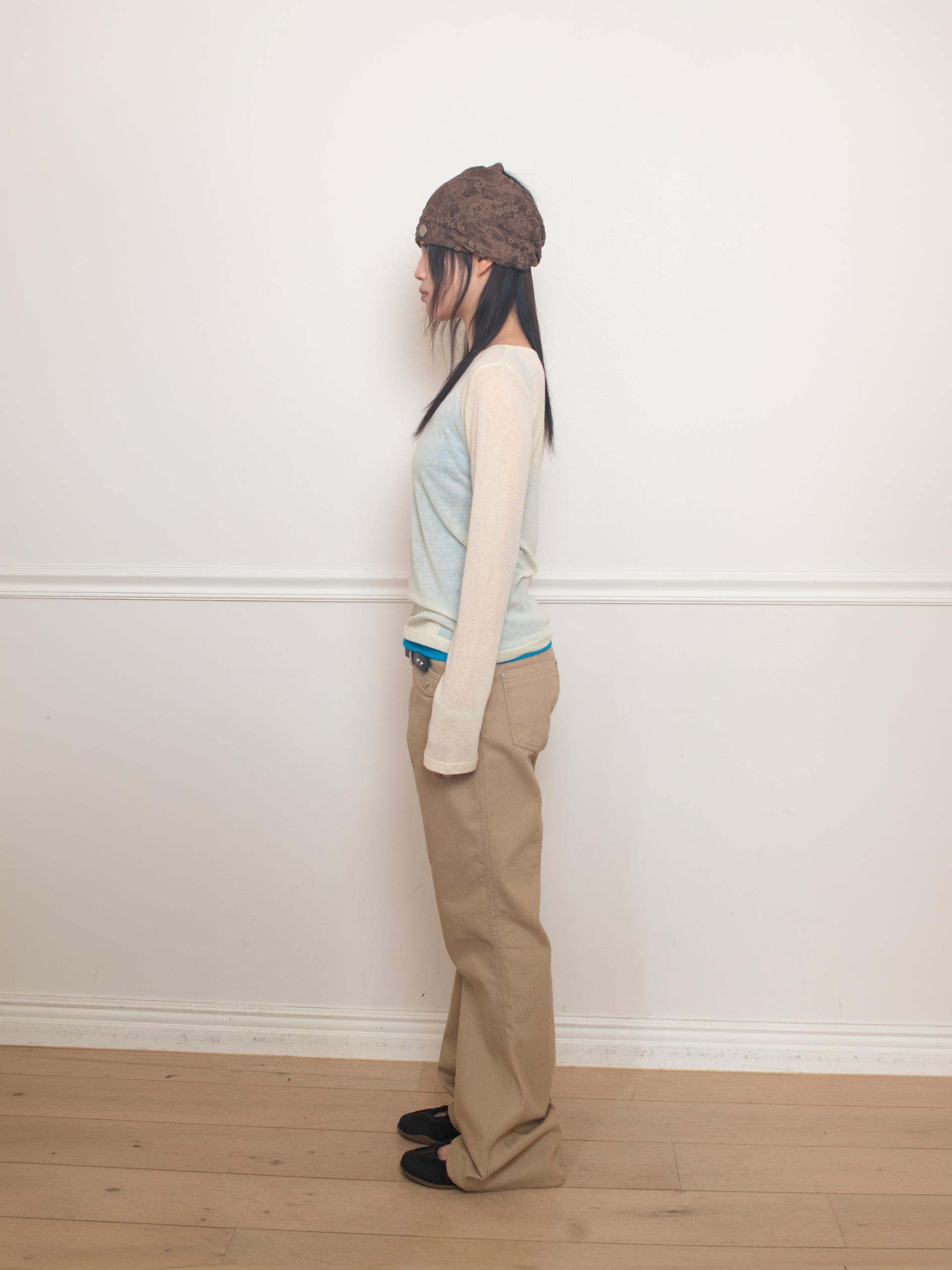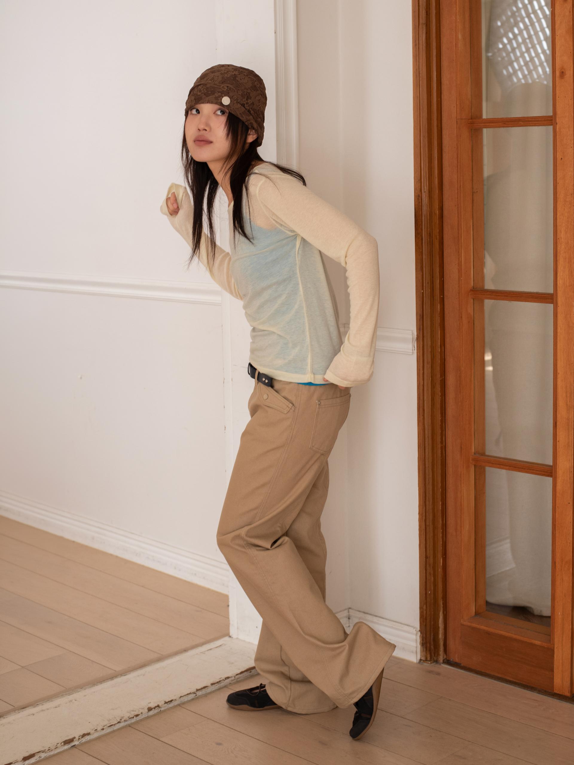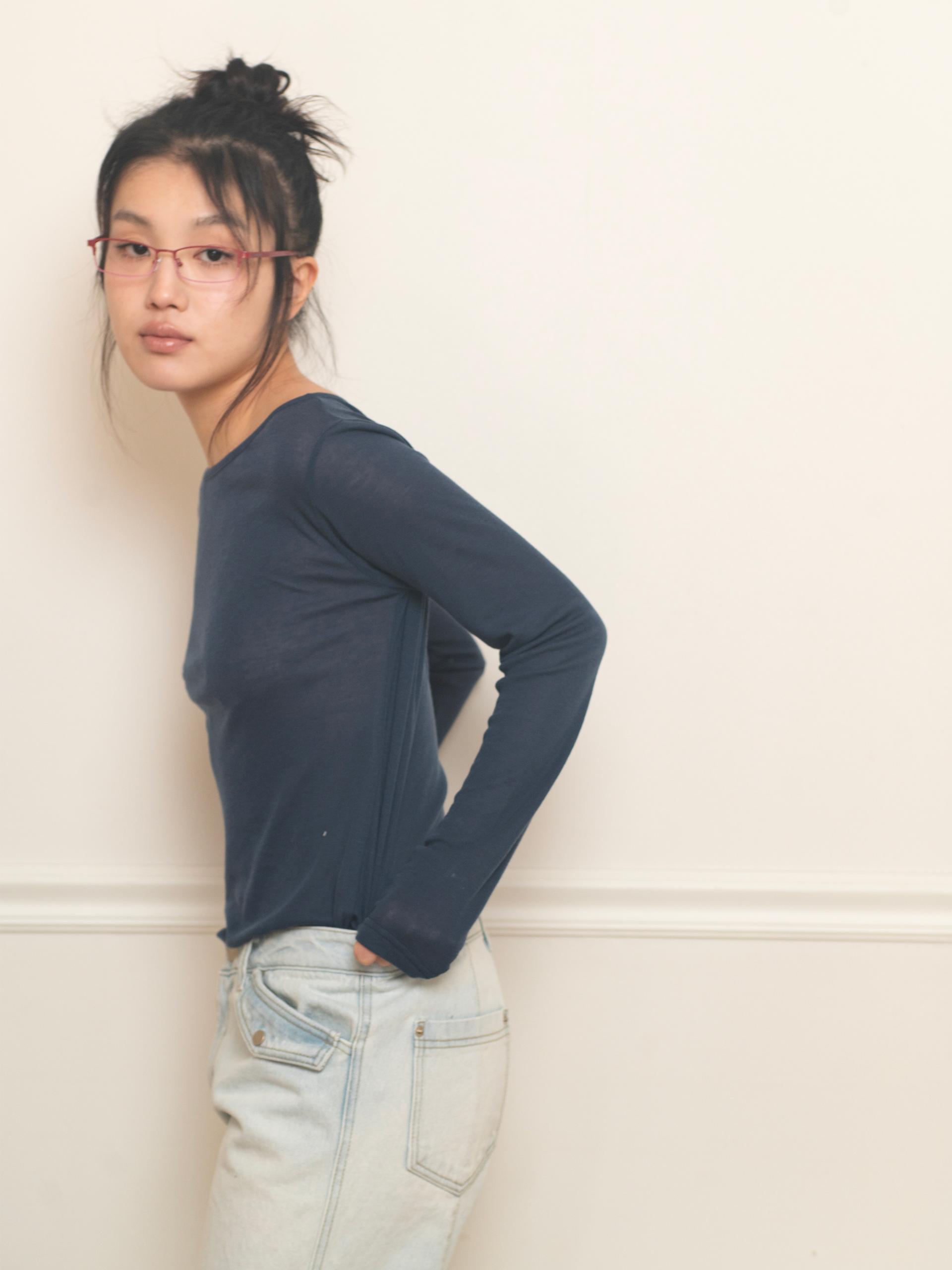 Available in a total of 7 colors: Ivory, Sage Green, Red, Mocha Grey, Dusty Pink, Brown, and Black. The calm muted tones are ideal for color layering. Featuring the natural sheerness of the soft fabric and a light fit that gently follows the body. Recommended as an item that matches any style when layered with two colors.