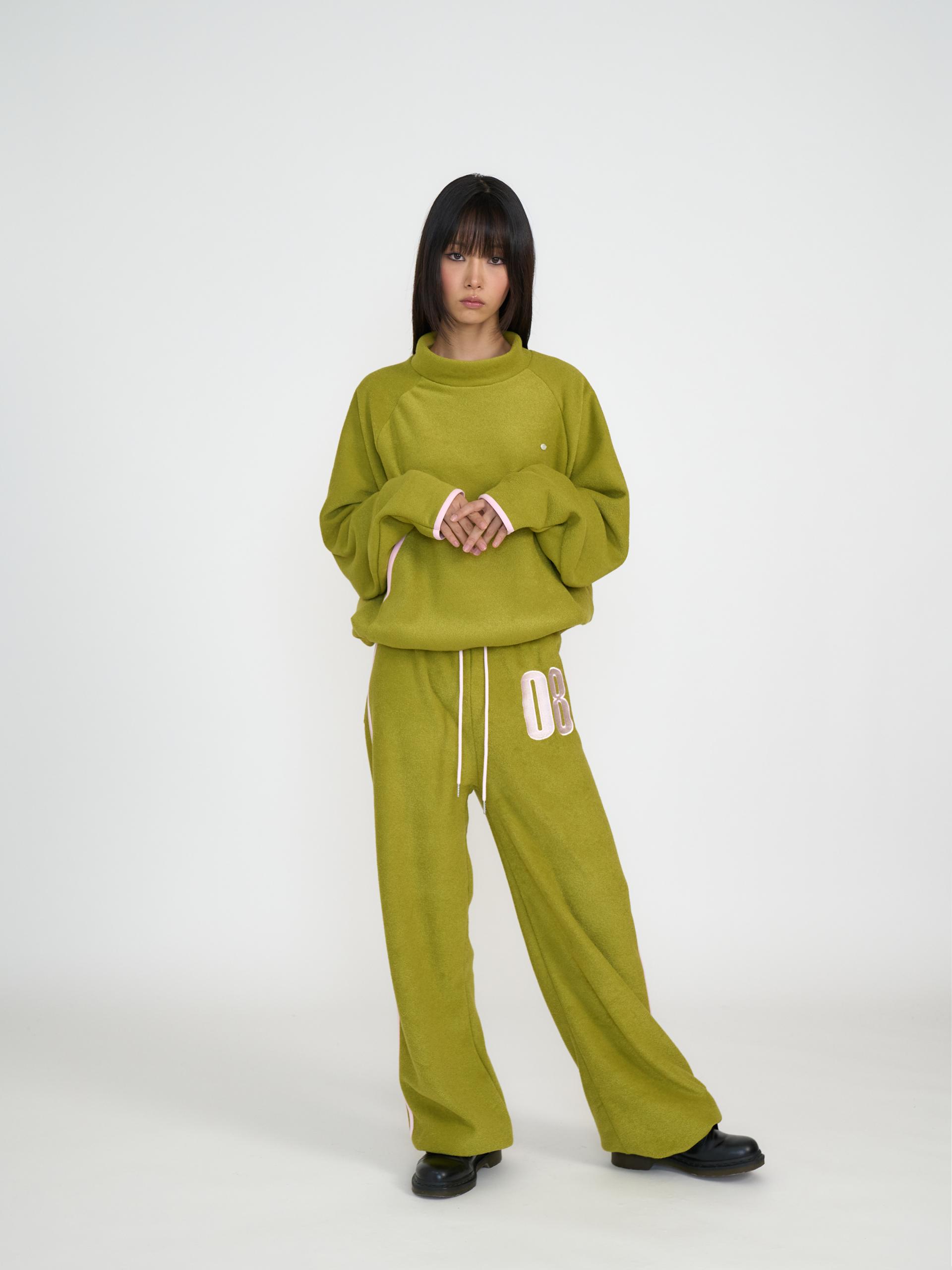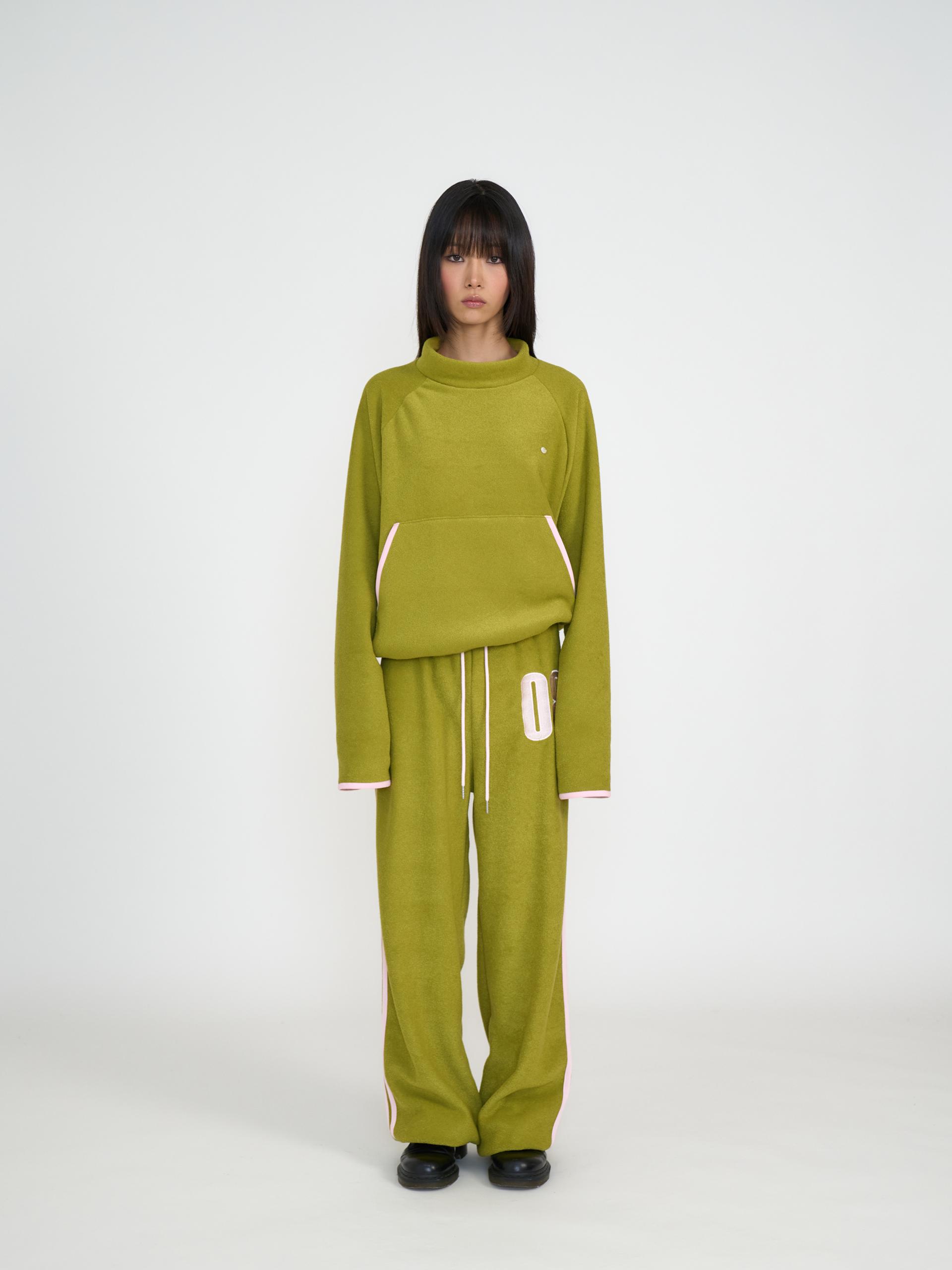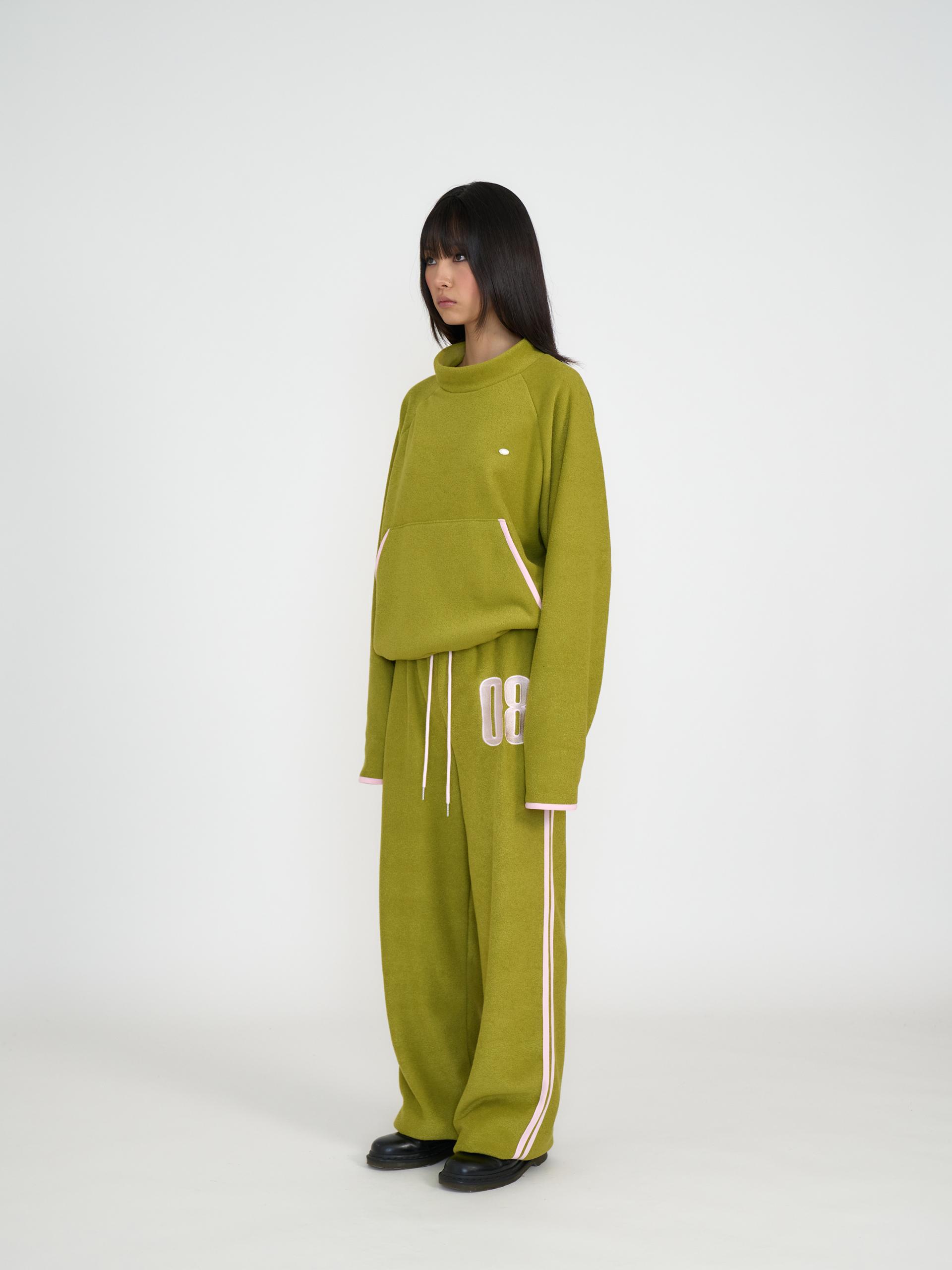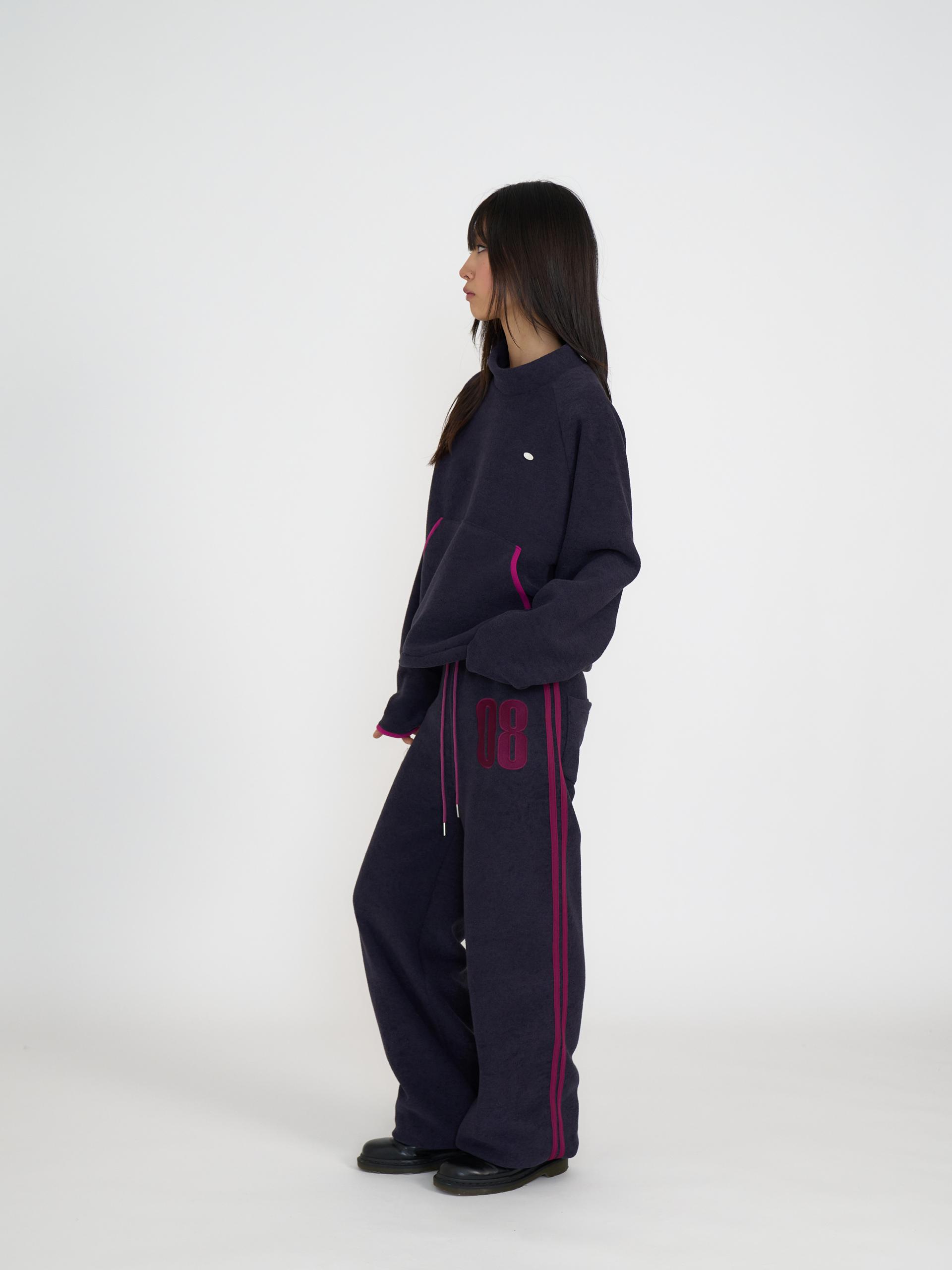 독특한 텍스처의 기모 원단으로 제작되어 부드럽고 따뜻한 착용감을 제공합니다. 신축성 있는 원단과 긴 기장감, 밑단 스토퍼 디테일로 편안하게 조절할 수 있으며 컬러 포인트 자수와 라인 디자인이 스포티한 인상을 줍니다. 하프넥 레글런 롱슬리브와 셋업으로 착용할 수 있는 아이템으로 올리브와 네이비 두 컬러로 출시 되었습니다.