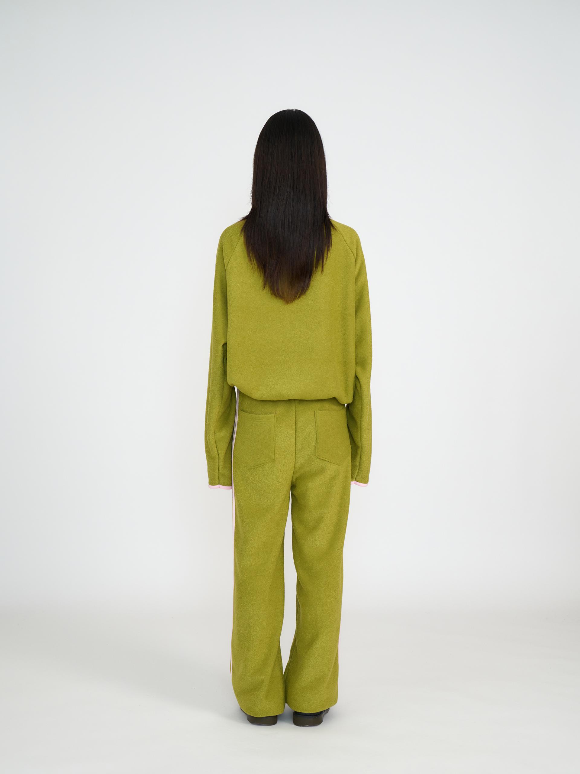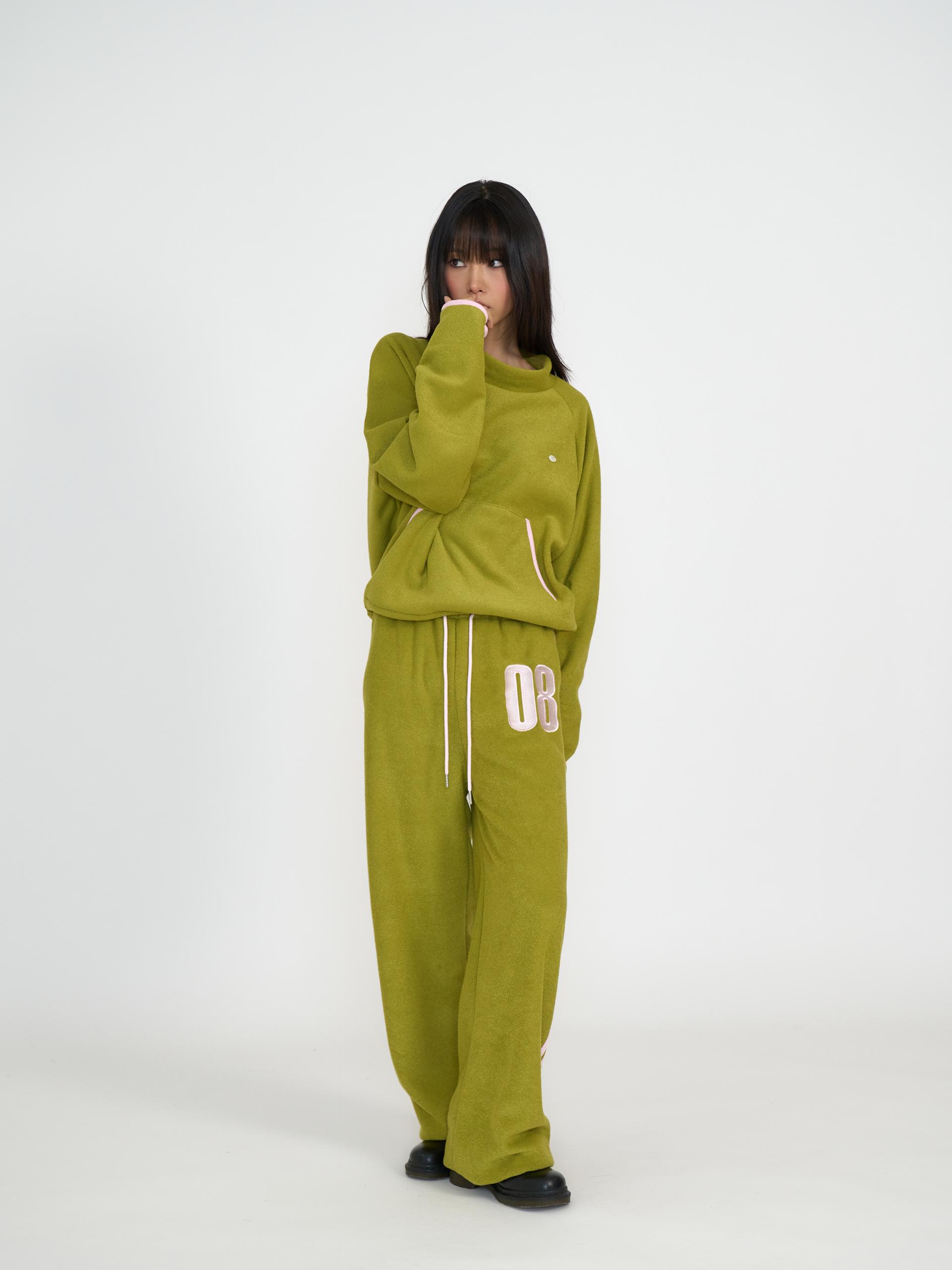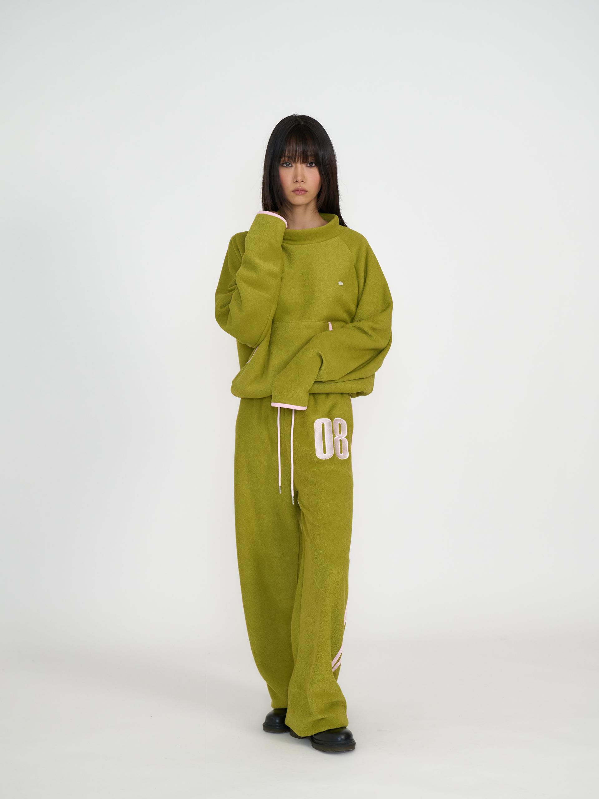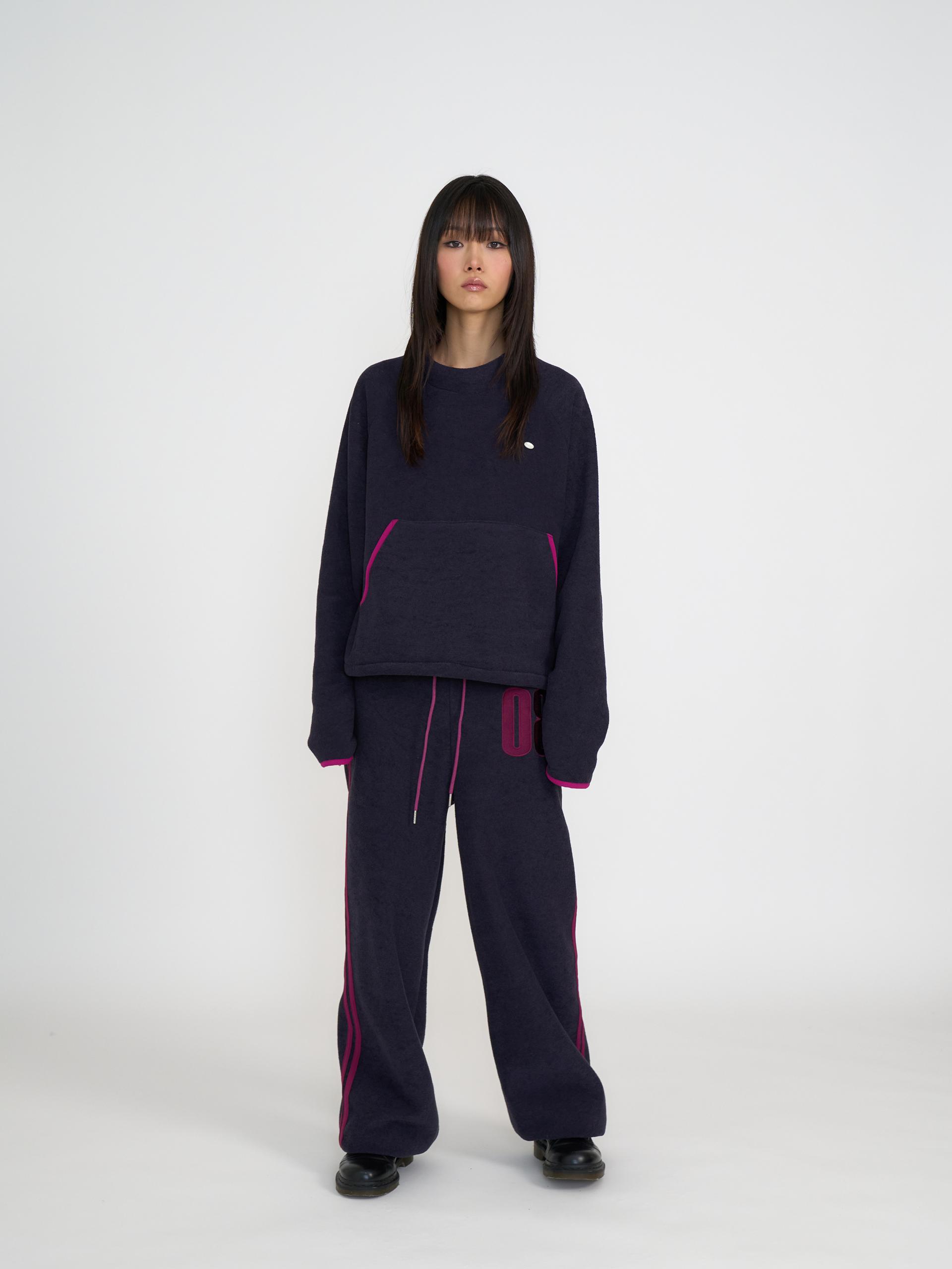 독특한 텍스처의 기모 원단으로 제작되어 부드럽고 따뜻한 착용감을 제공합니다. 신축성 있는 원단과 긴 기장감, 밑단 스토퍼 디테일로 편안하게 조절할 수 있으며 컬러 포인트 자수와 라인 디자인이 스포티한 인상을 줍니다. 하프넥 레글런 롱슬리브와 셋업으로 착용할 수 있는 아이템으로 올리브와 네이비 두 컬러로 출시 되었습니다.