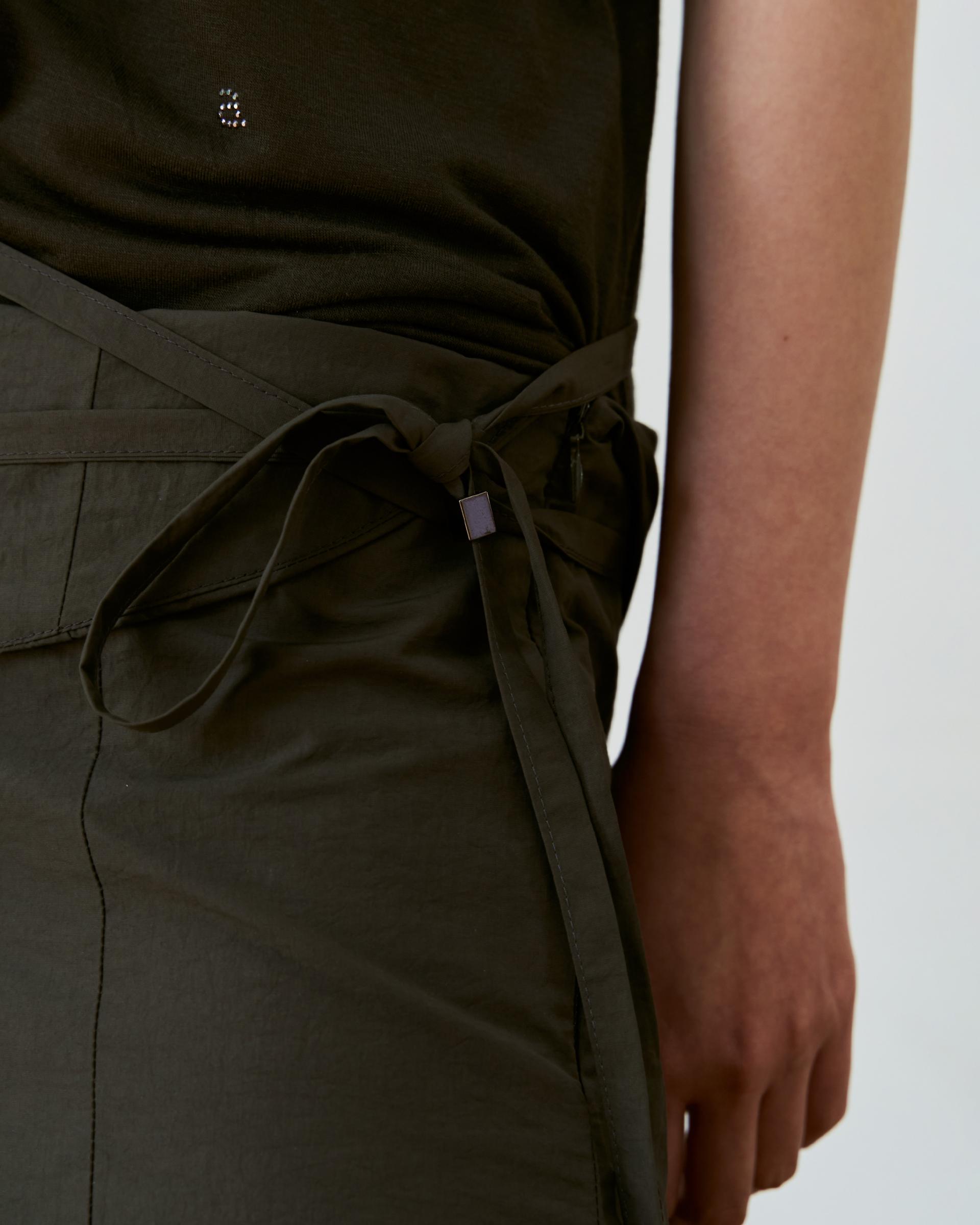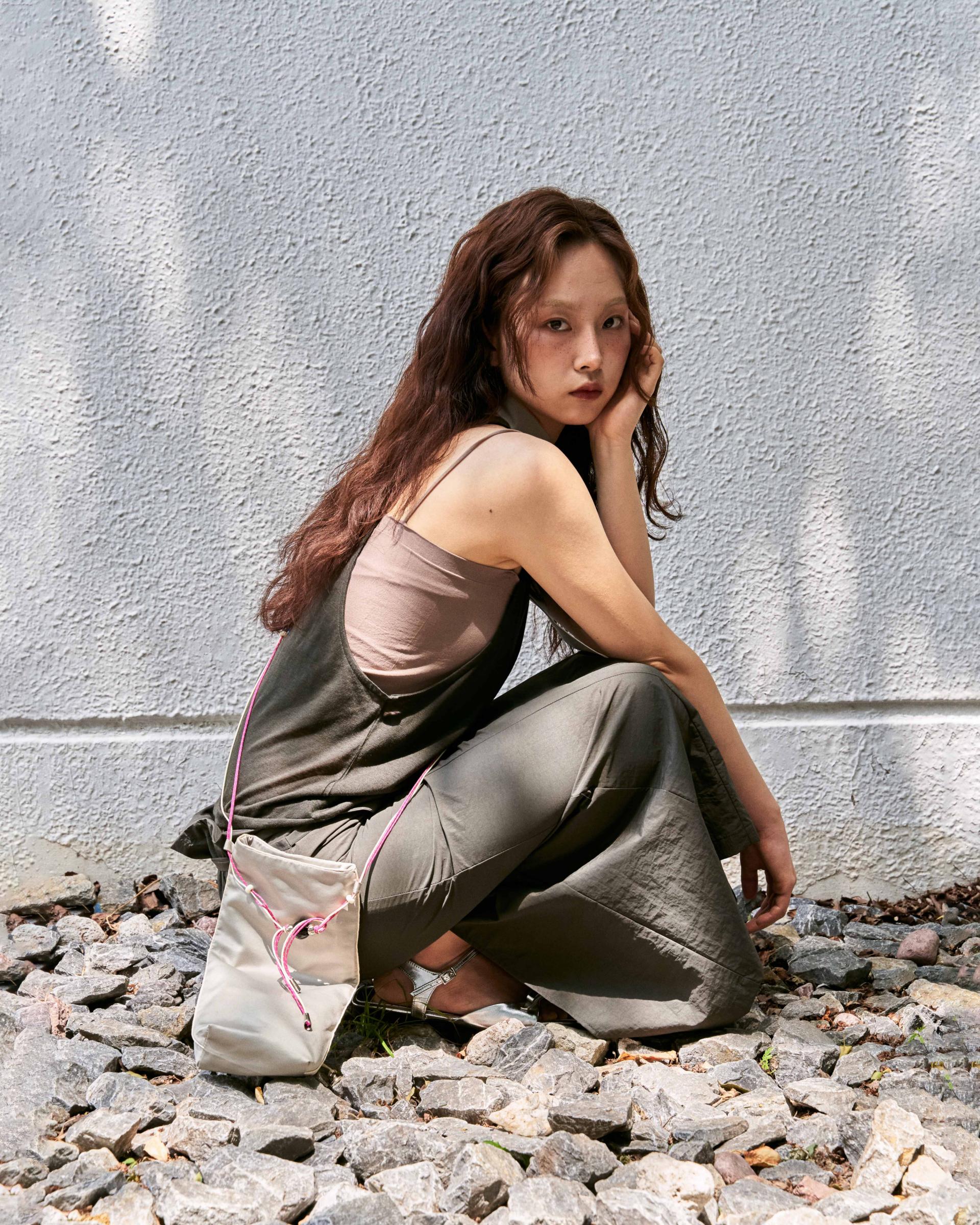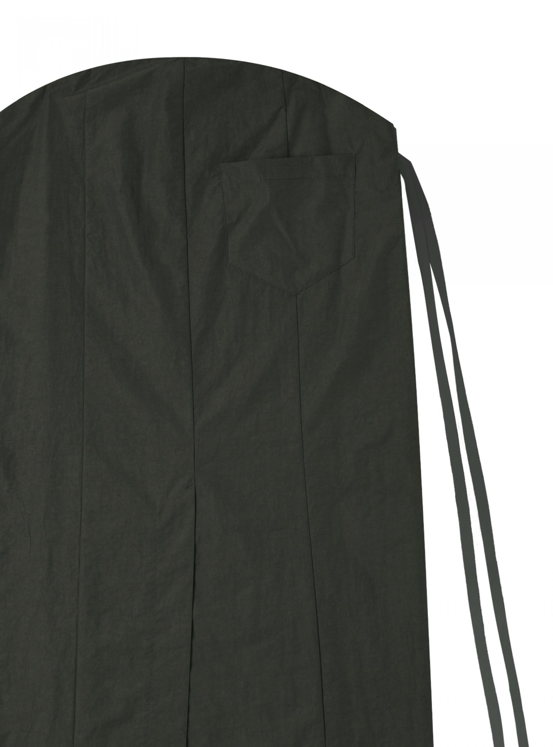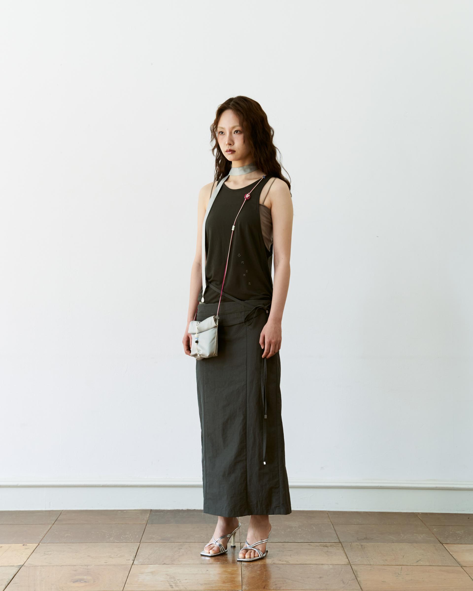 둥근 라인 디테일과 긴 끈을 통해 다양한 스타일링이 가능한 라운드 스트링 롱 스커트