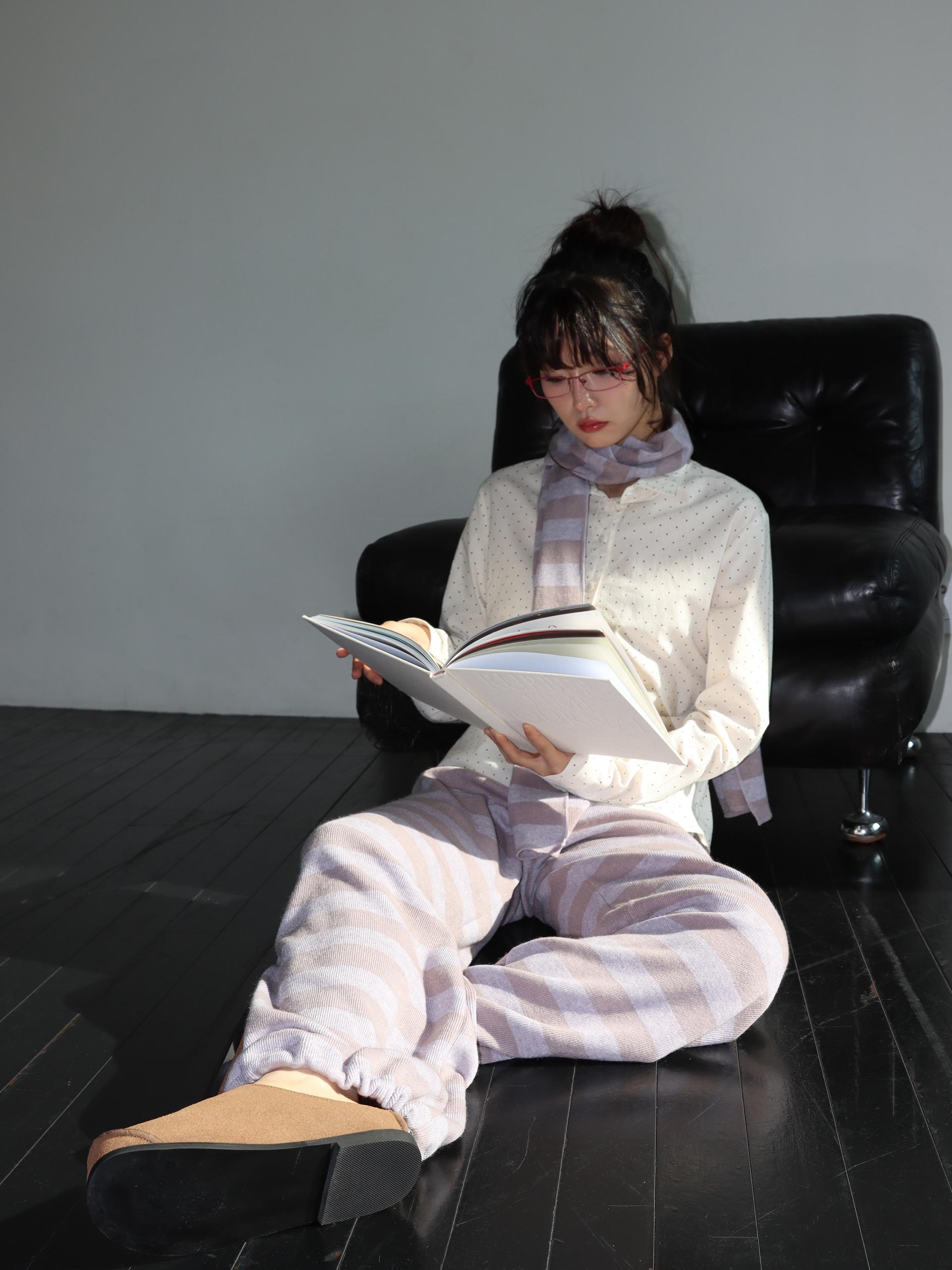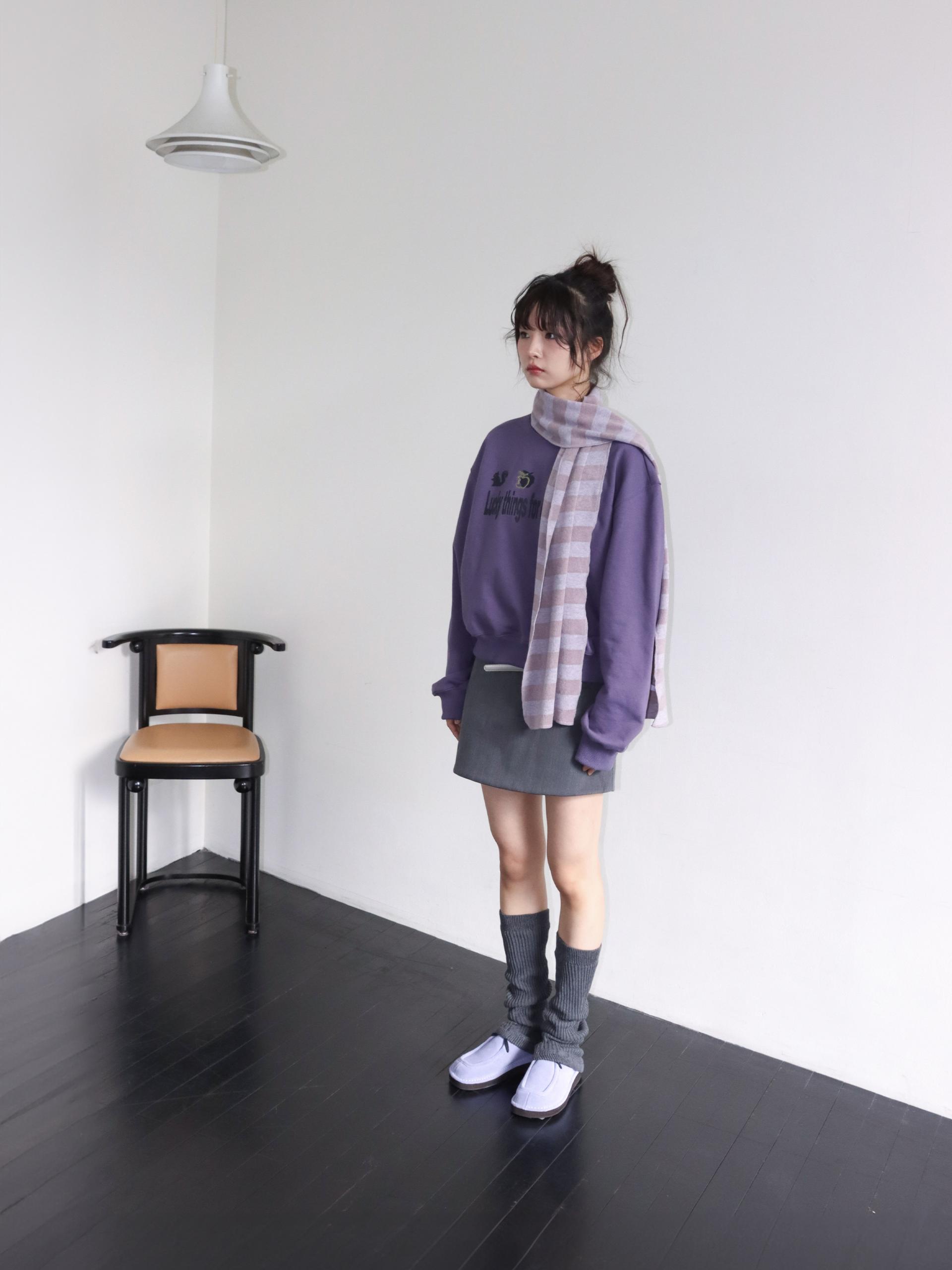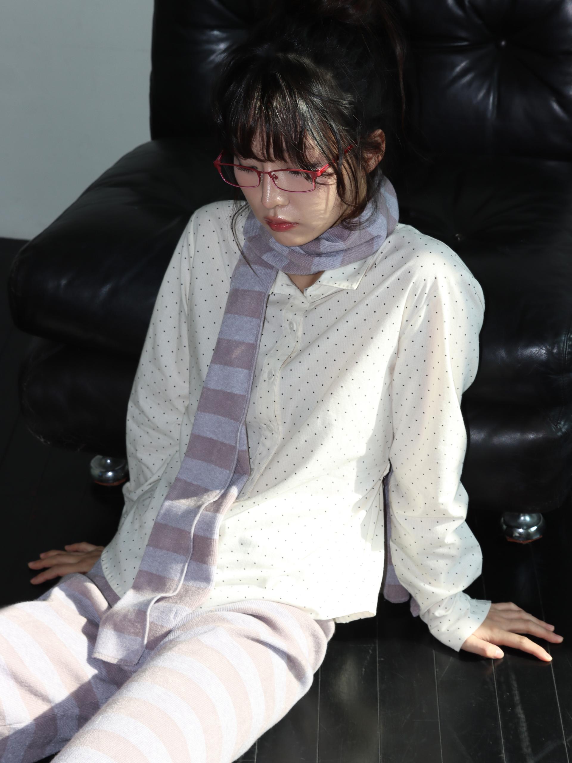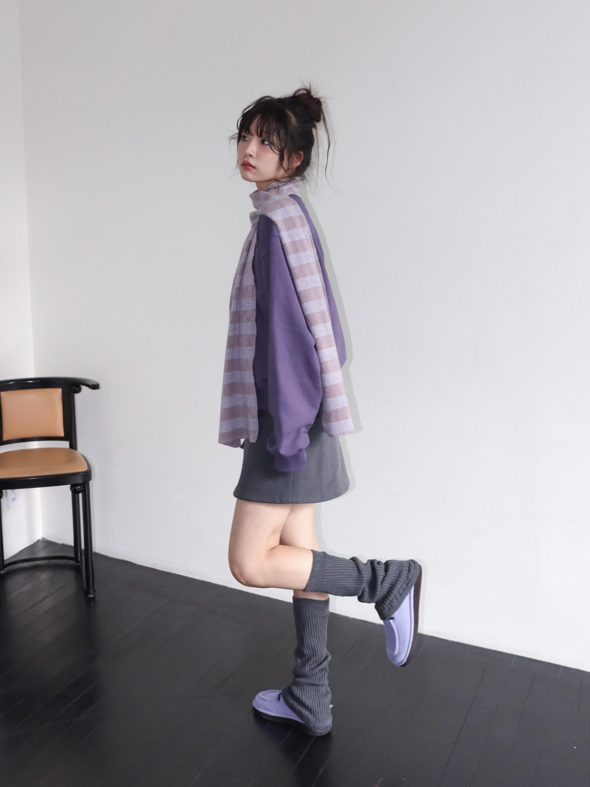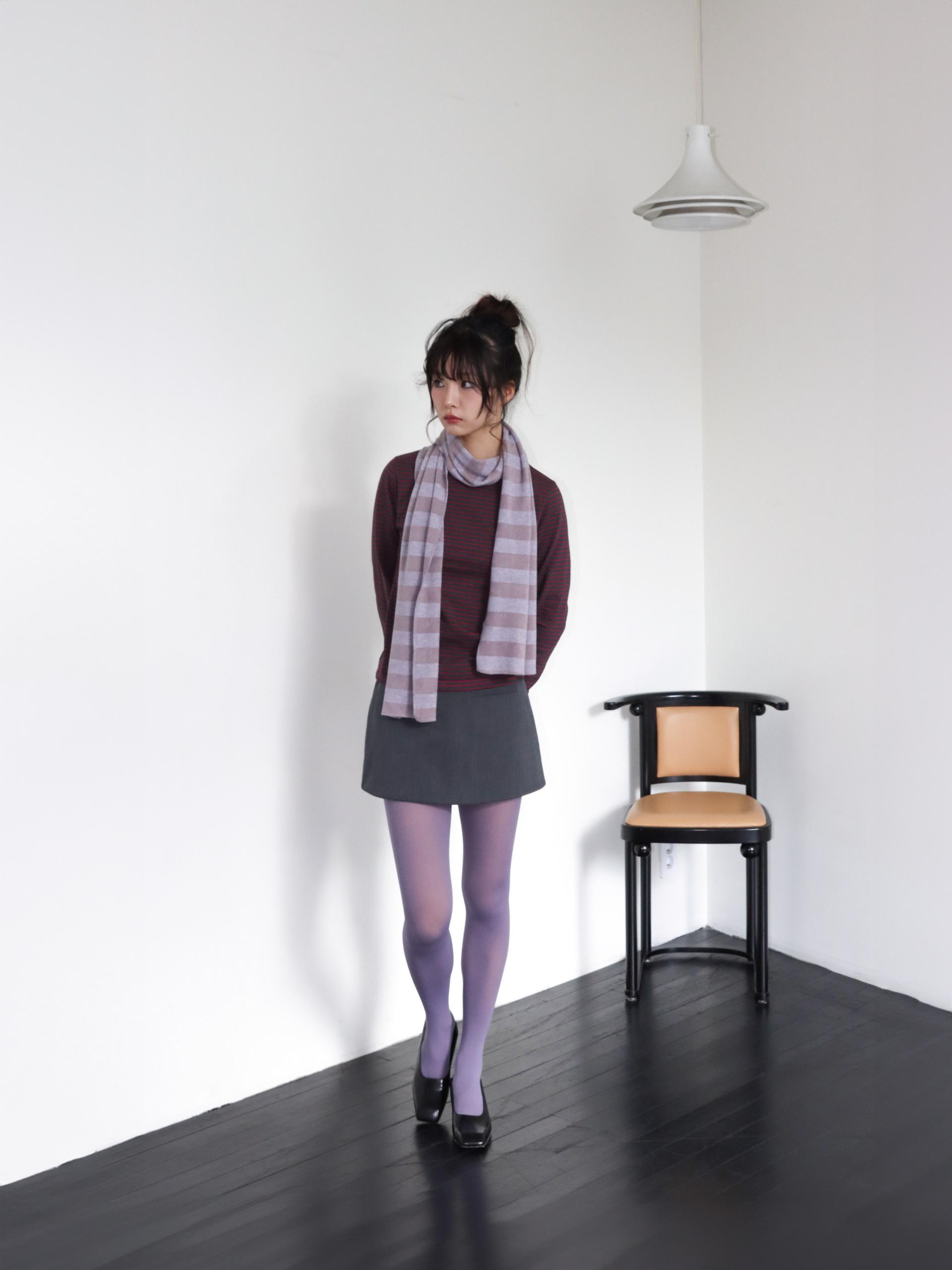 퍼플&베이지와 차콜&블랙 두 가지 색상으로 출시된 Stripe Knit Muffler.