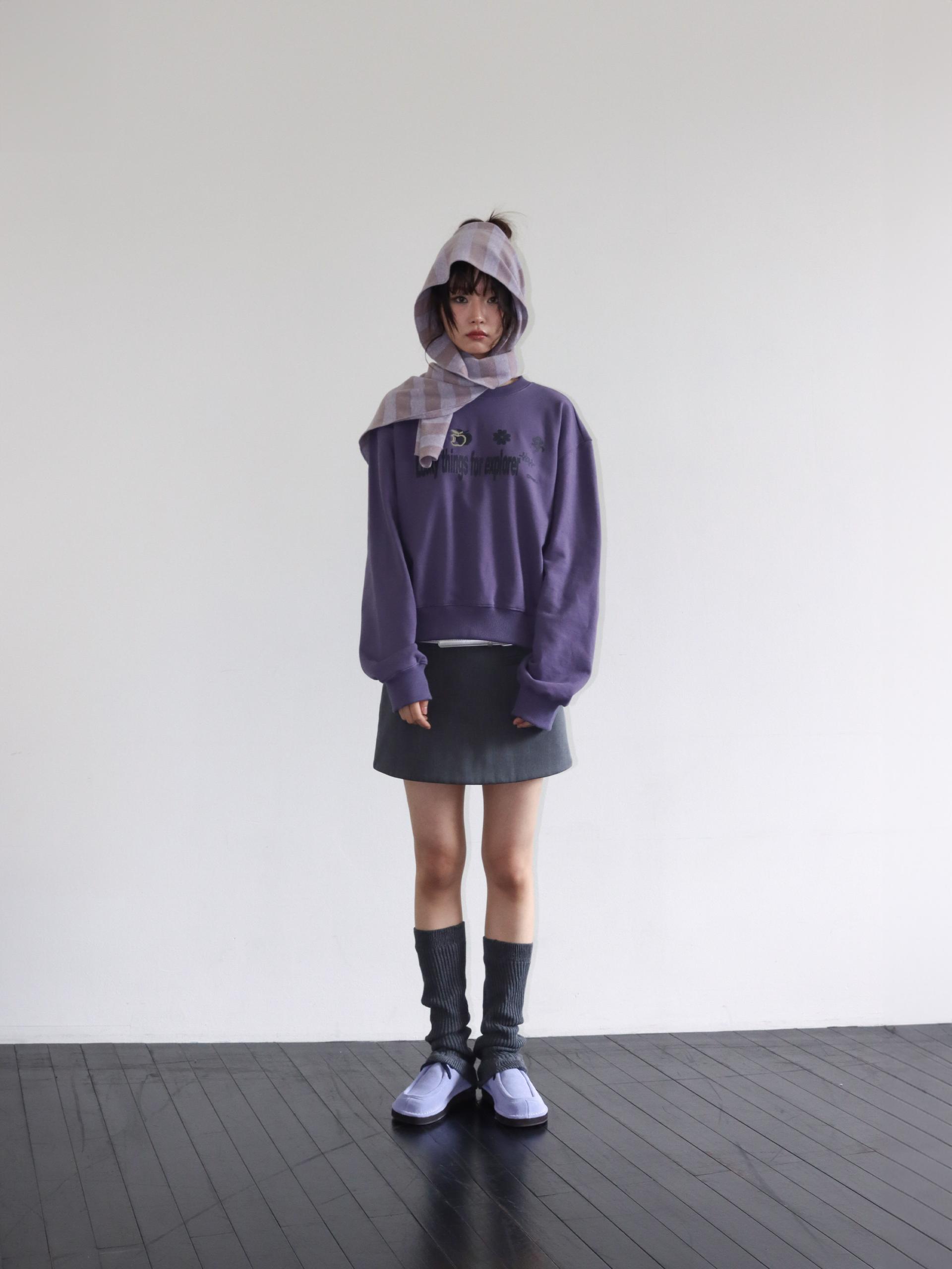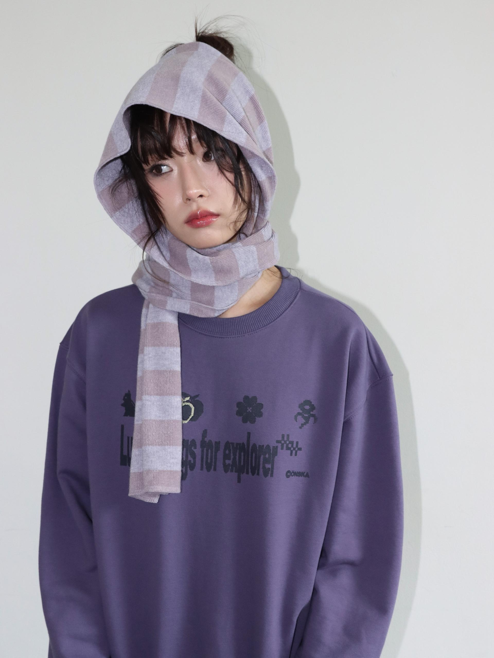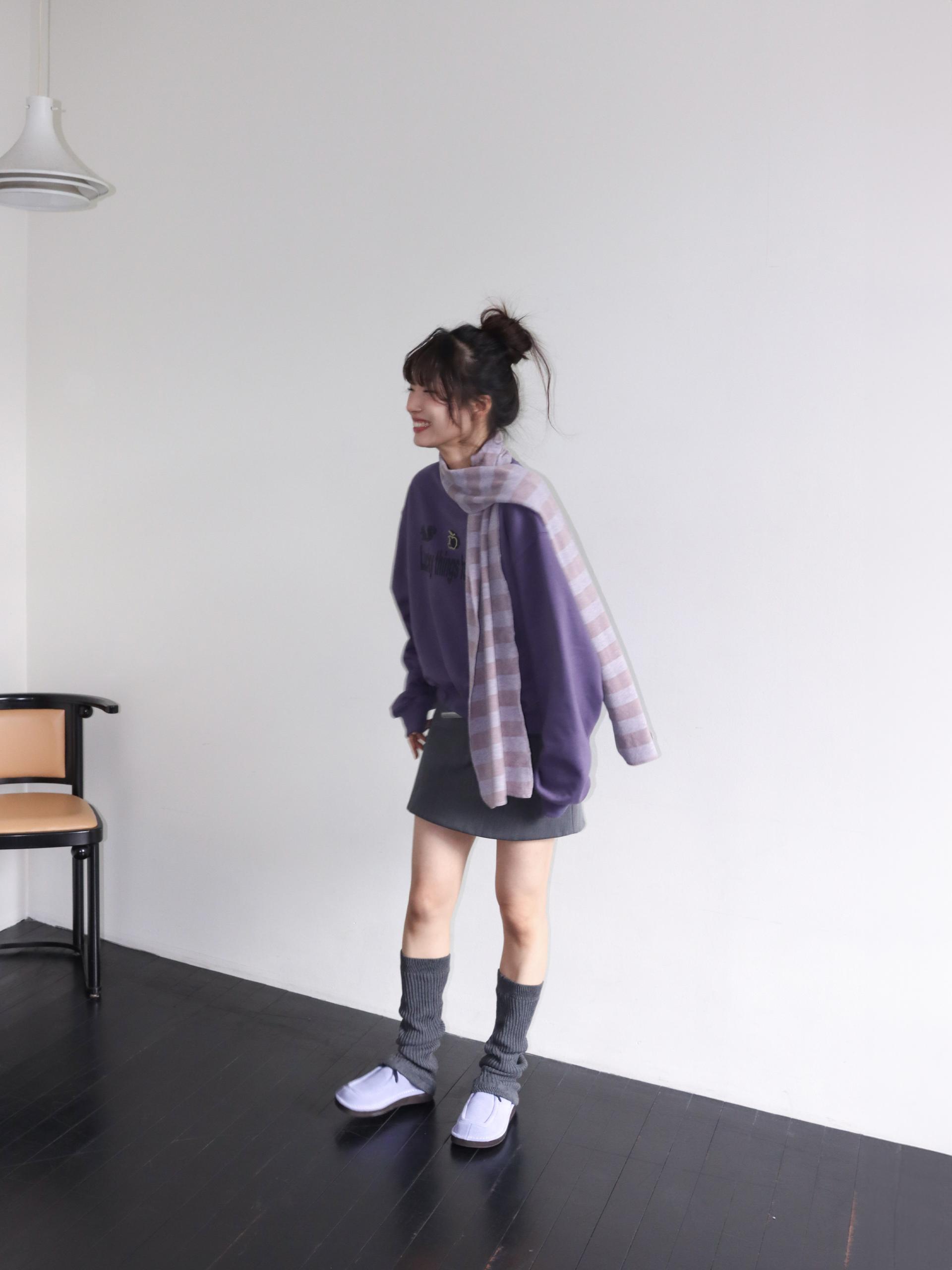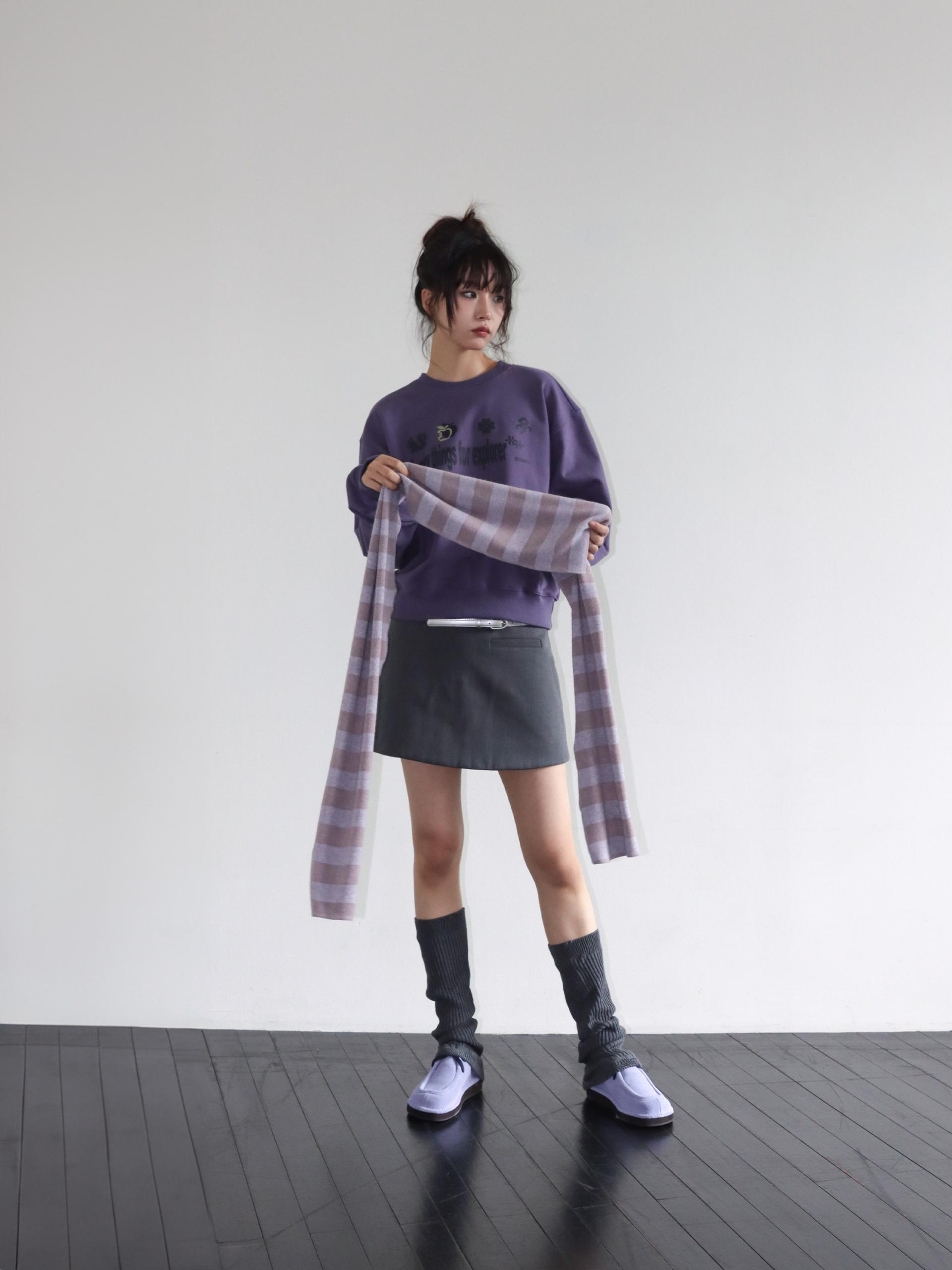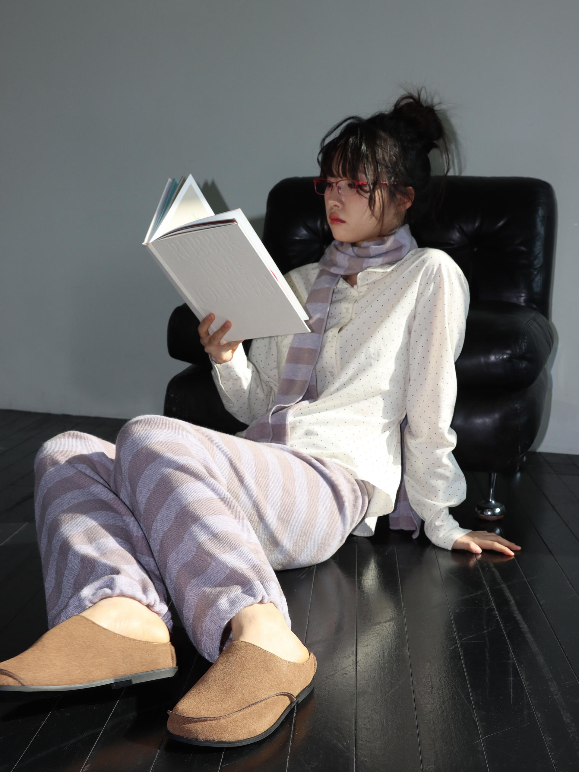 퍼플&베이지와 차콜&블랙 두 가지 색상으로 출시된 Stripe Knit Muffler.