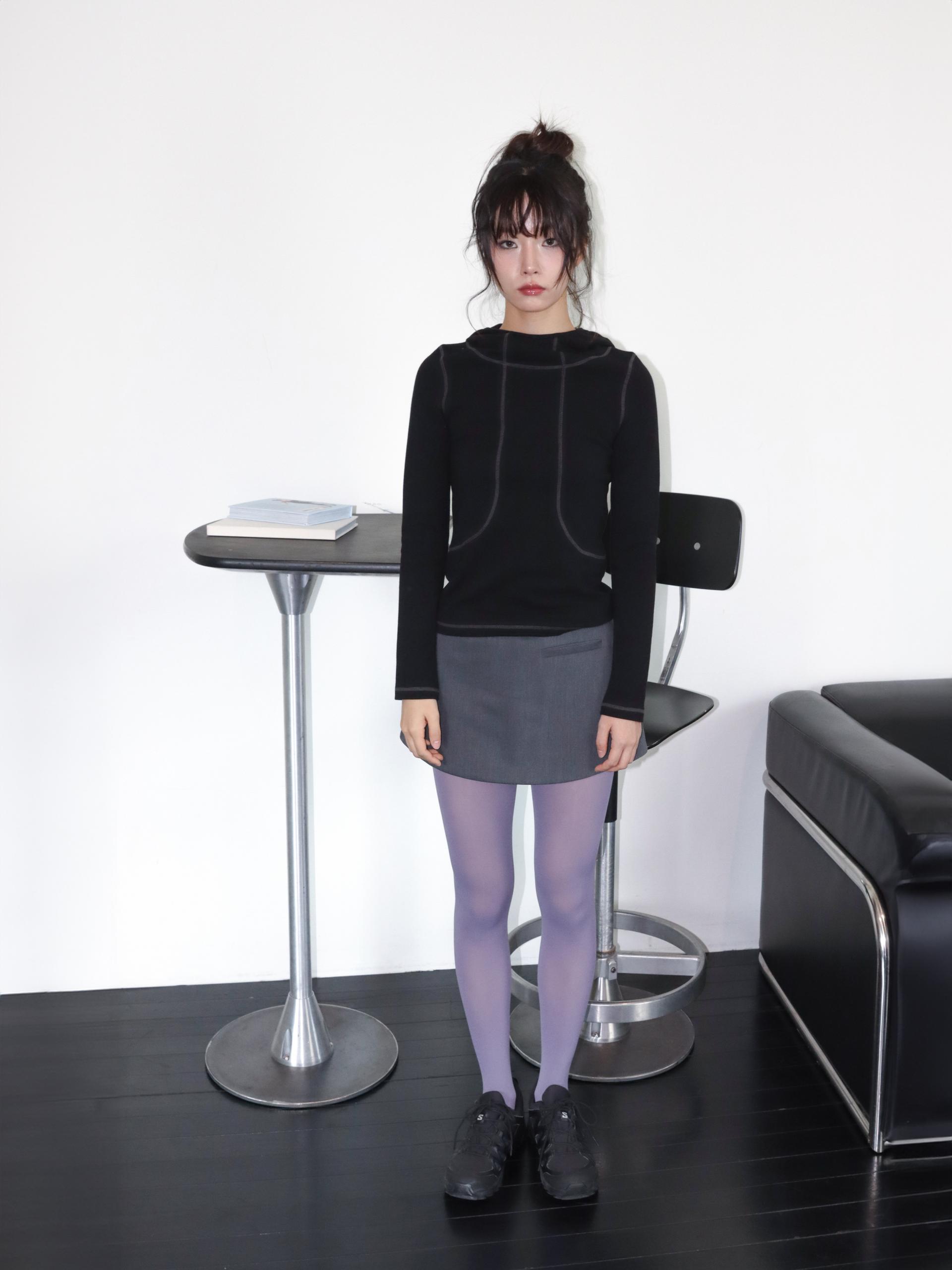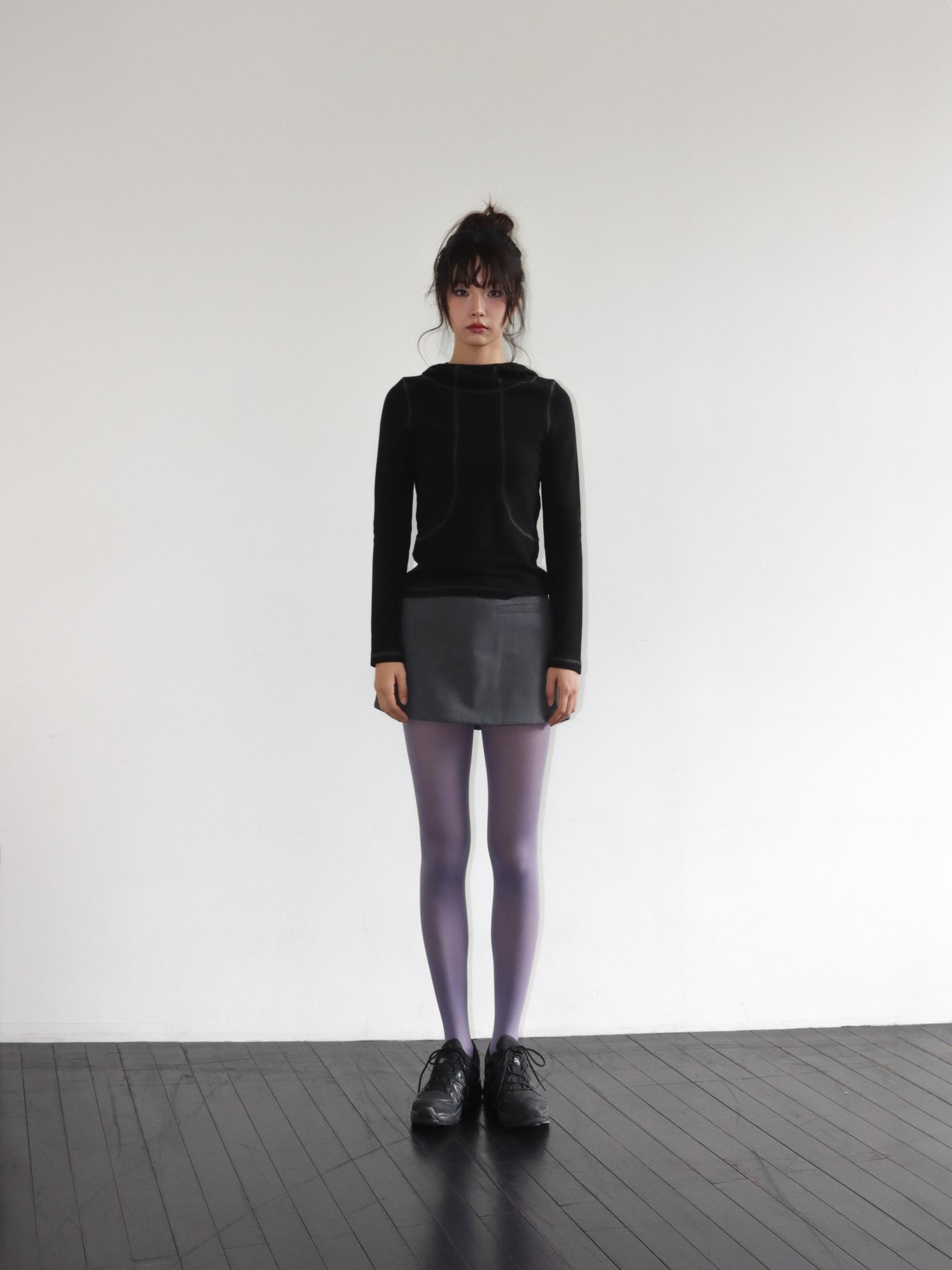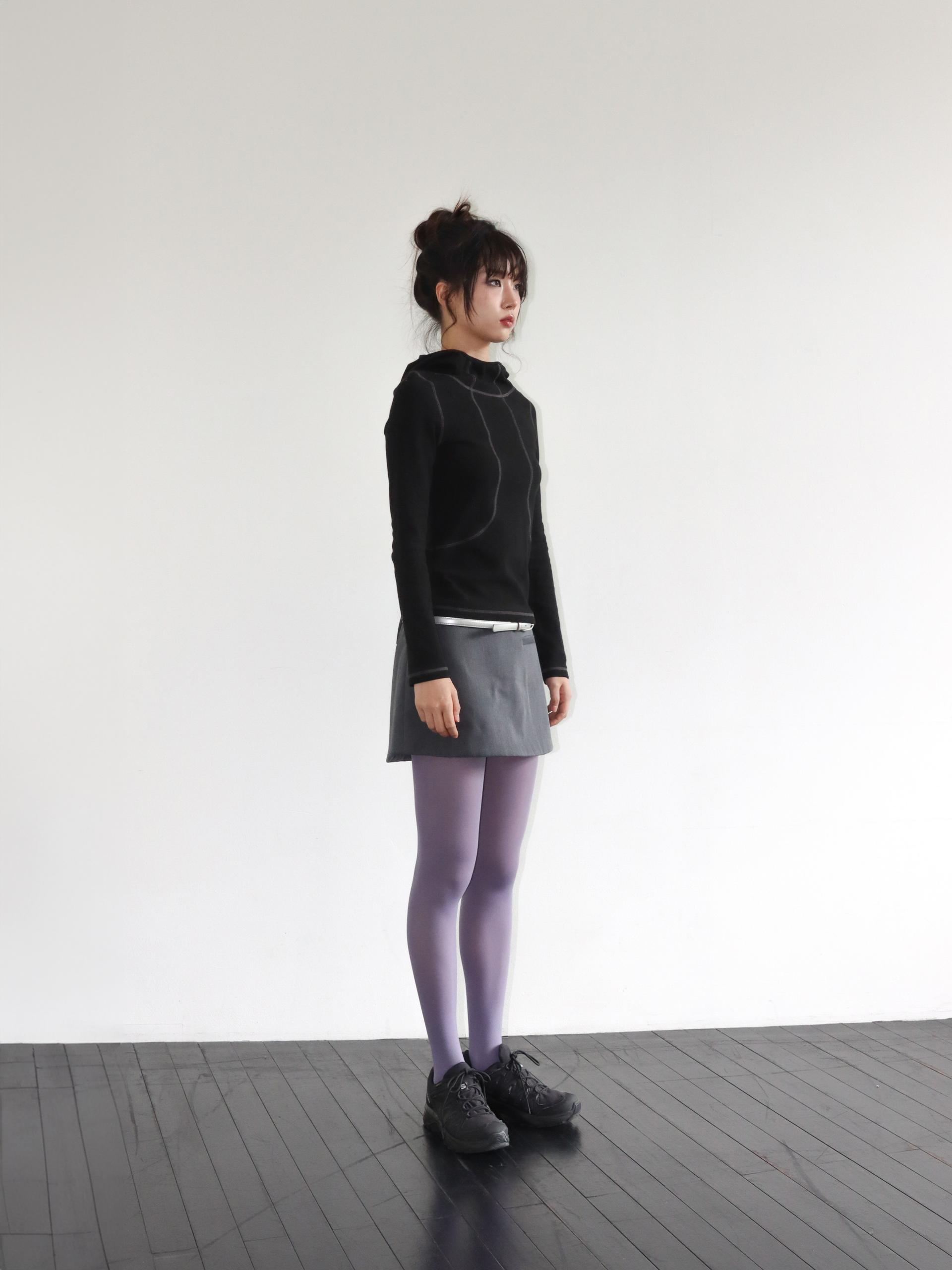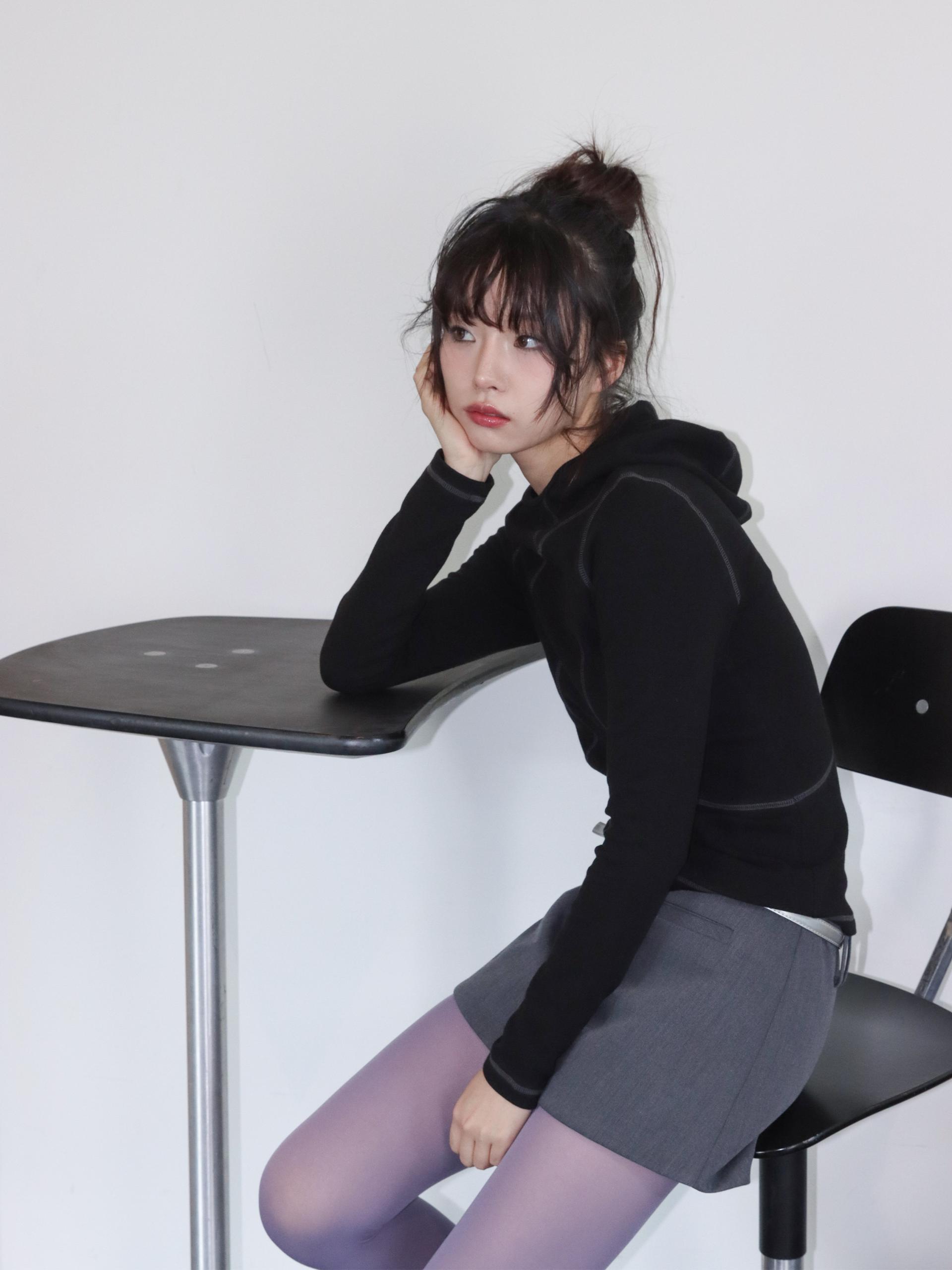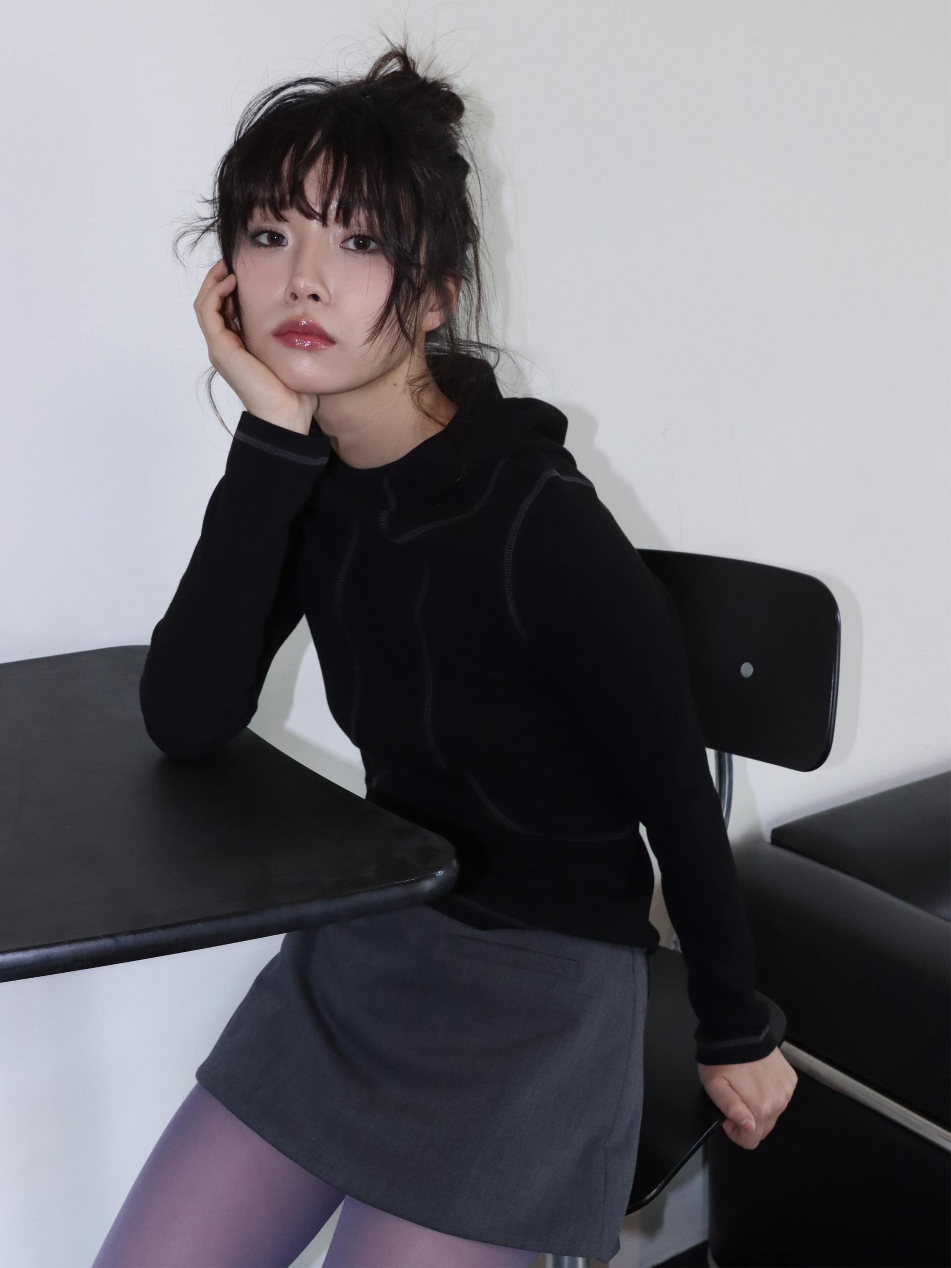 몸 전체에 절개 디자인이 들어가 있으며 절개라인은 3 Needle 5 Thread Coverstitch 봉제 기법을 사용했습니다. 스티치 컬러는 톤온톤으로 매치해 오묘한 컬러감을 가지고 있으며 스판 혼용 소재로 굉장히 신축성이 좋으며 탄탄해 높은 완성도와 활동성을 보여줍니다. 큰 네크라인은 카울넥을 연상시키며 후디를 활용하여 단독착용은 물론 레이어드하는 등 다양하게 연출할 수 있는 아이템입니다.