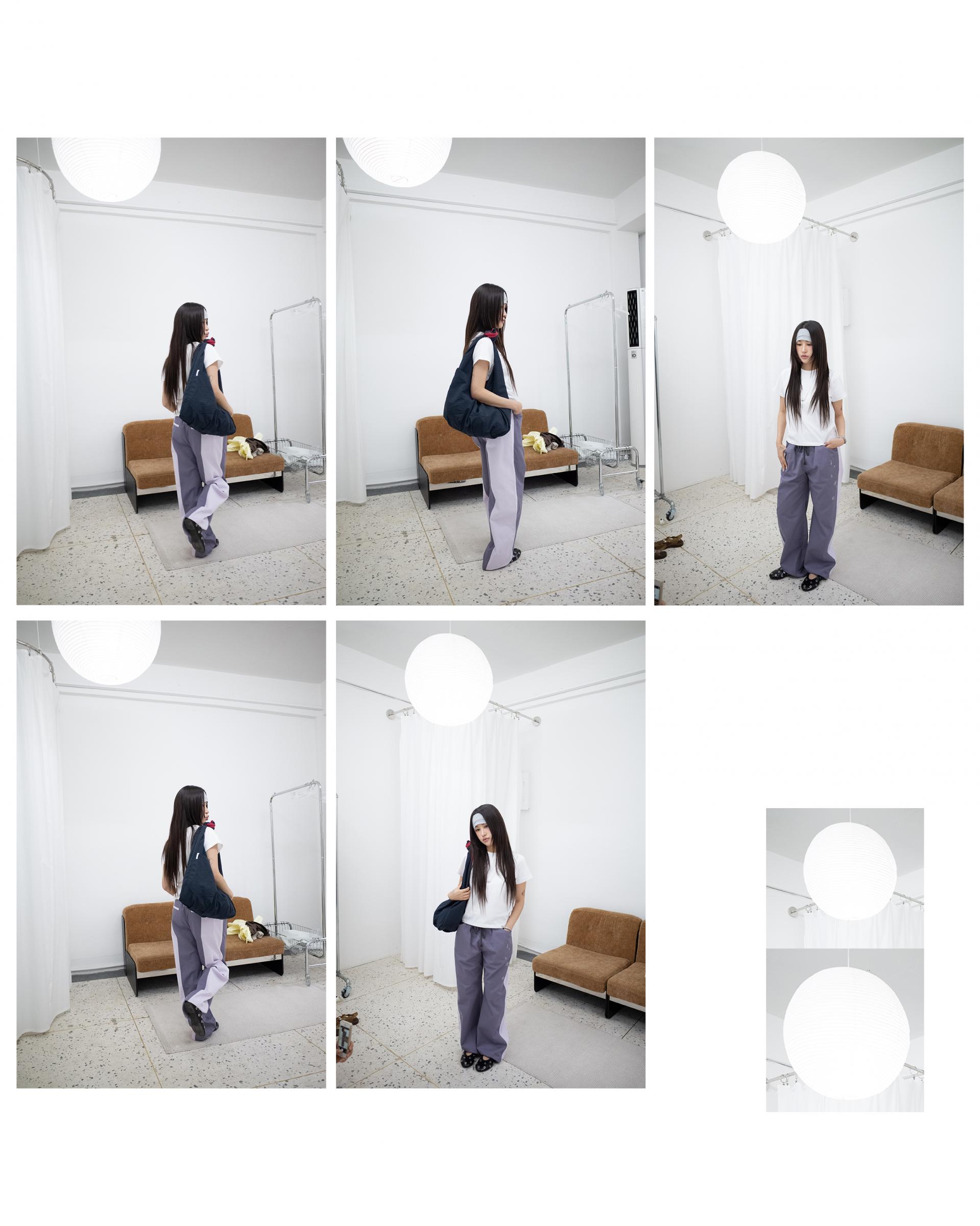 탄탄한 면 원단으로 제작된 DOODLE CURVED PANTS.