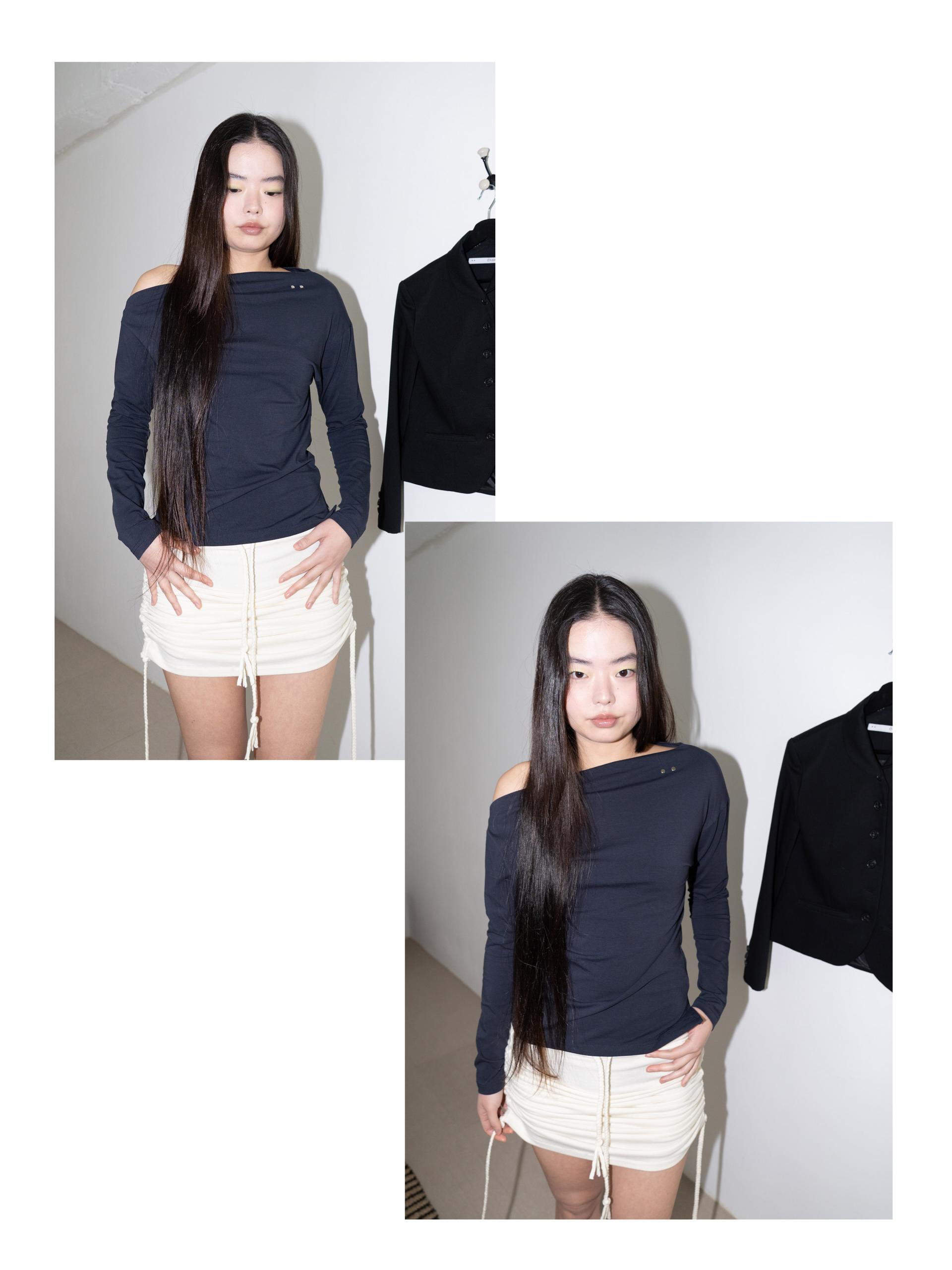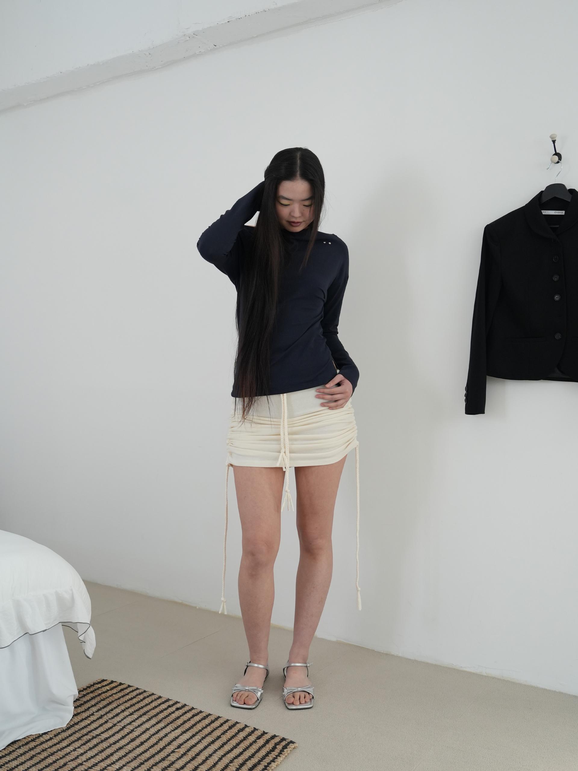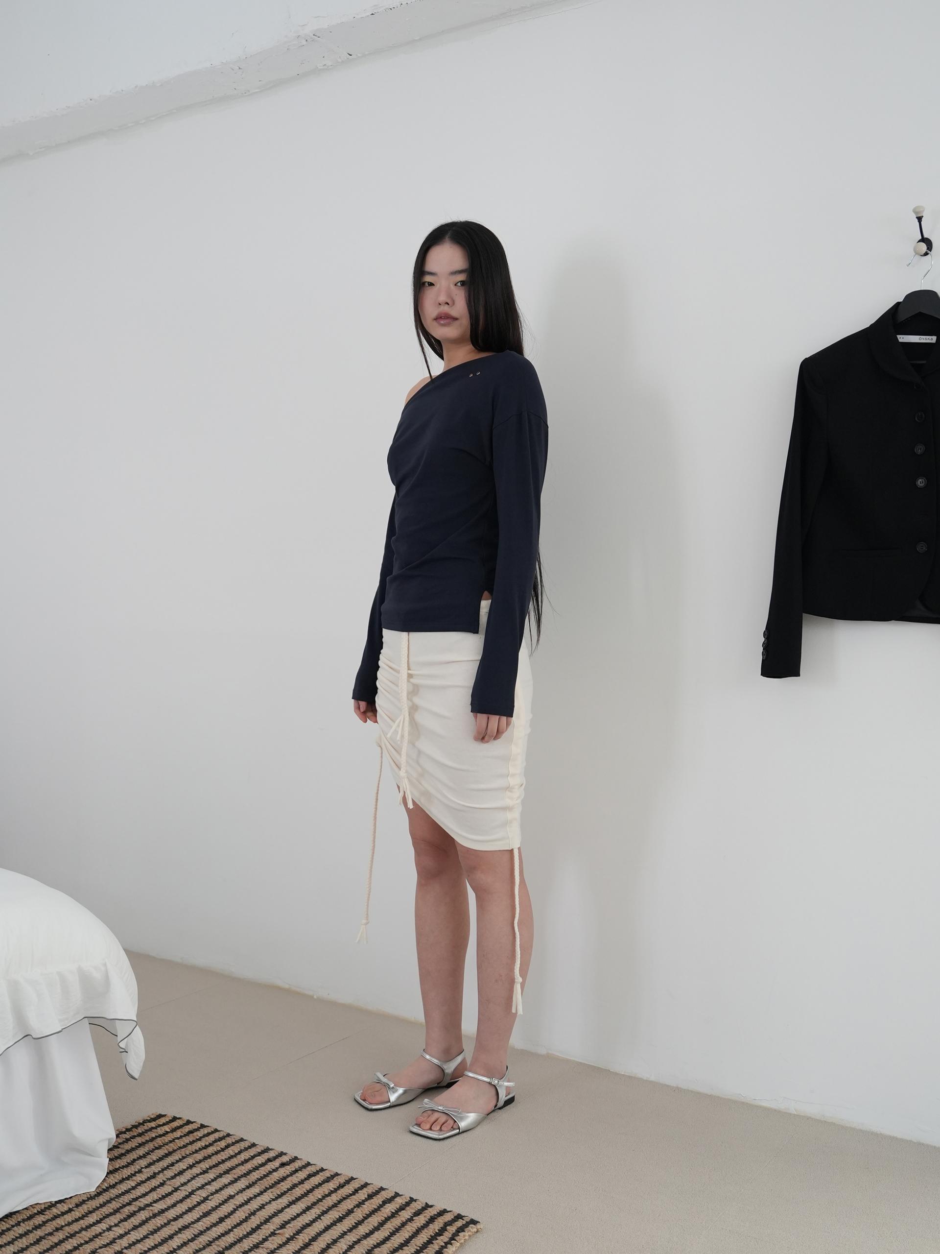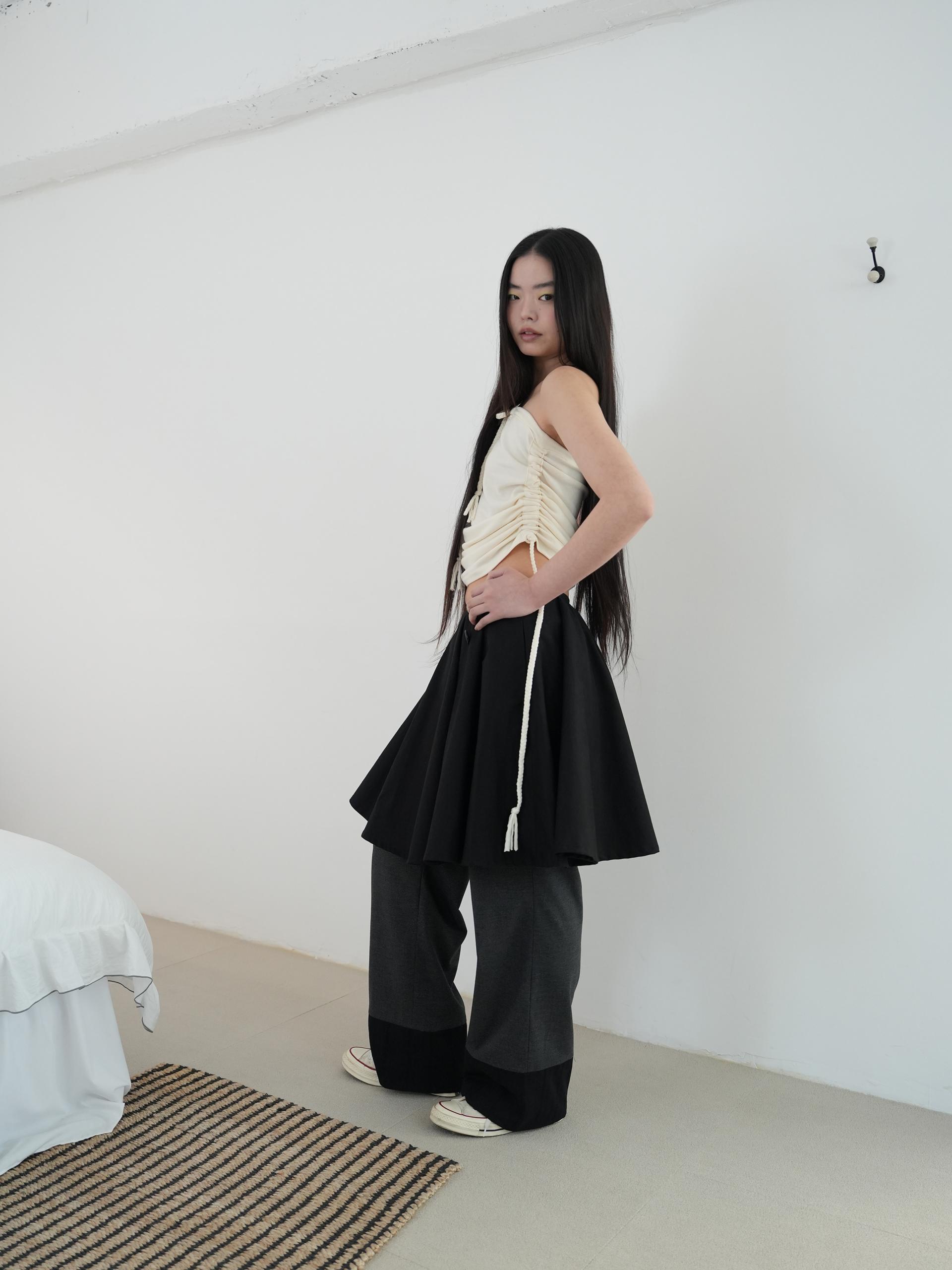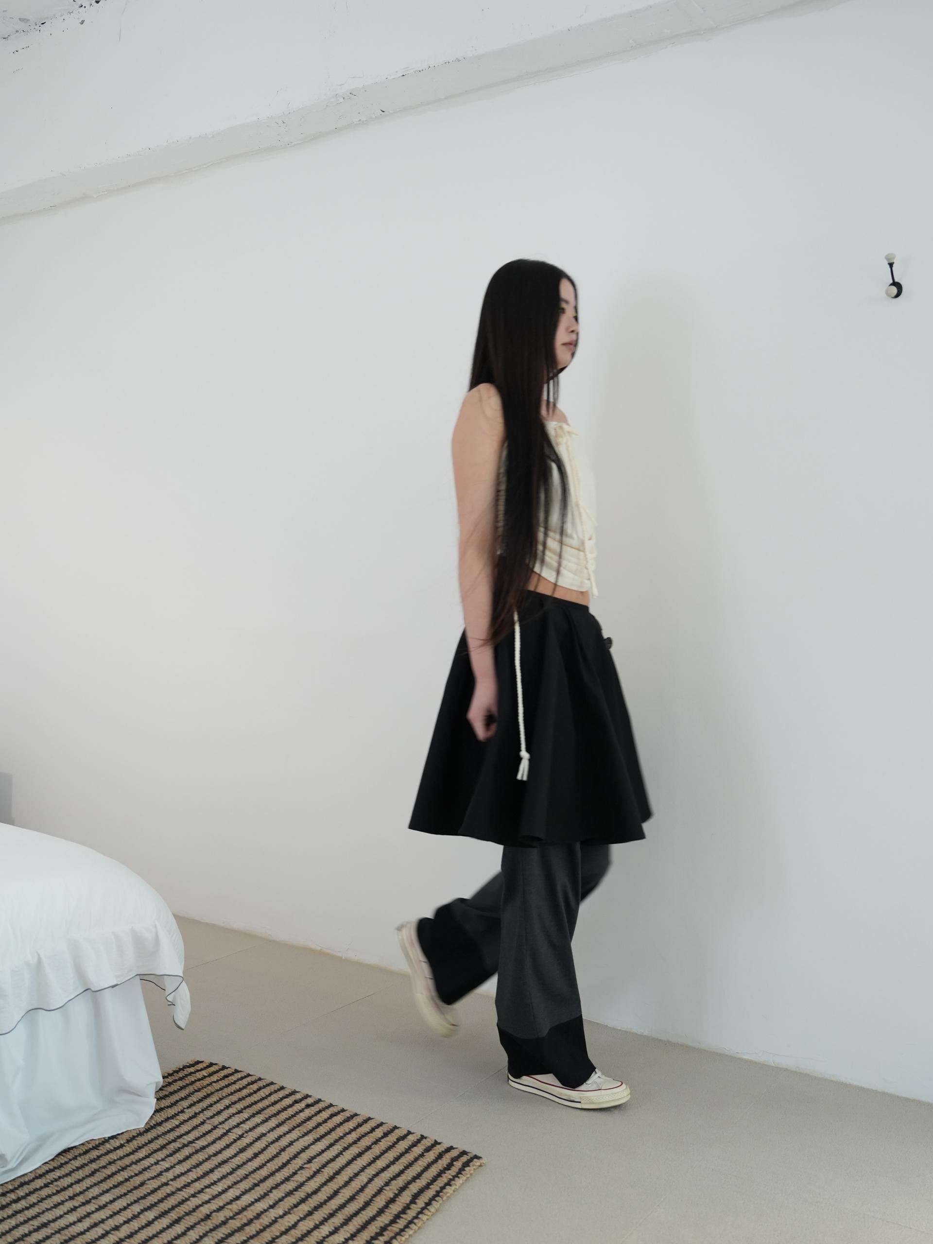 끈을 활용하여 짧은 기장의 셔링 스커트, 길게 내려 팬슬스커트, 혹은 탑으로도 자유롭게 활용할 수 있는 BRAID TIE SKIRT.