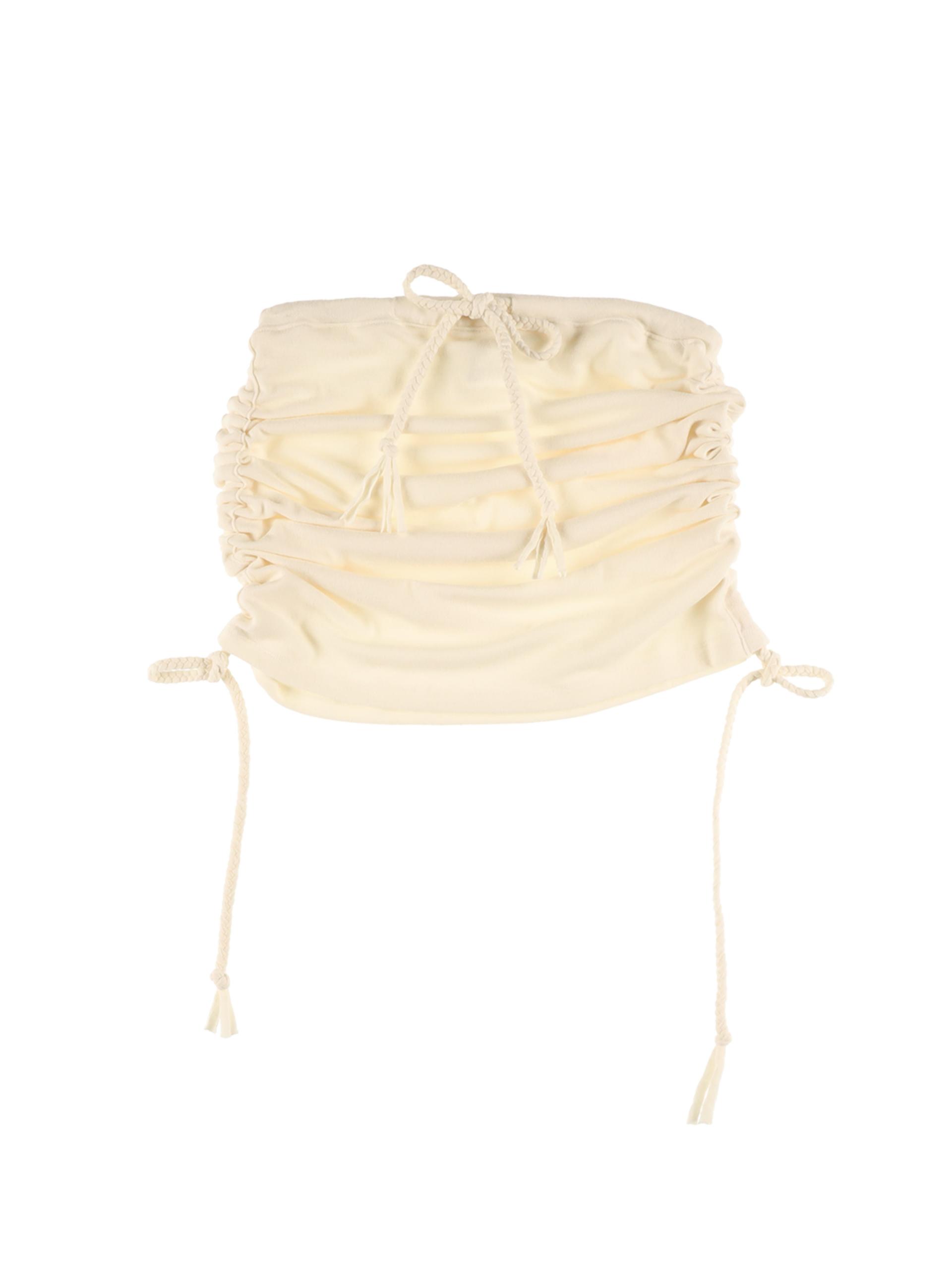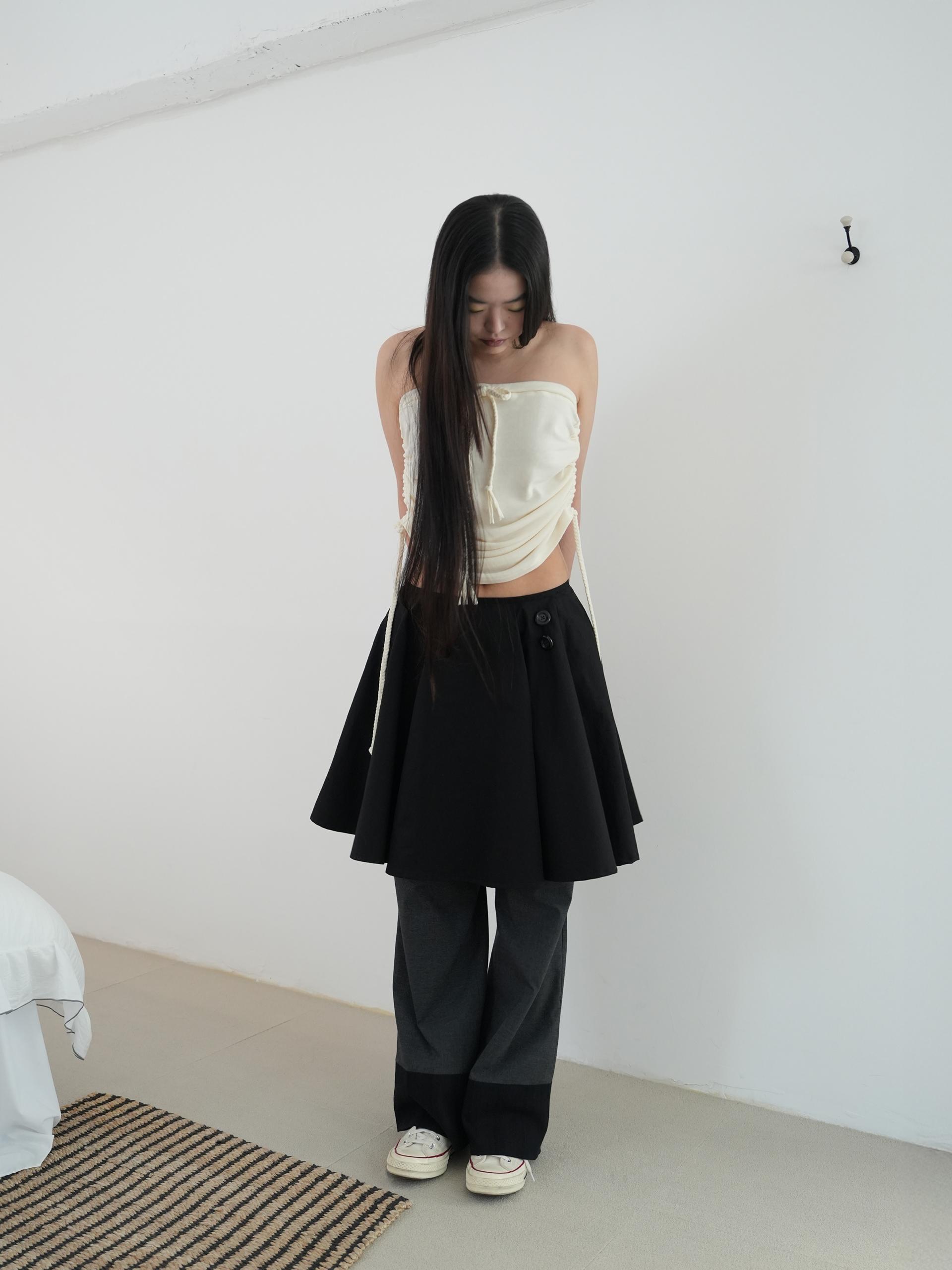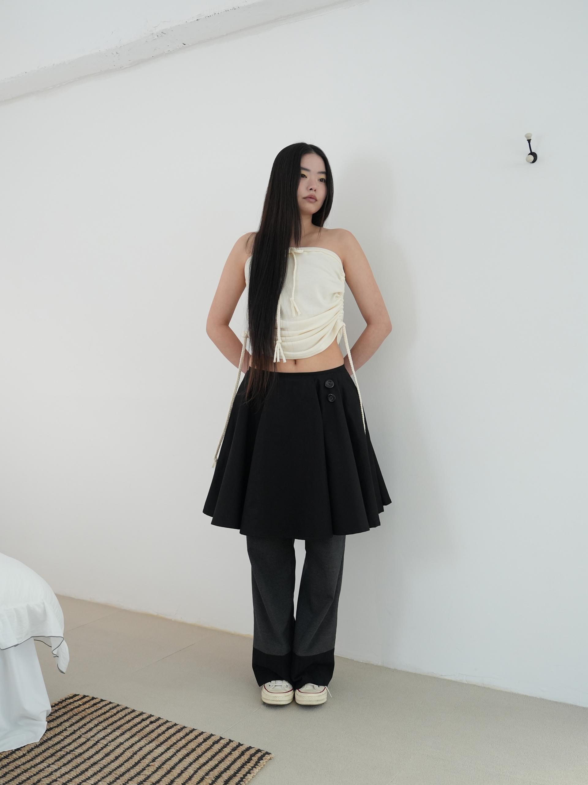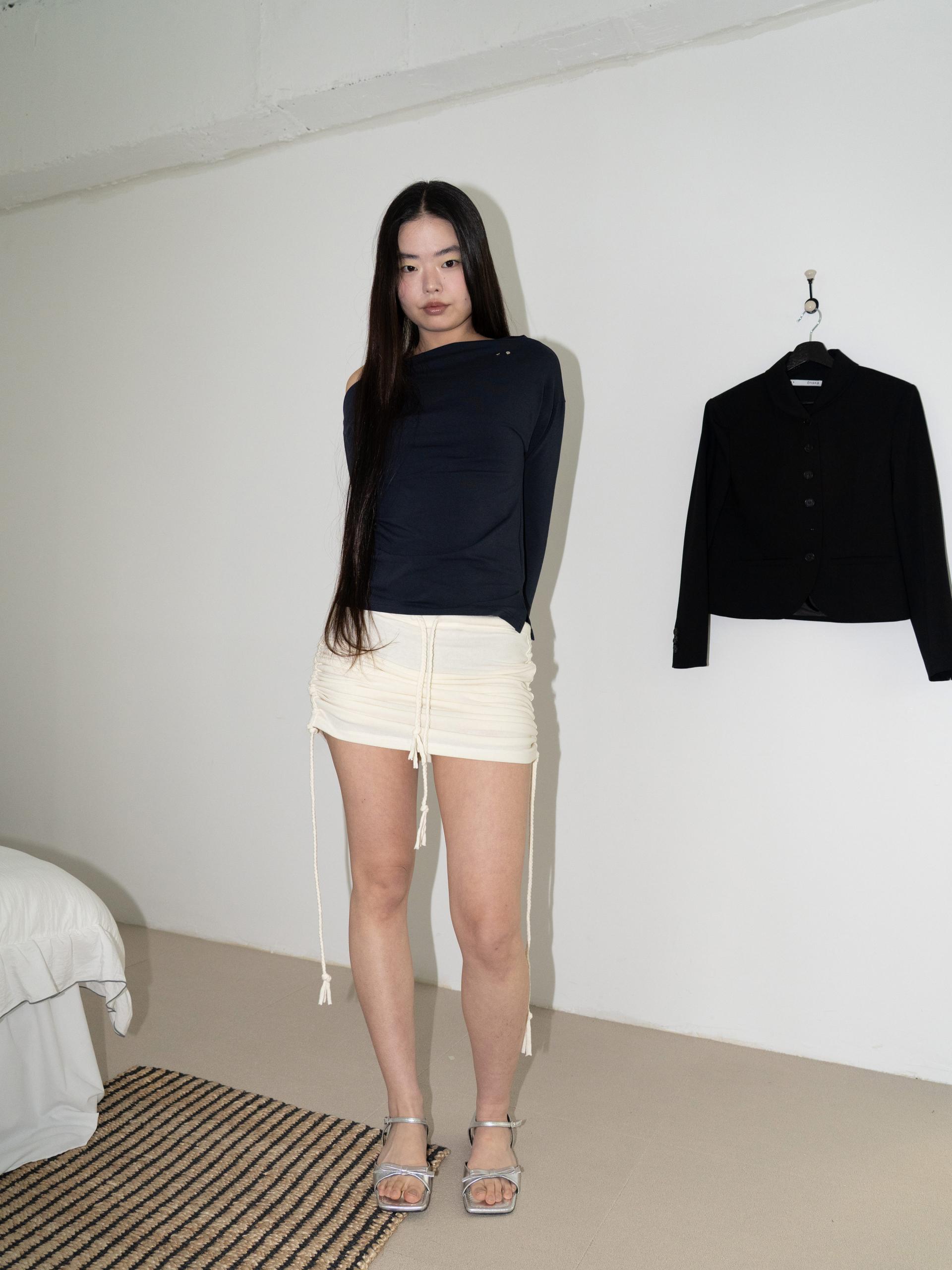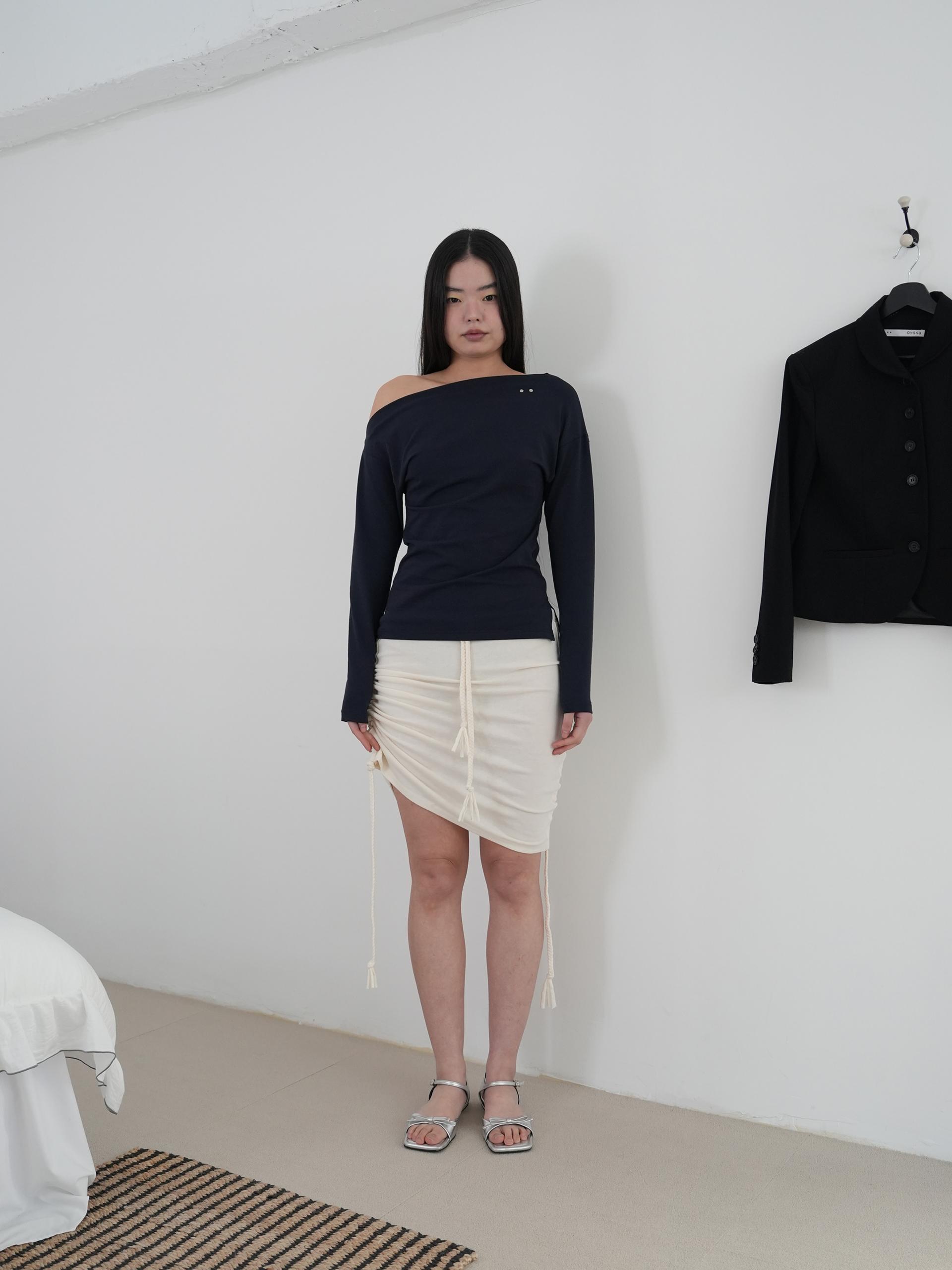 끈을 활용하여 짧은 기장의 셔링 스커트, 길게 내려 팬슬스커트, 혹은 탑으로도 자유롭게 활용할 수 있는 BRAID TIE SKIRT.