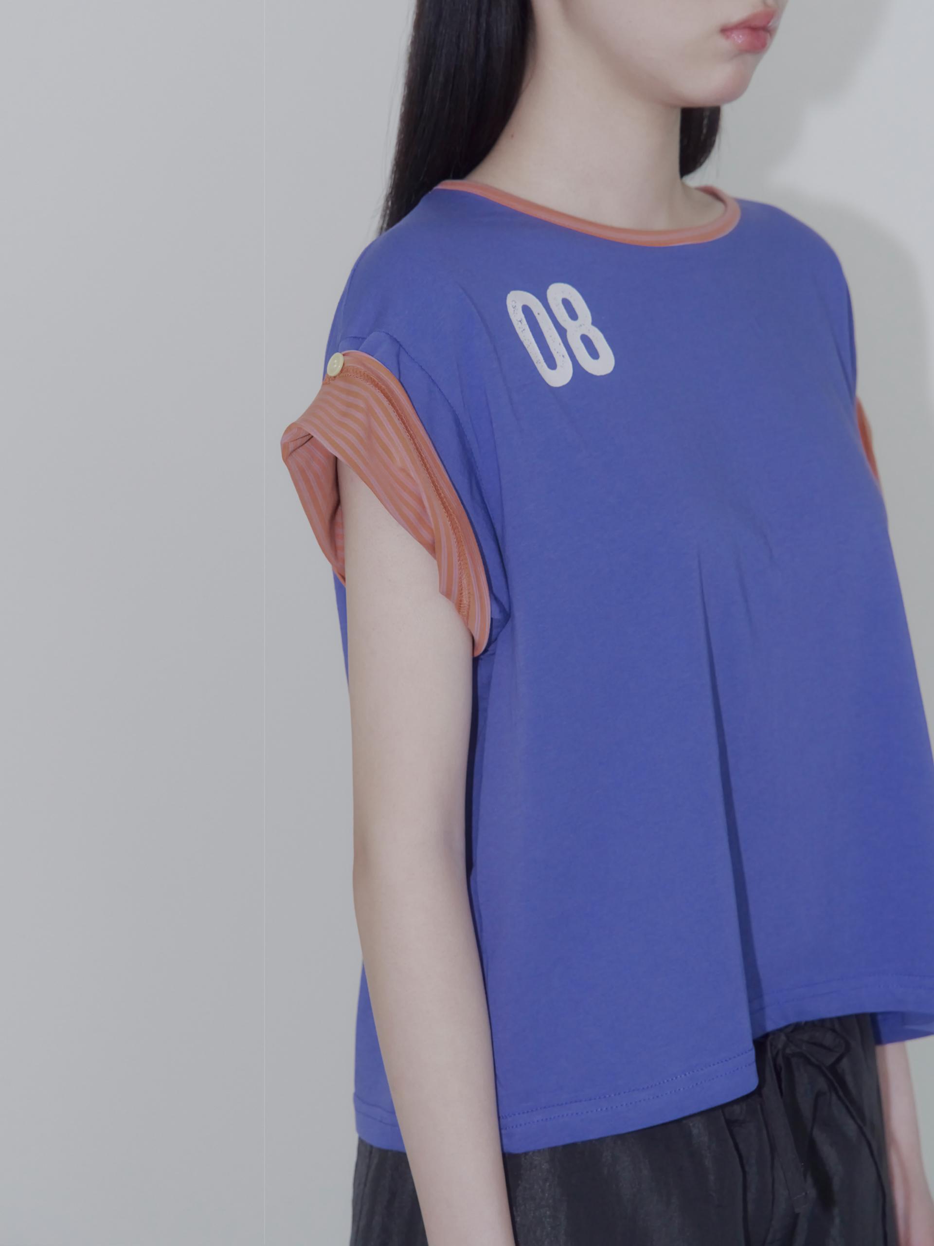 스트라이프와 솔리드 배색 원단을 조합한 더블소매에는 작은 단추 디테일이 있어 한 단 접어 짧게 연출할 수 있습니다. 온스카의 08 크랙 프린팅을 더해 다채로운 색감 조합을 보여주며, 골반 위에서 떨어지는 경쾌한 기장감으로 다양한 하의와 매치할 수 있습니다. 찰랑거리는 부드러운 원단과 다양한 컬러, 귀여운 디테일로 완성도를 높인 티셔츠입니다.