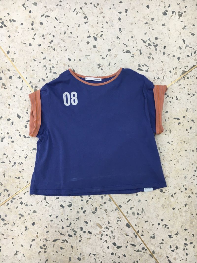 스트라이프와 솔리드 배색 원단을 조합한 더블소매에는 작은 단추 디테일이 있어 한 단 접어 짧게 연출할 수 있습니다. 온스카의 08 크랙 프린팅을 더해 다채로운 색감 조합을 보여주며, 골반 위에서 떨어지는 경쾌한 기장감으로 다양한 하의와 매치할 수 있습니다. 찰랑거리는 부드러운 원단과 다양한 컬러, 귀여운 디테일로 완성도를 높인 티셔츠입니다.