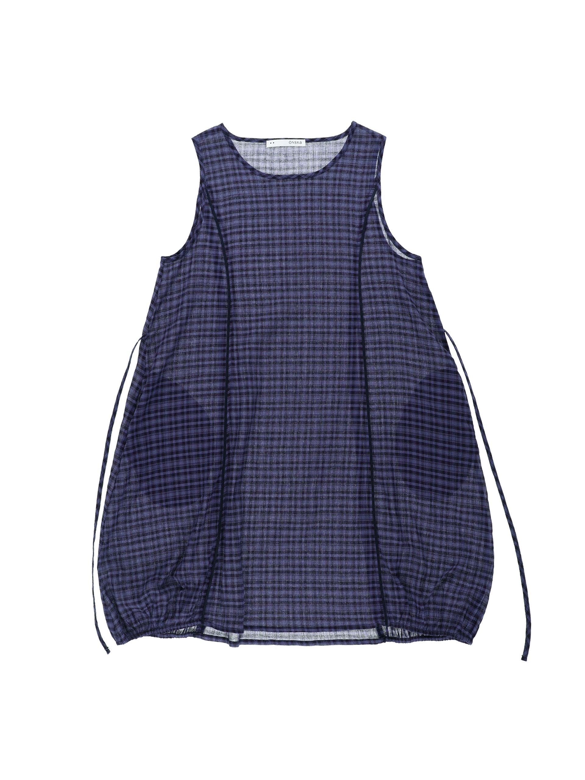 얇고 가벼운 체크 원단으로 제작되어 레깅스나 팬츠, 스커트 등 다양한 하의와 매치하기 좋고, 슬리브리스 형태로 계절에 따라 다양하게 레이어링하여 활용할 수 있습니다. 프린세스 절개선을 따라 파이핑 봉제로 마감해 입체감 있는 구조를 살리고, 날개뼈 사이에 온스카 로고 자수를 더했습니다. 허리 양 옆의 끈으로 실루엣을 조절할 수 있으며, 여유 있는 핏으로 편하게 착용할 수 있습니다.