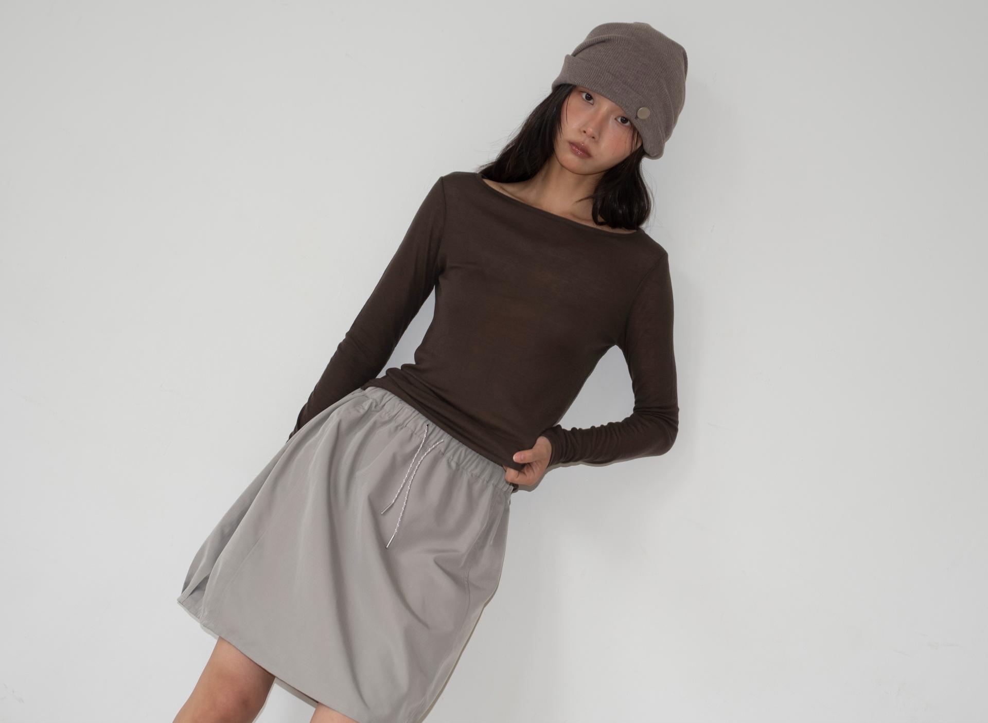 아이보리·모카그레이·레드·브라운·더스티핑크·세이지그린·블랙의 총 7가지 컬러로 선보이며, 차분한 뮤트 톤이 컬러 레이어링에 적합합니다. 소프트한 원단의 자연스러운 비침과 몸에 가볍게 감기는 착용감이 특징이며, 두 가지 컬러를 믹스해 레이어링하면 모든 스타일에 잘 어울리는 아이템으로 추천드립니다.