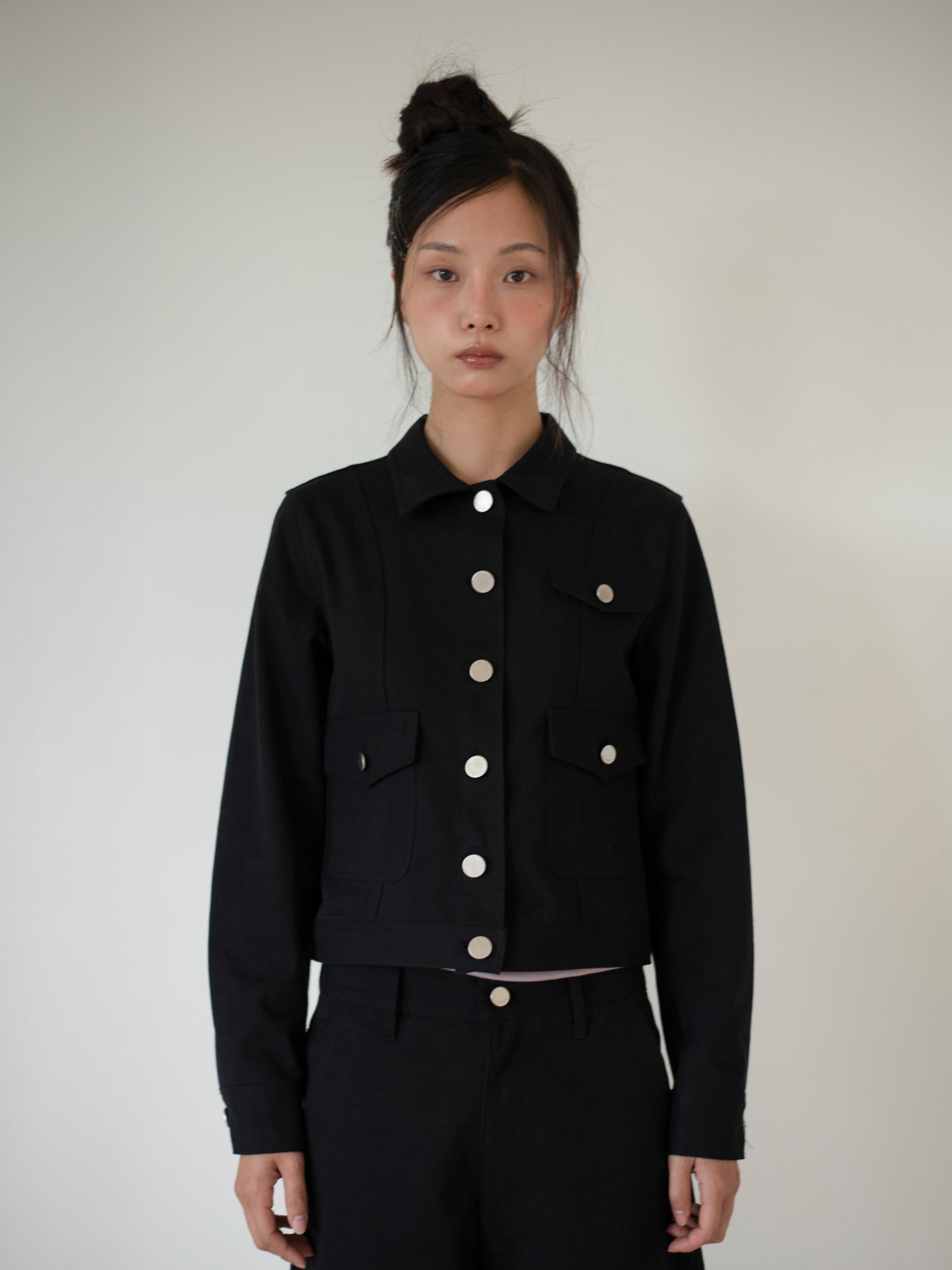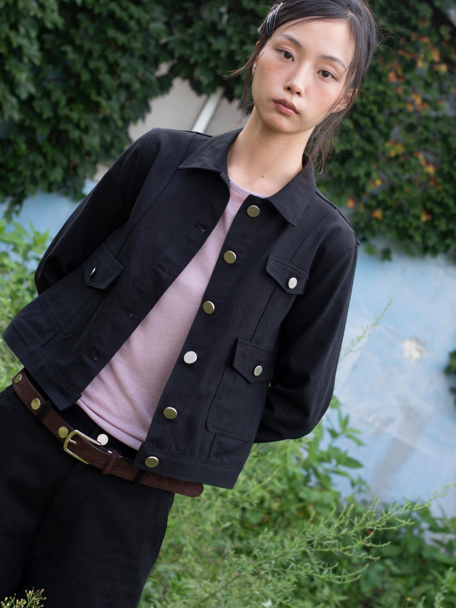 프린세스 절개 라인으로 클래식한 바디 쉐입을 살린 디자인의 자켓입니다. 바이오 워싱 처리된 탄탄하고 부드러운 면 원단을 사용했으며 라운드 포켓과 가슴 플랫 디테일, 로고 각인 니켈 단추가 클래식한 무드를 더합니다. 간절기에 활용하기 좋은 블랙, 브라운 컬러로 출시되어 데일리 아이템으로 추천드립니다.