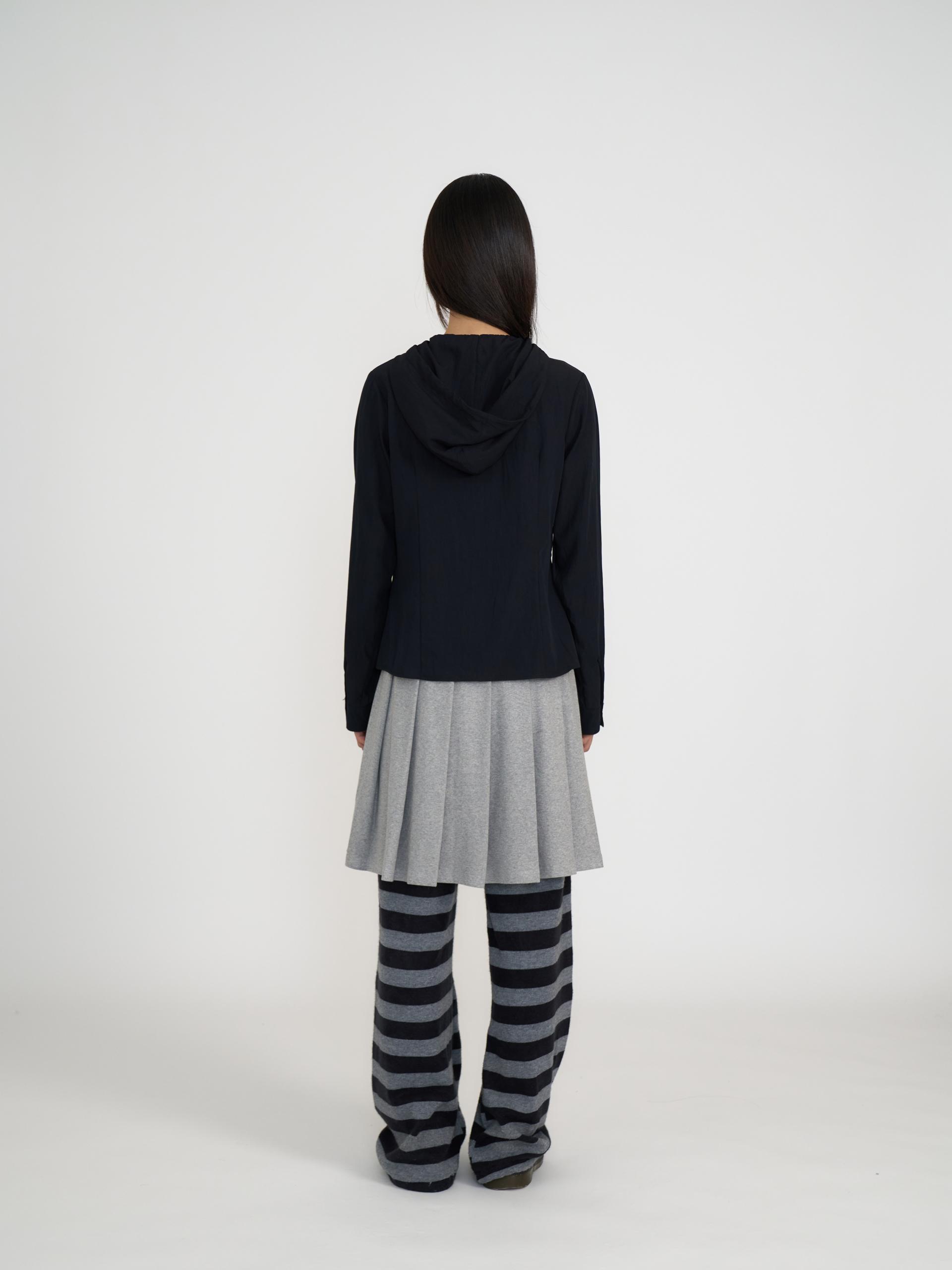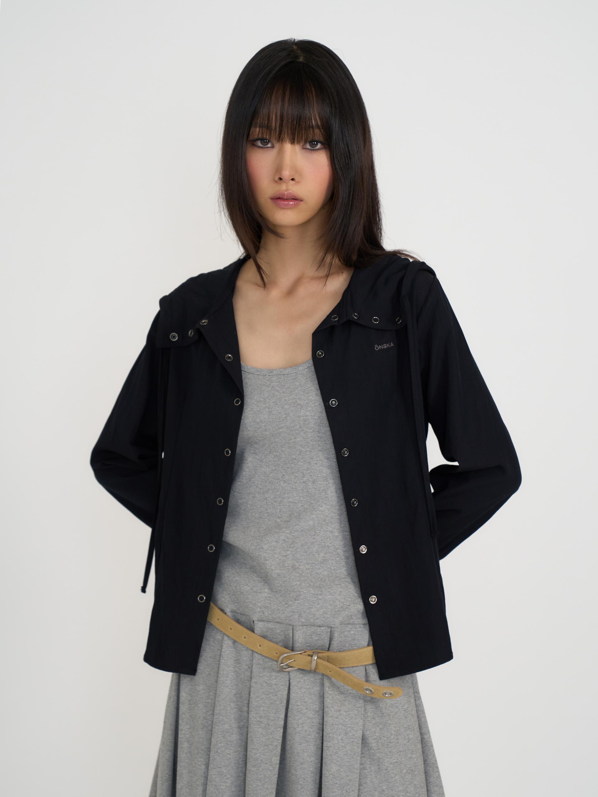 후드까지 이어지는 스냅 단추로 여밈하여 하이넥 실루엣을 연출할 수 있으며, 단추를 풀면 세일러 칼라 형태로 자연스럽게 떨어집니다. 구김이 잘 가지 않는 촉촉한 터치감의 원단을 사용해 관리가 용이하며, 자수 디테일로 포인트를 더했습니다. 라인을 따라 은은하게 잡힌 실루엣이 스포티하면서도 포멀한 분위기를 동시에 만들어주는 아이템입니다.