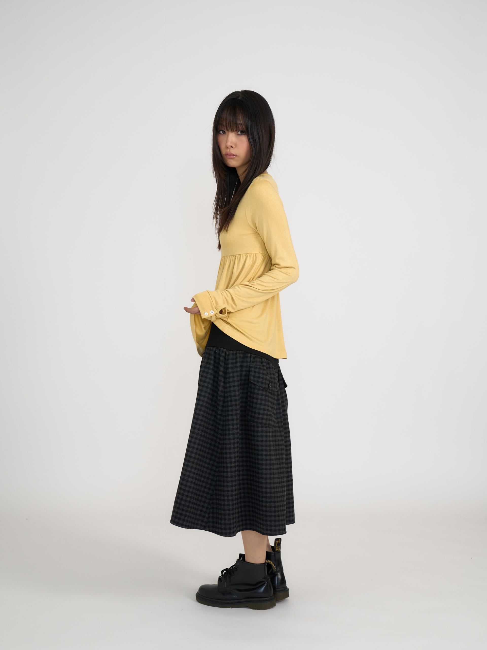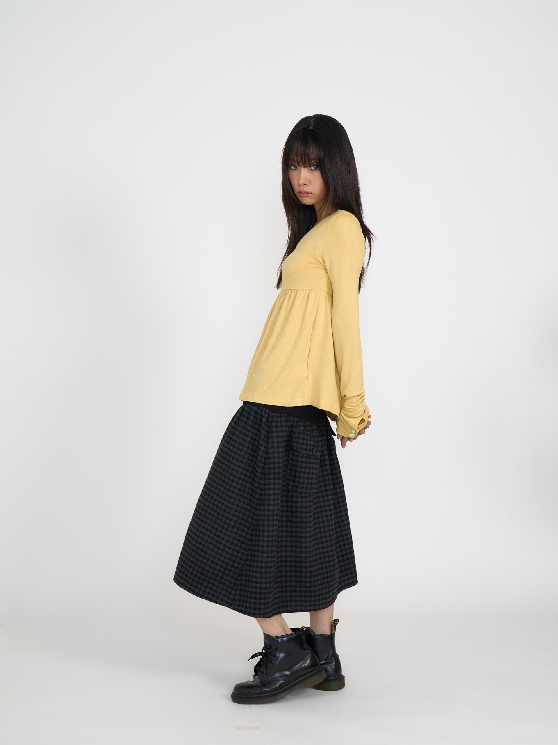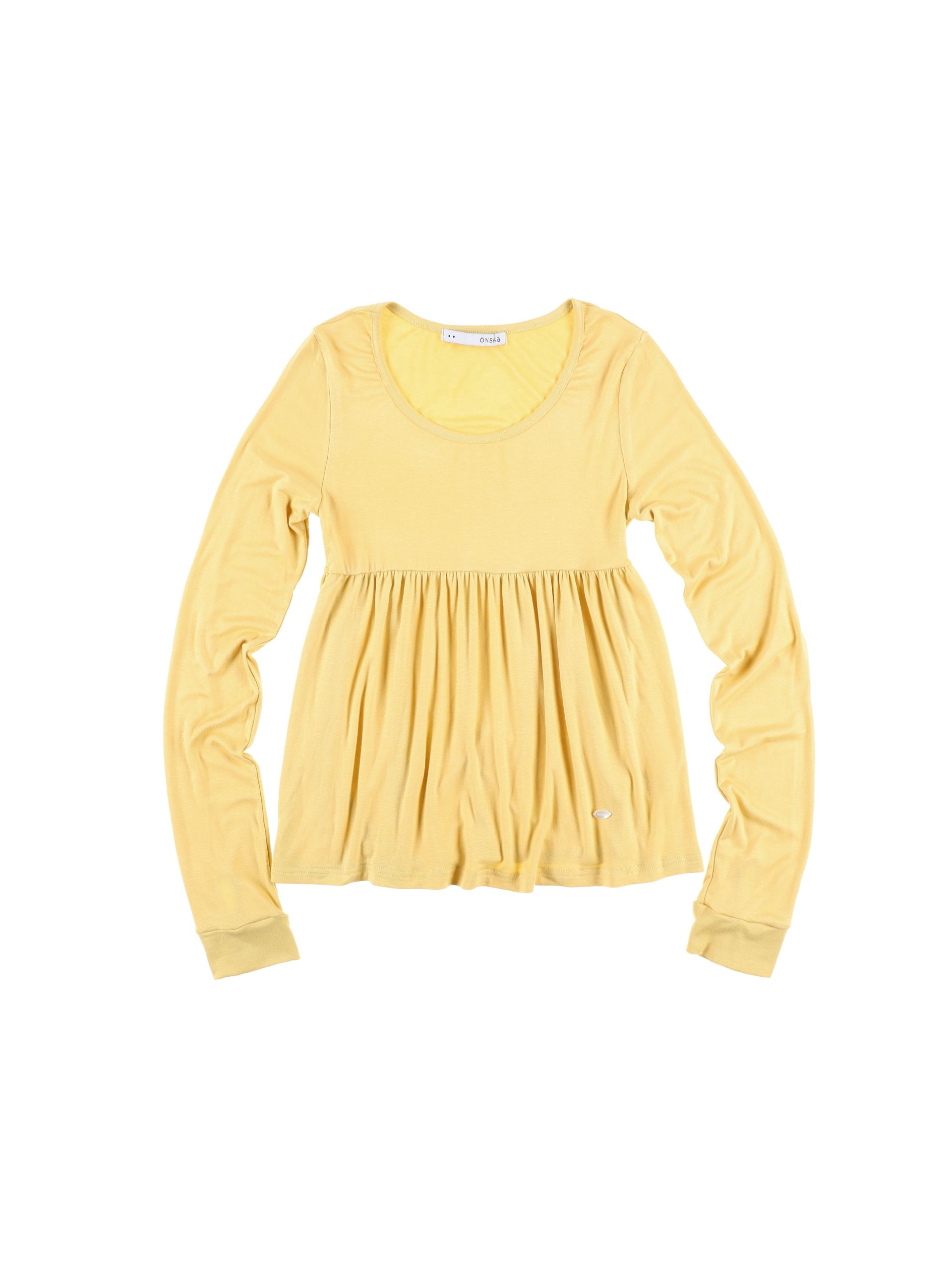 스쿱넥으로 깊게 파인 네크라인과 절개 아래로 퍼지는 플레어 라인이 사랑스러운 무드를 연출합니다. 루즈한 소매 끝에 단추 포인트를 더해 여리한 분위기를 살렸으며, 흐르는 듯한 부드러운 원단이 바디라인을 자연스럽게 감싸줍니다. 온스카의 로고가 각인된 버튼 포인트를 더했습니다. 옐로우·블랙·스트라이프 그레이 세 가지 컬러로 출시되었습니다.
