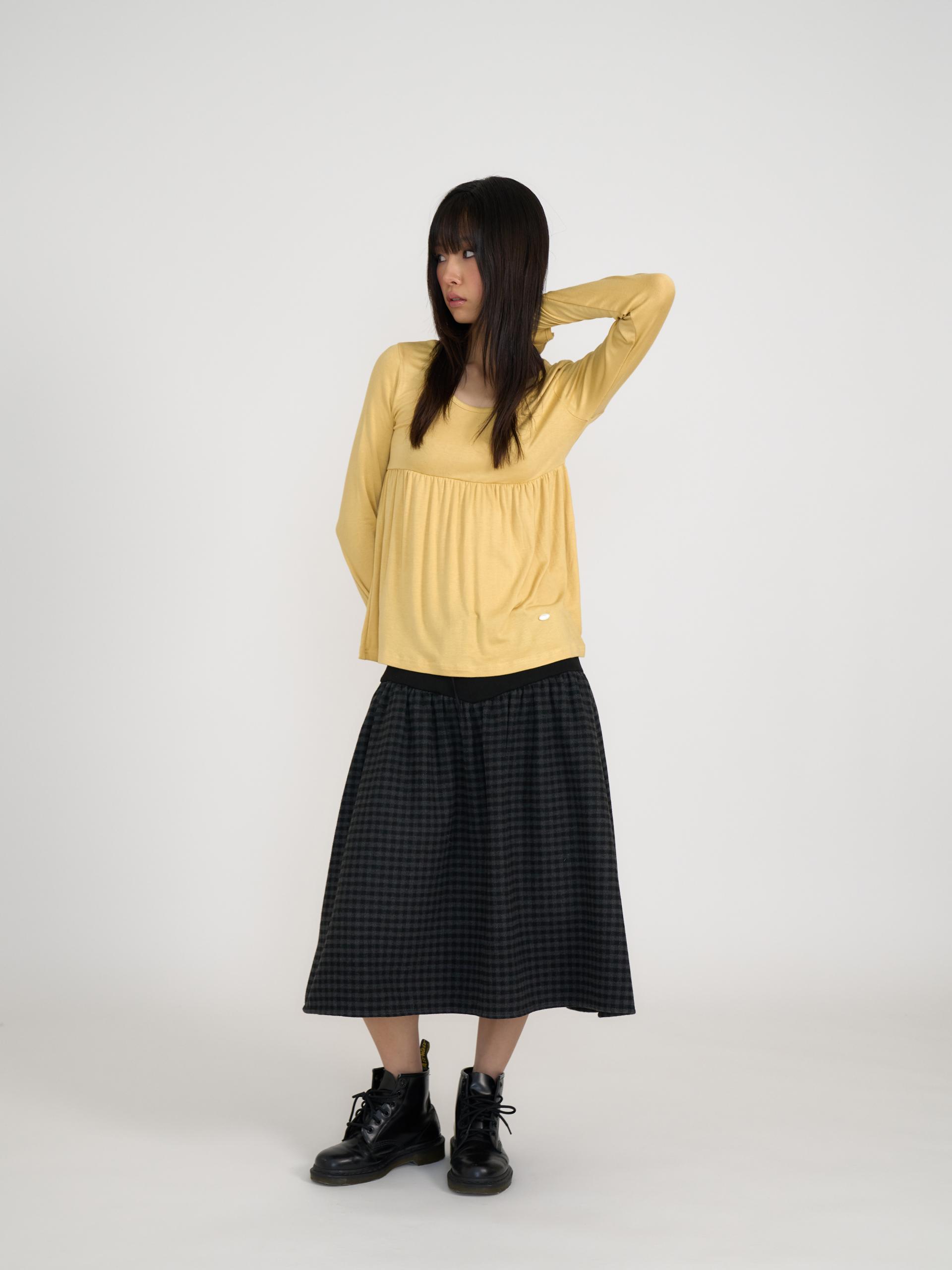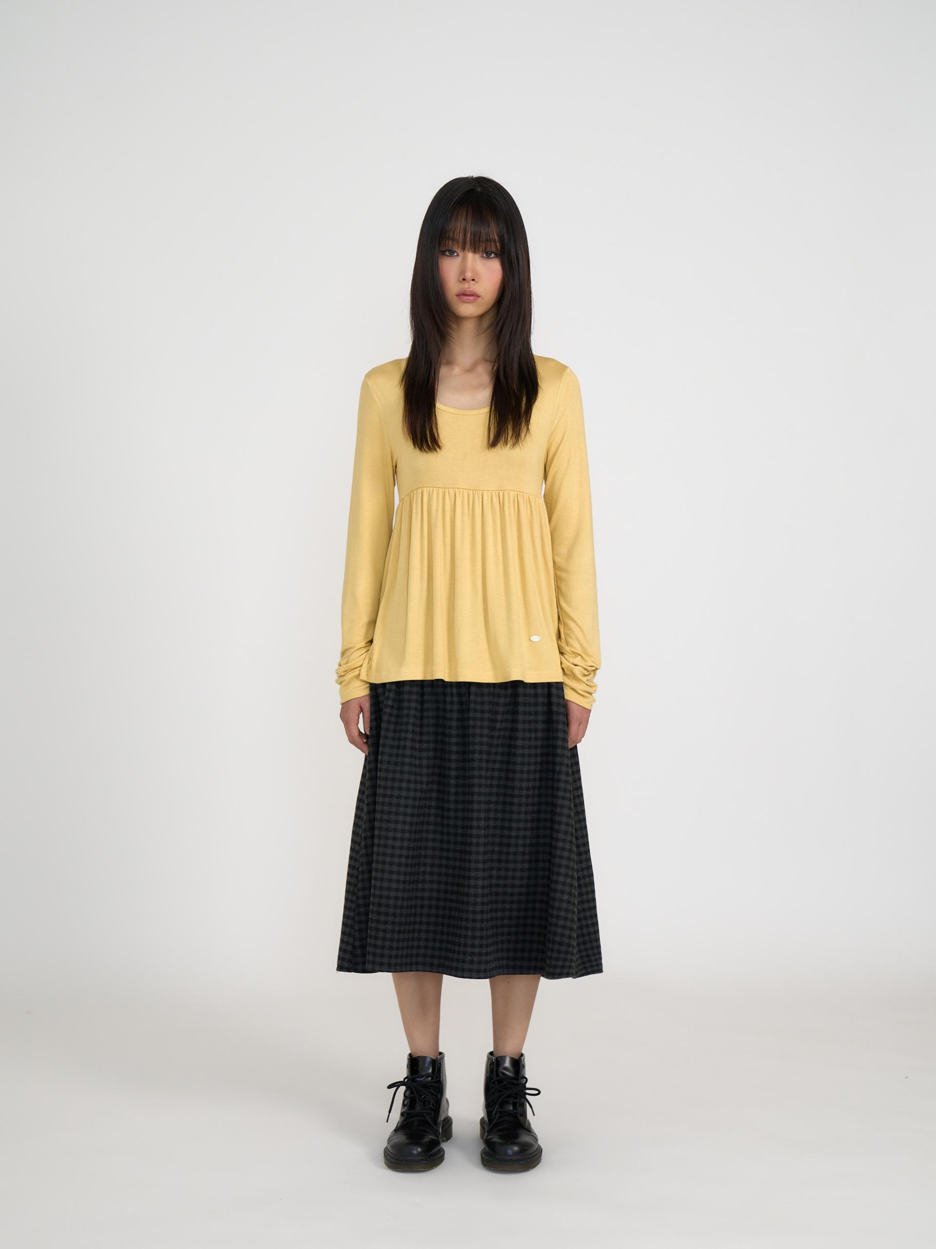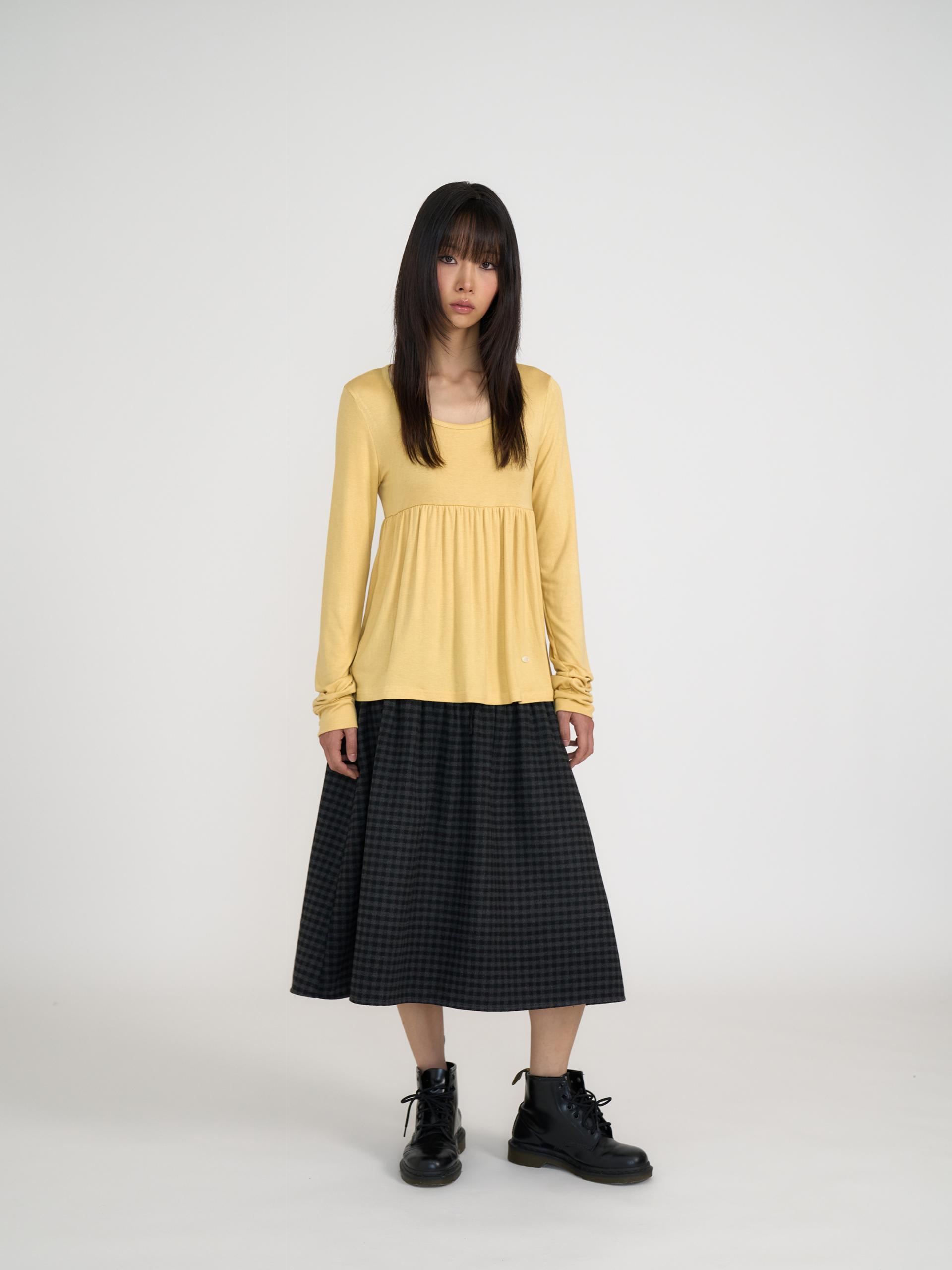 부드러운 원단의 플레어 디자인으로 A라인 실루엣을 살린 SILKY SCOOPNECK T