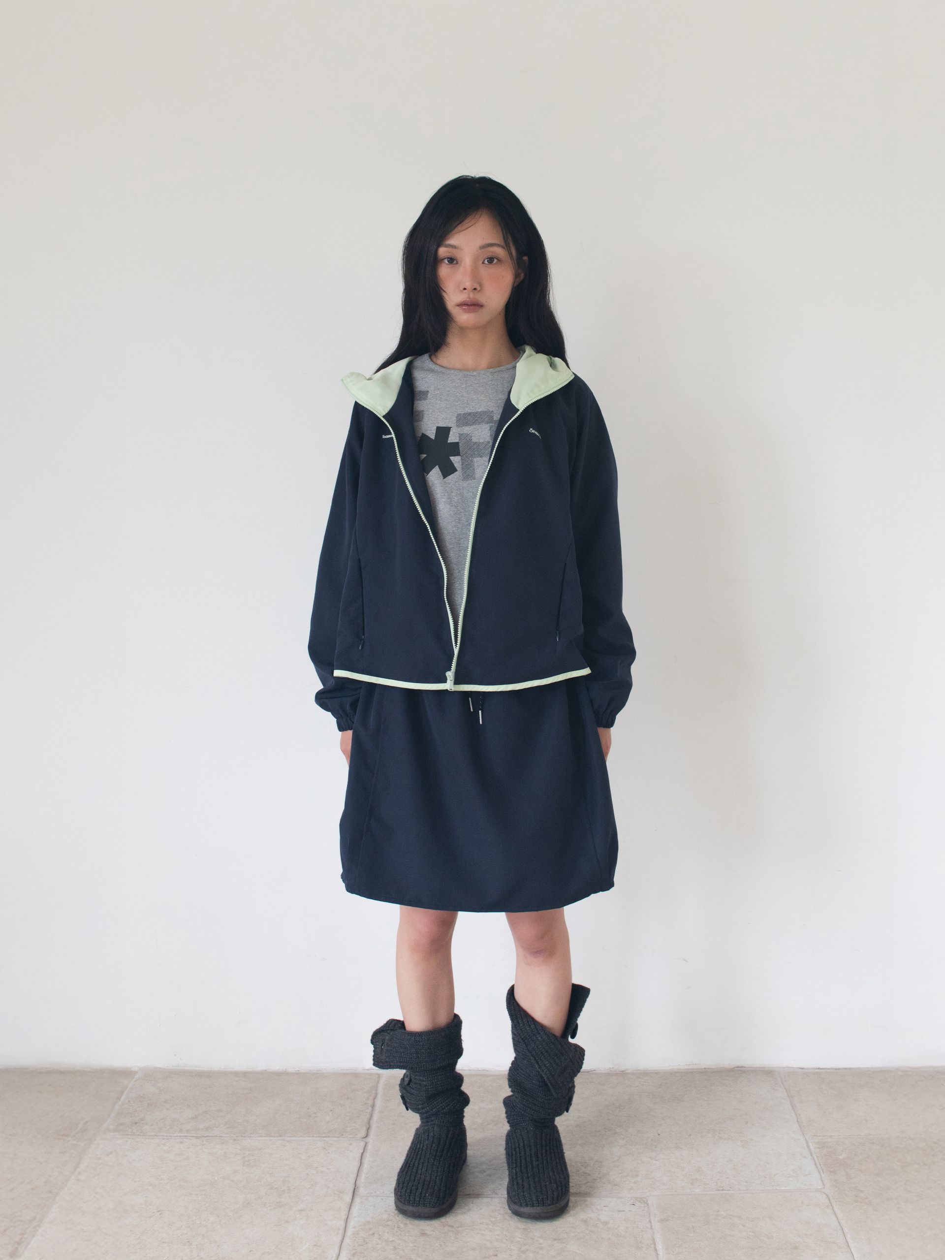 [SET UP] OVERSIZED HOODIE JUMPER & NYLON BALLOON SKIRTON SALE