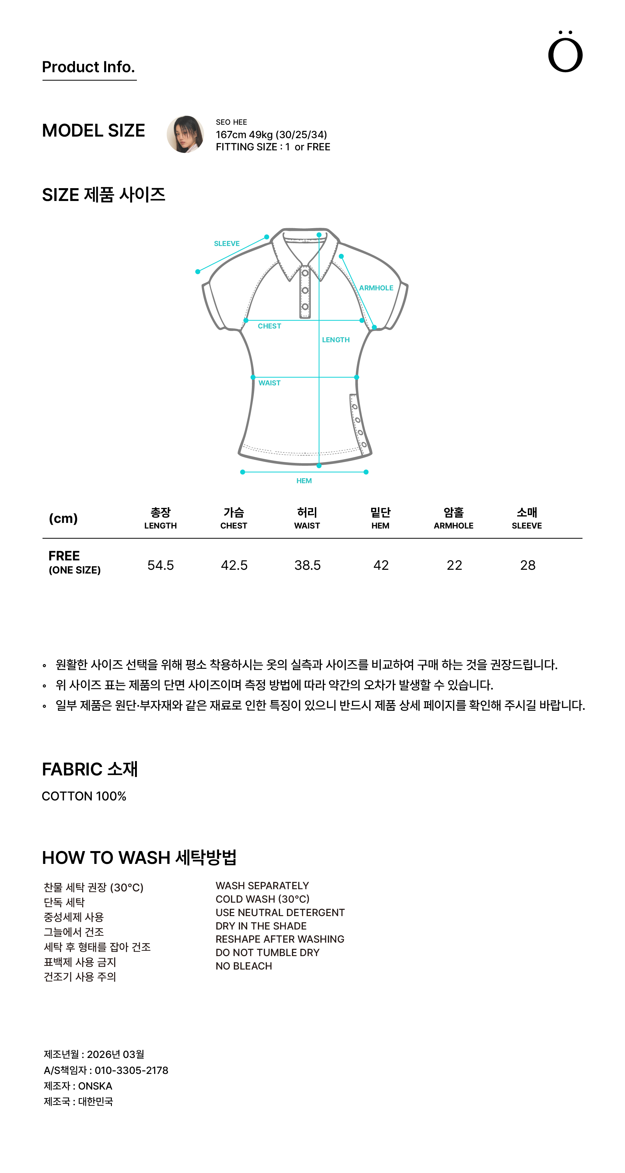 칼라의 여밈과 왼쪽 밑단까지 이어지는 트임 디자인으로 버튼을 잠그는 정도에 따라 여러 무드를 연출할 수 있습니다. 다이마루와 옥스포드 원단을 함께 사용해 탄탄하고 편안한 착용감입니다. 나그랑 소매와 잔잔한 퍼프 디테일이 더해져 스포티하면서도 캐주얼한 분위기를 완성합니다. 온스카의 시그니처 숫자 패치 자수로 완성도를 높인 아이템입니다. 통통 튀는 옐로우&블루, 부드러운 화이트&핑크, 클래식한 무드가 돋보이는 차콜&그레이, 총 3가지 컬러로 출시되었습니다.