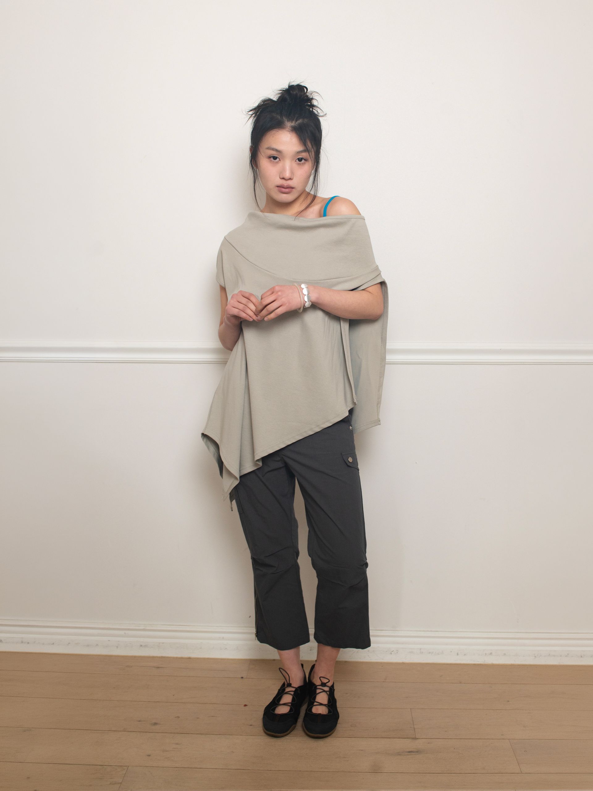 - 비대칭 케이프 스타일의 VEST