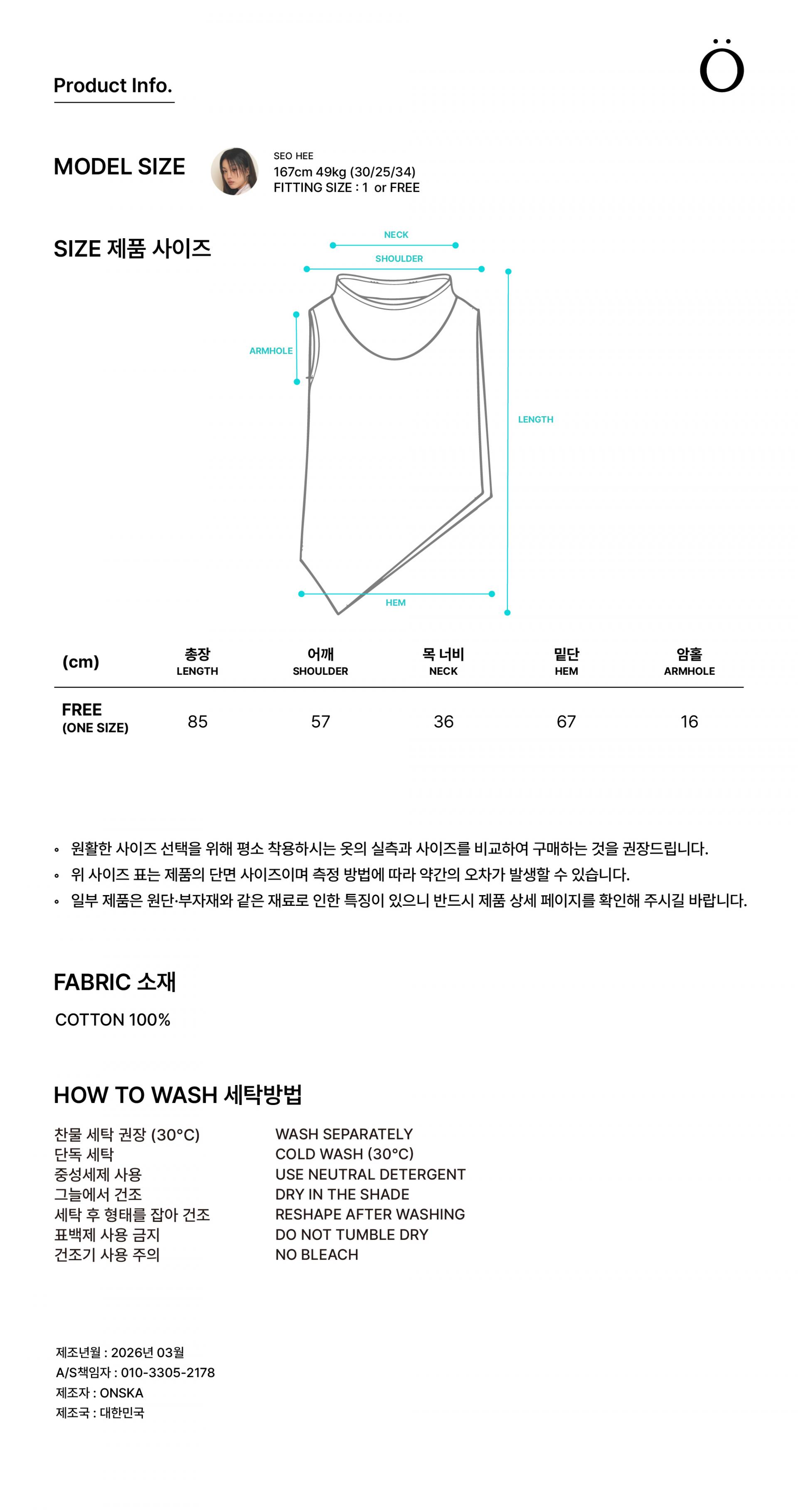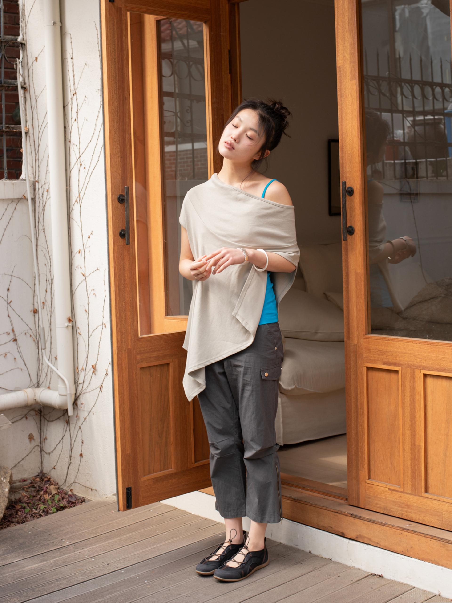 좌우가 다른 비대칭 구조의 케이프형 베스트로 실루엣 자체가 포인트가 되는 아이템입니다. 탄탄한 립 원단으로 제작되어 신축성이 뛰어나며 형태 변형에 대한 부담 없이 착용할 수 있습니다. 네크를 양쪽으로 내려 오프숄더로, 한쪽만 내려 원숄더로 착용 가능하며 자연스럽게 기본 베스트로 착용하거나 하의로 내려 언발란스한 스커트처럼 연출할 수 있는 멀티 웨어 아이템입니다. 스커트로 착용하실 때에는 옆 트임이 있기 때문에 레깅스, 스타킹, 팬츠 등 하의롤 함께 착용하여 다양하게 연출하는 것을 추천드립니다.