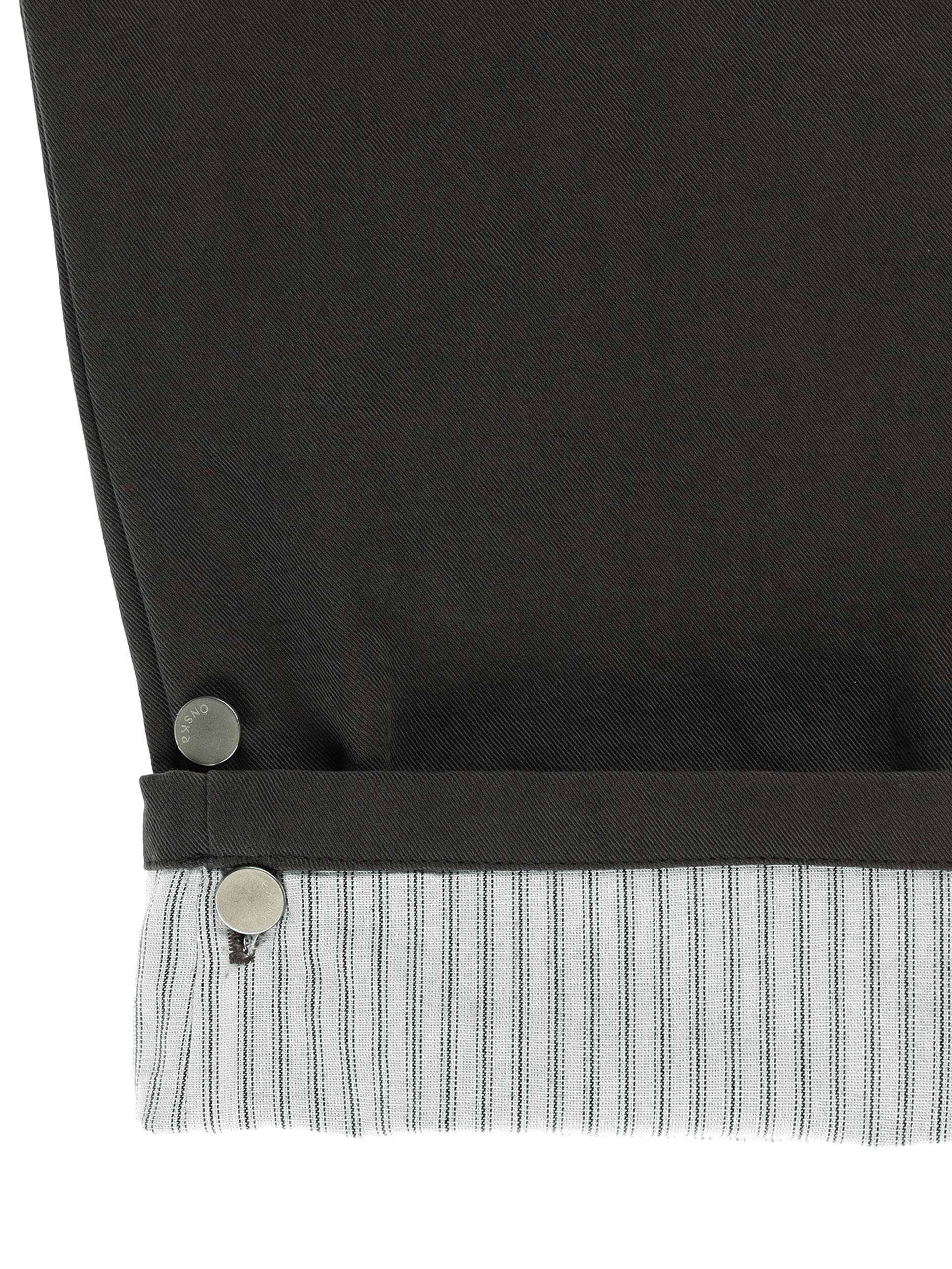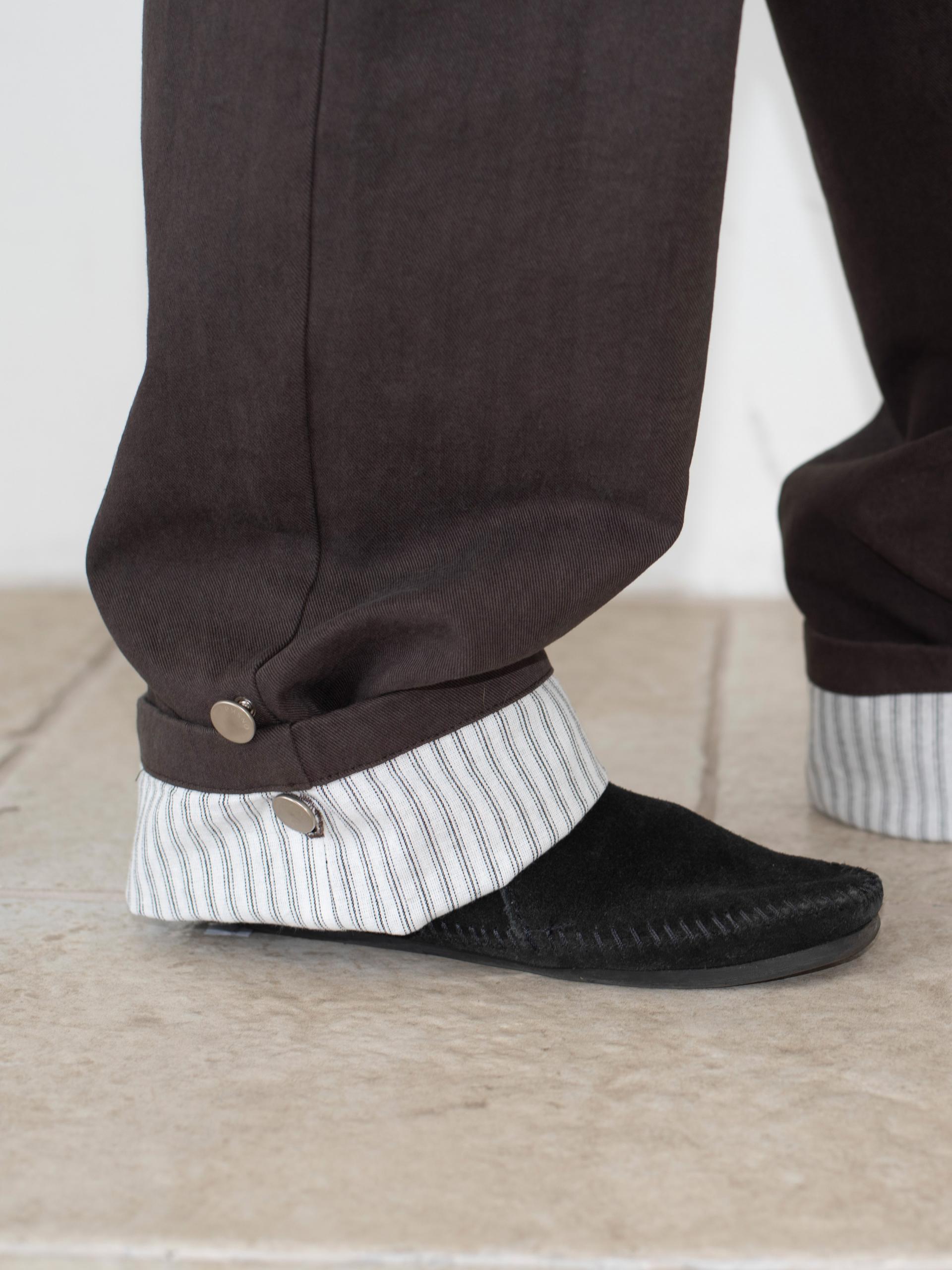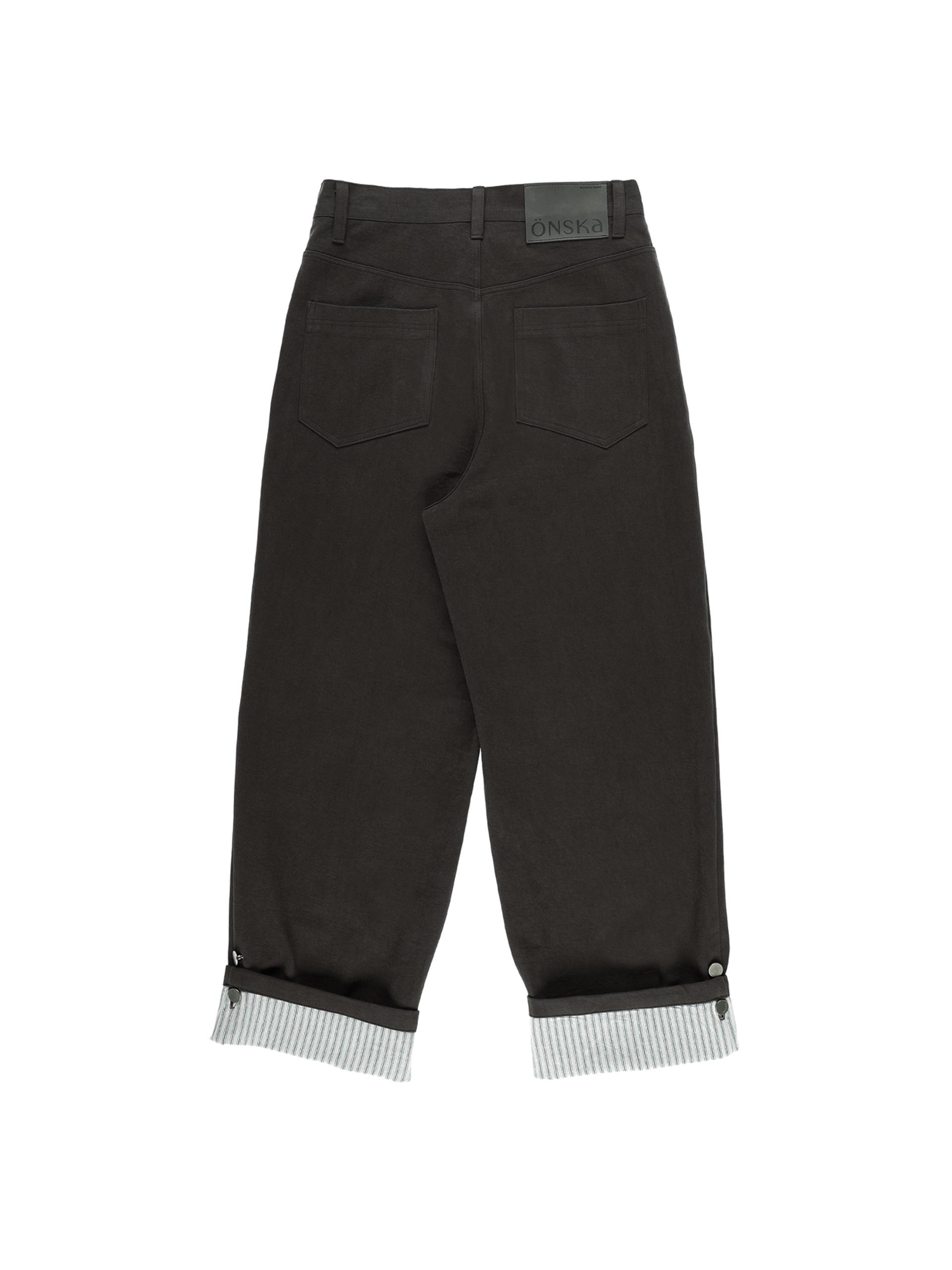 와이드 핏과 로우 웨이스트의 배색이 포인트인 WIDE CUFFS COTTON PANTS