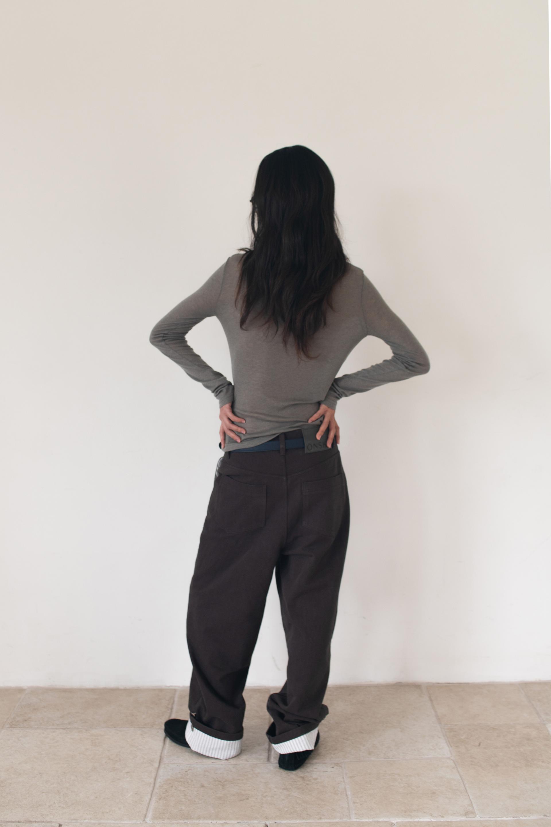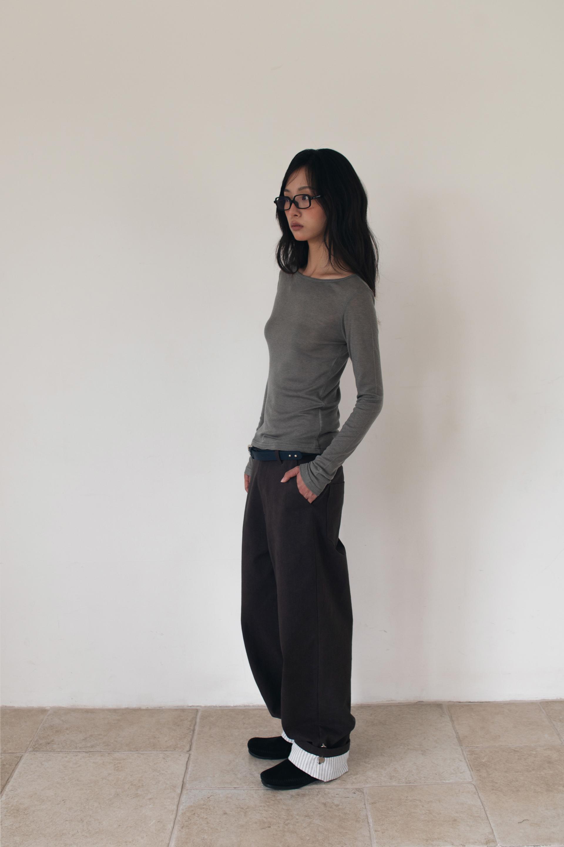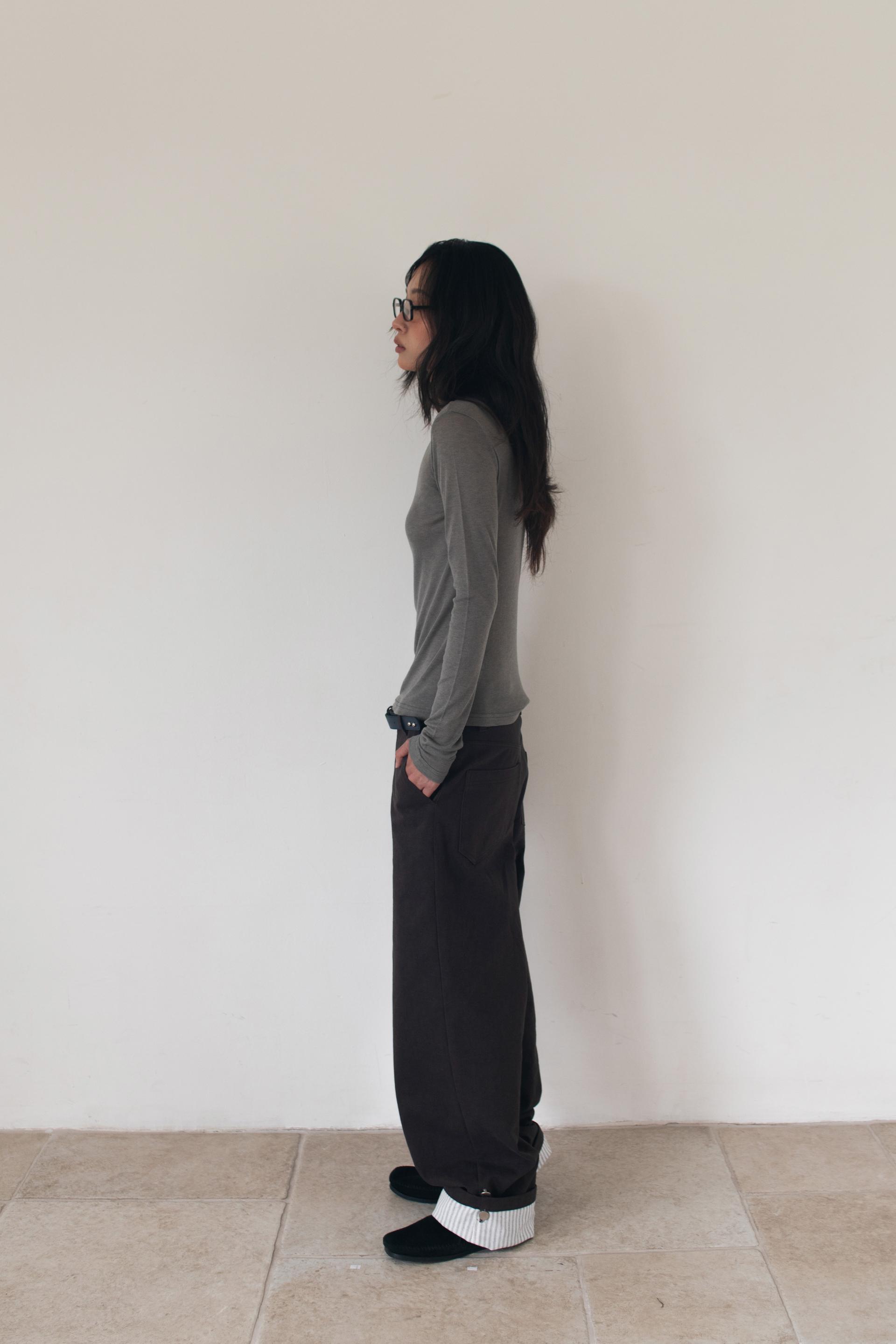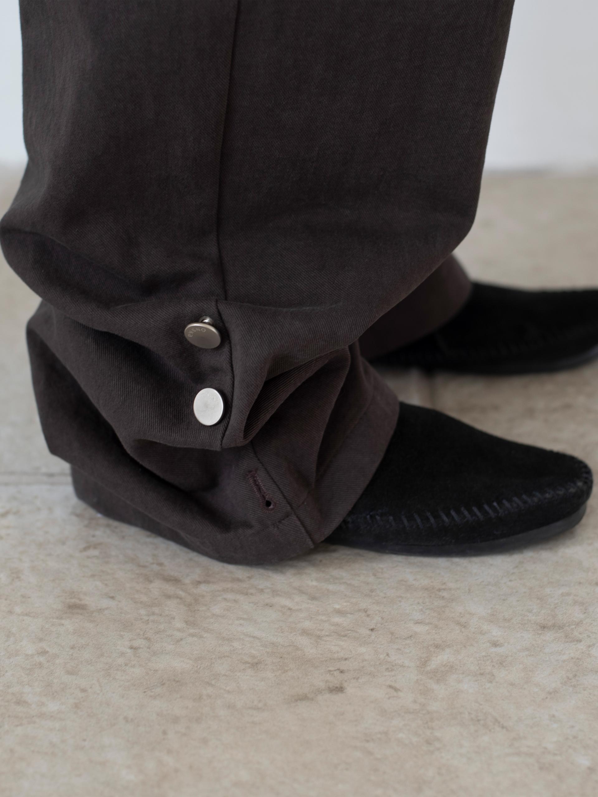 와이드 핏과 로우 웨이스트의 배색이 포인트인 WIDE CUFFS COTTON PANTS