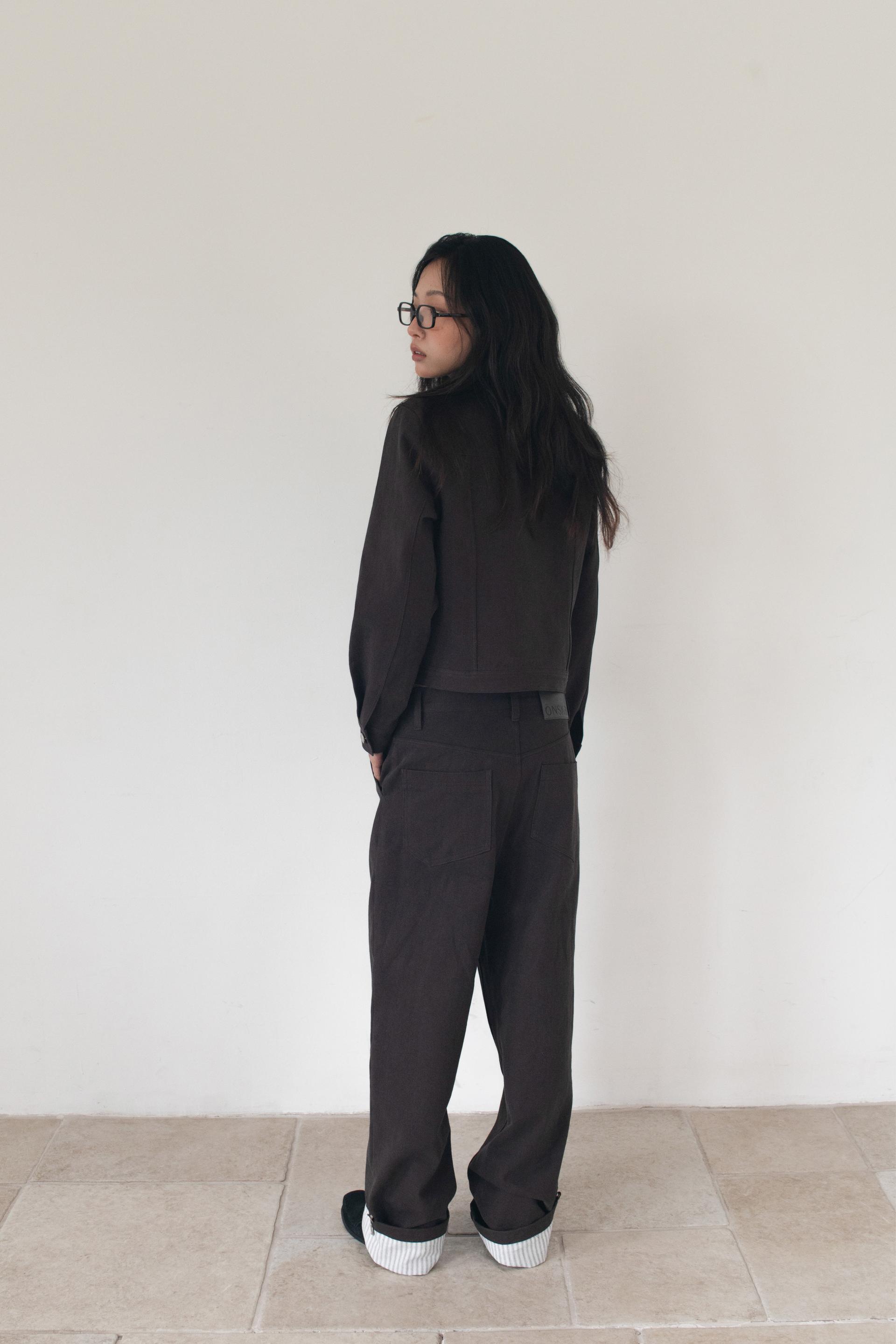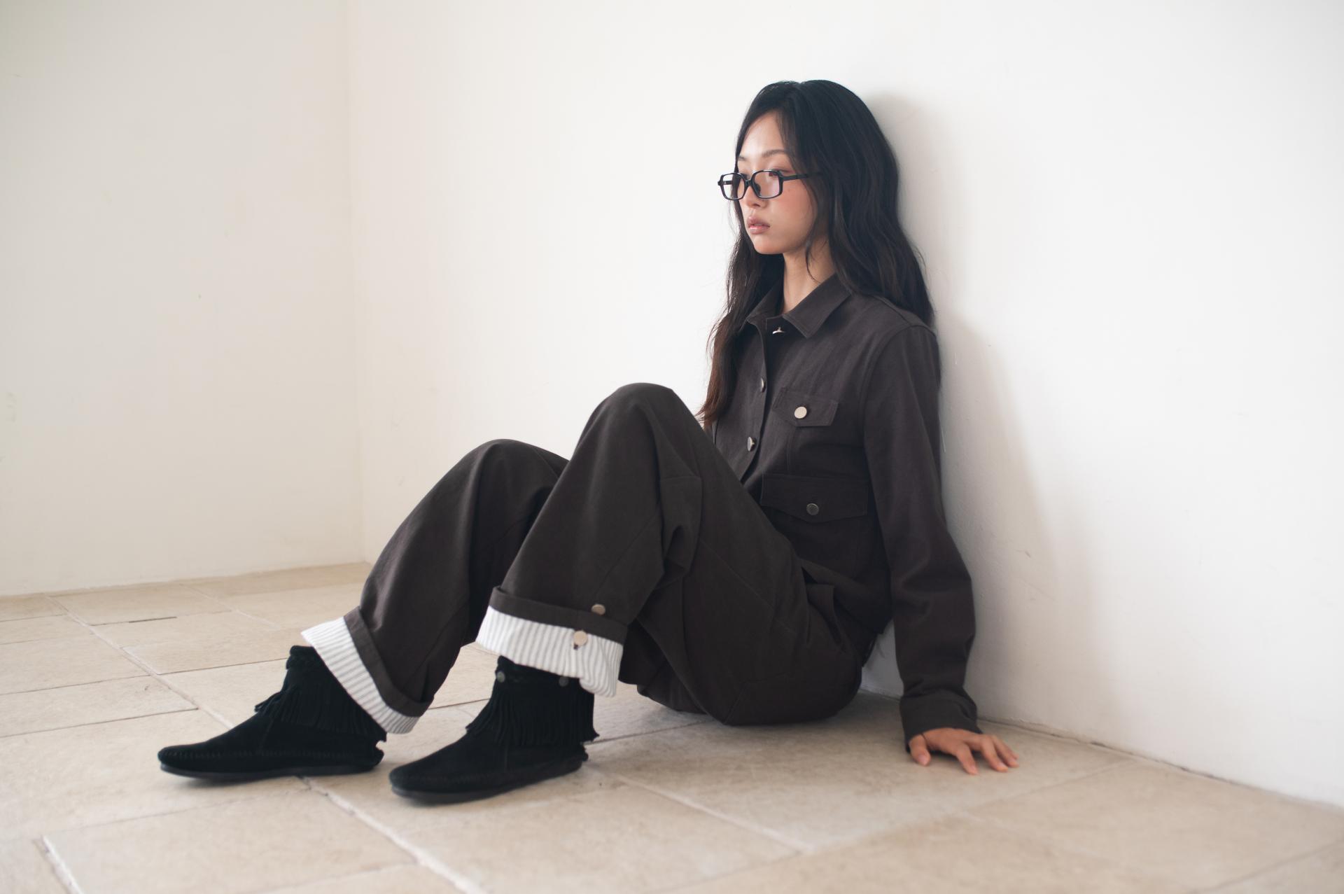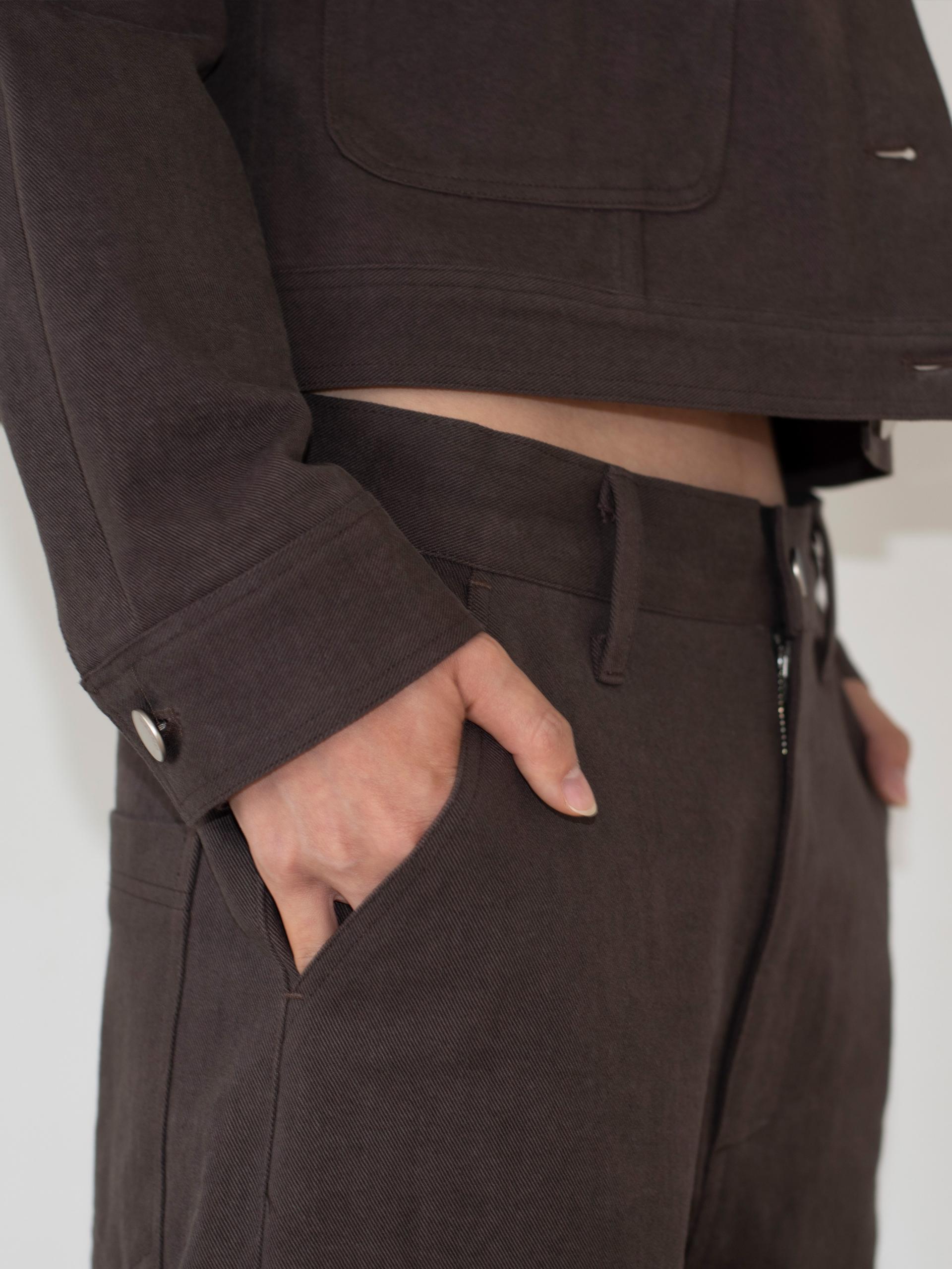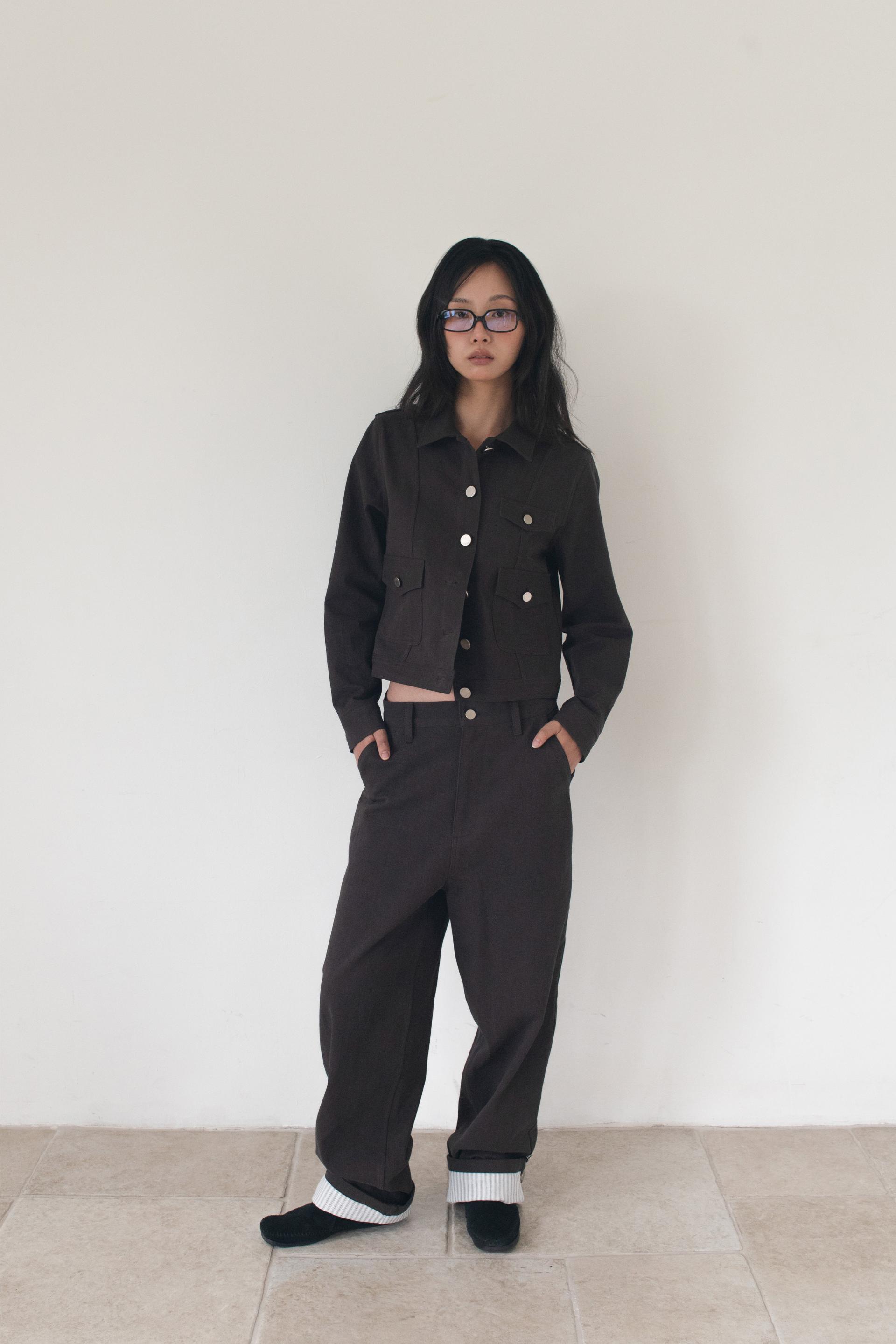 골반에 걸쳐 입는 로우 웨이스트 와이드 실루엣으로 편안한 핏으로 제작되었습니다. 바이오 워싱 처리된 코튼 원단을 사용해 탄탄하면서도 편안한 착용감을 주며 밑단 배색 커프스 안쪽에 컬러마다 다른 체크 원단을 더해 롤업 해서 입으면 또 다른 분위기를 주는 디자인입니다. 옆선 니켈 단추 디테일이 포인트가 되어 완성도를 높였으며 레드·블루·브라운·블랙 4컬러로 출시되었습니다. 클래식 코튼 자켓(CLASSIC COTTON JACKET) 과 셋업으로 연출할 수 있는 아이템입니다.
