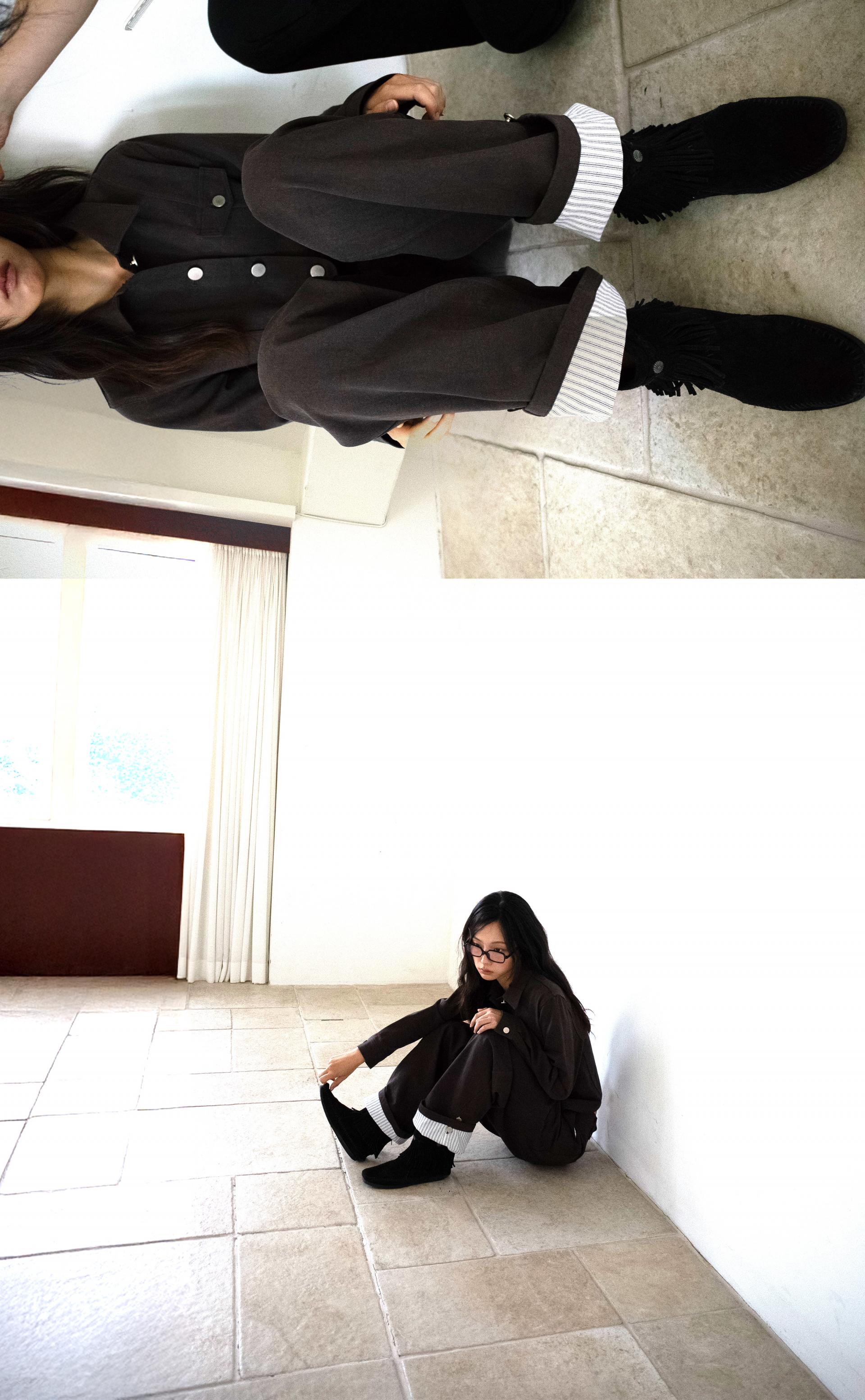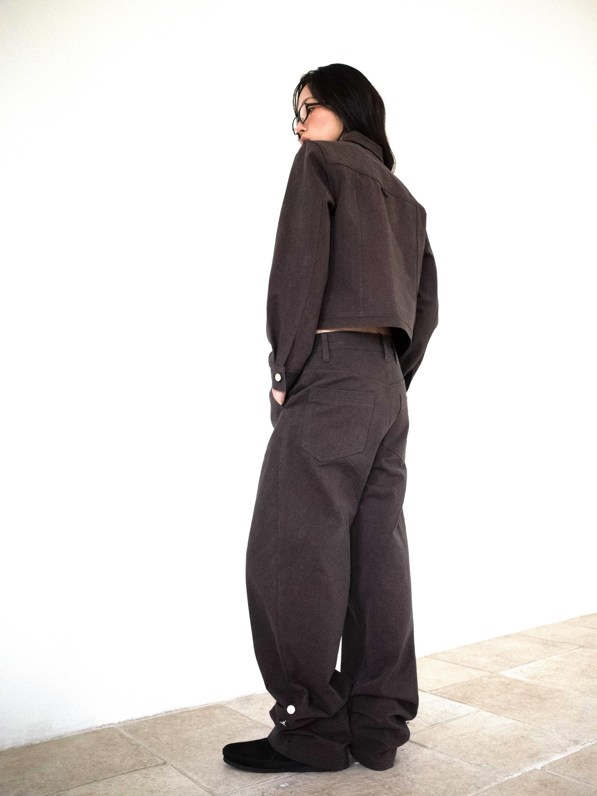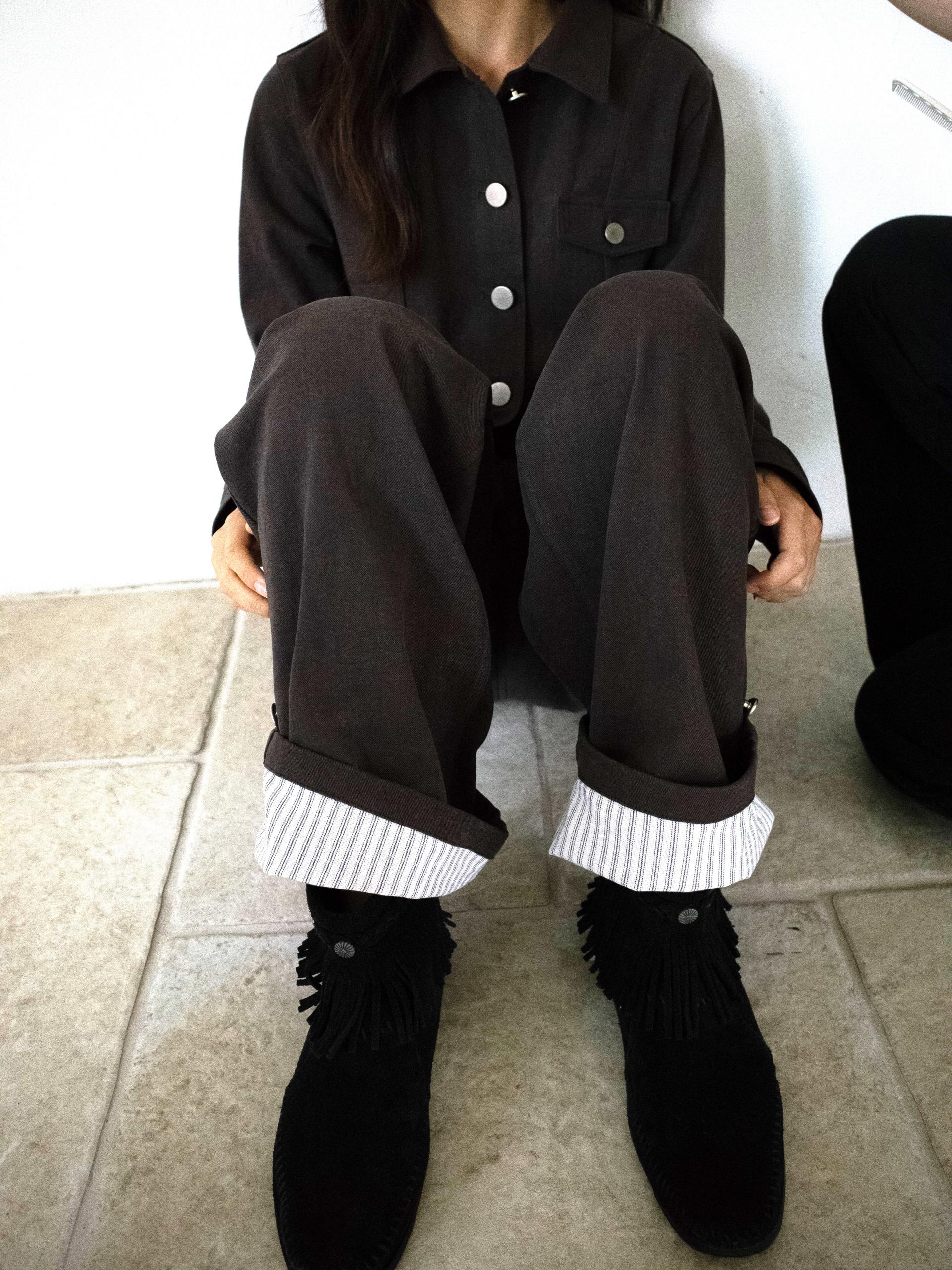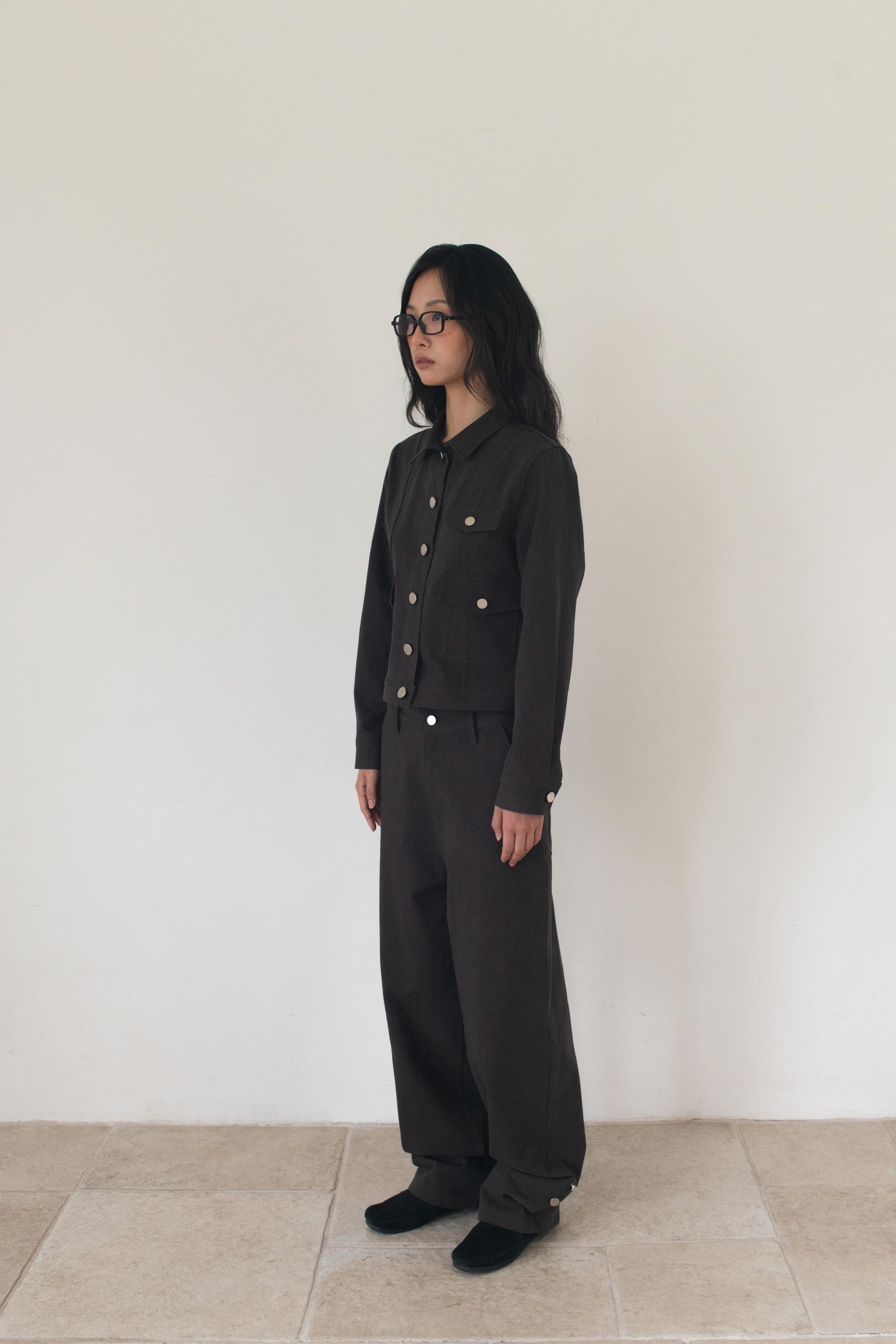 골반에 걸쳐 입는 로우 웨이스트 와이드 실루엣으로 편안한 핏으로 제작되었습니다. 바이오 워싱 처리된 코튼 원단을 사용해 탄탄하면서도 편안한 착용감을 주며 밑단 배색 커프스 안쪽에 컬러마다 다른 체크 원단을 더해 롤업 해서 입으면 또 다른 분위기를 주는 디자인입니다. 옆선 니켈 단추 디테일이 포인트가 되어 완성도를 높였으며 레드·블루·브라운·블랙 4컬러로 출시되었습니다. 클래식 코튼 자켓(CLASSIC COTTON JACKET) 과 셋업으로 연출할 수 있는 아이템입니다.